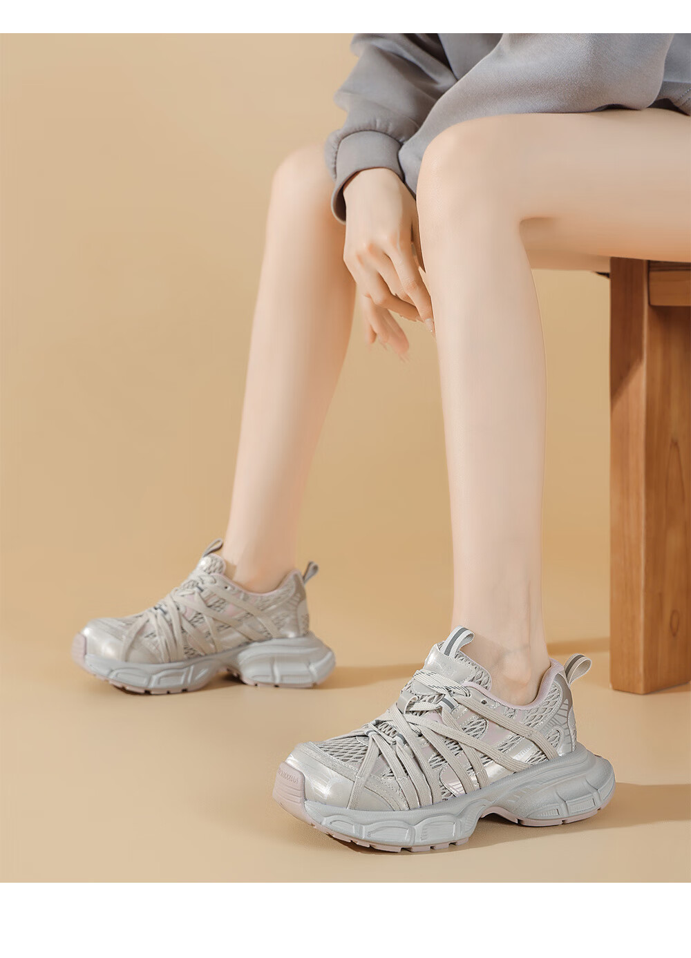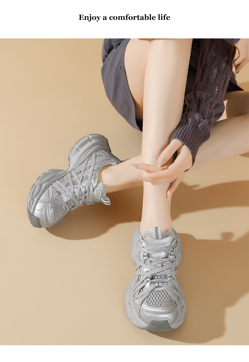 星期六(St&Sat)厚底舒适通勤鞋运动鞋跑步鞋老爹鞋女鞋SSD1112PBU 银灰色 37