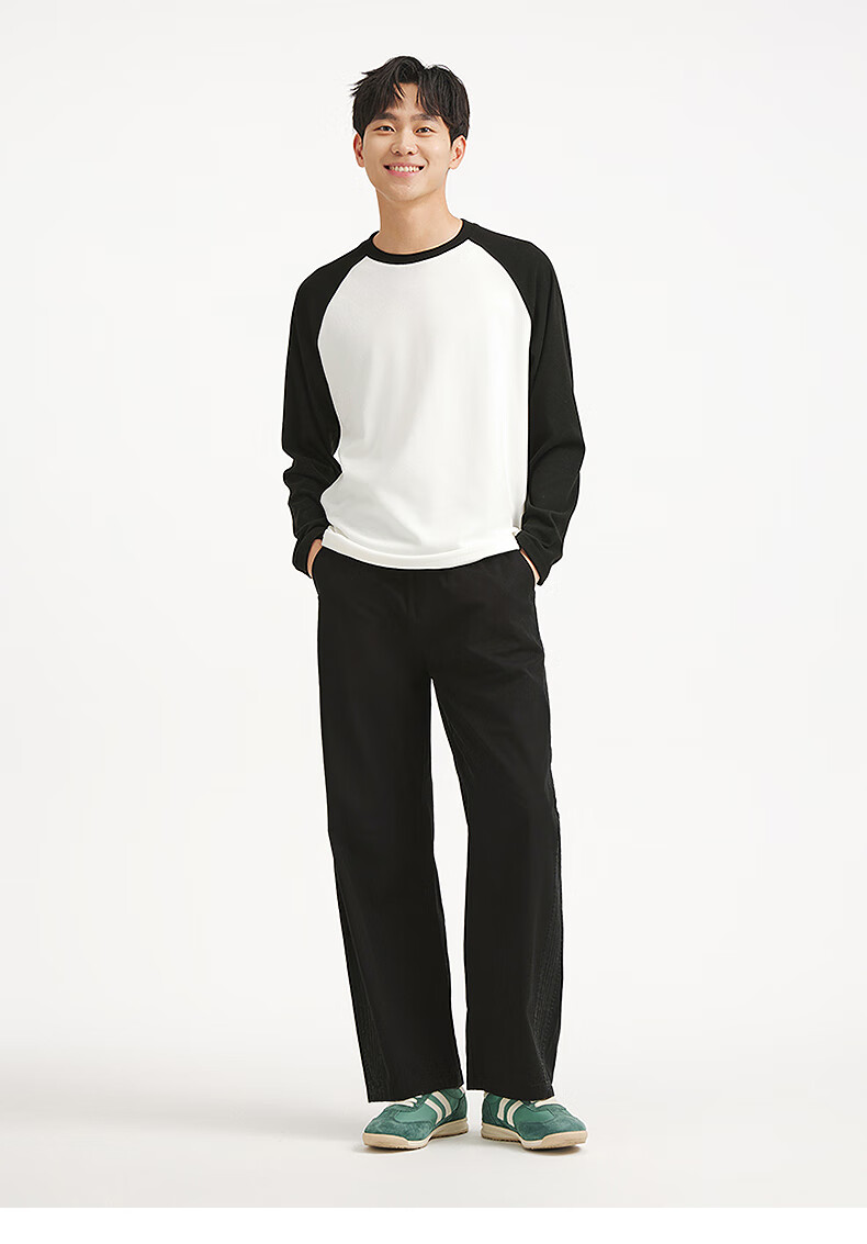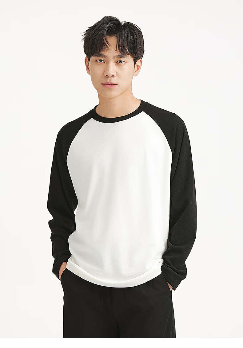 热风2025年冬季新款男士拼接长T 19黑白 S