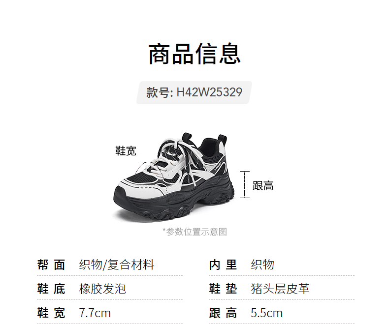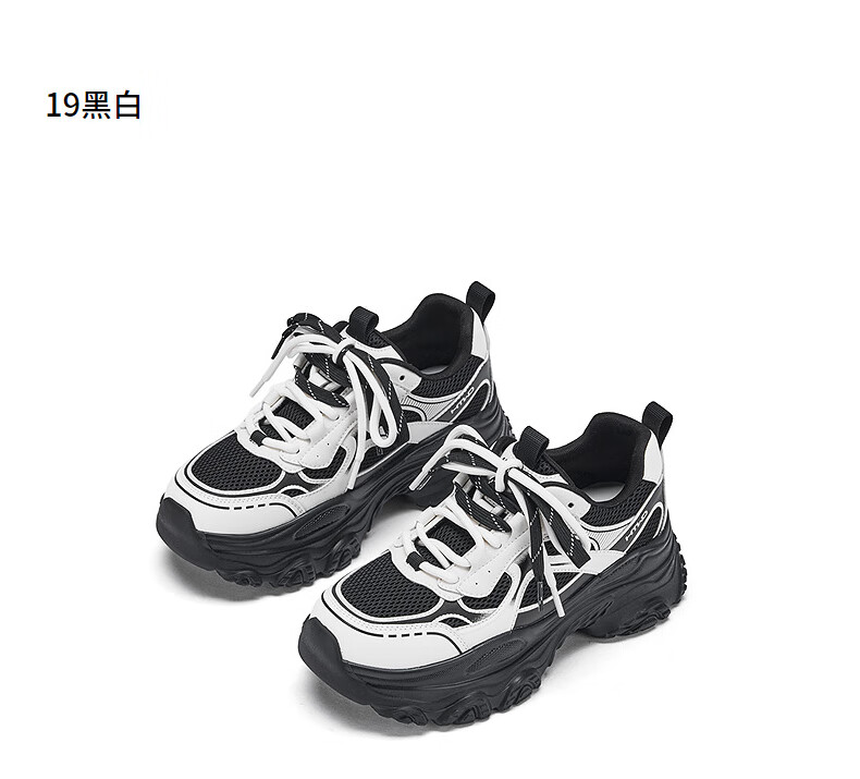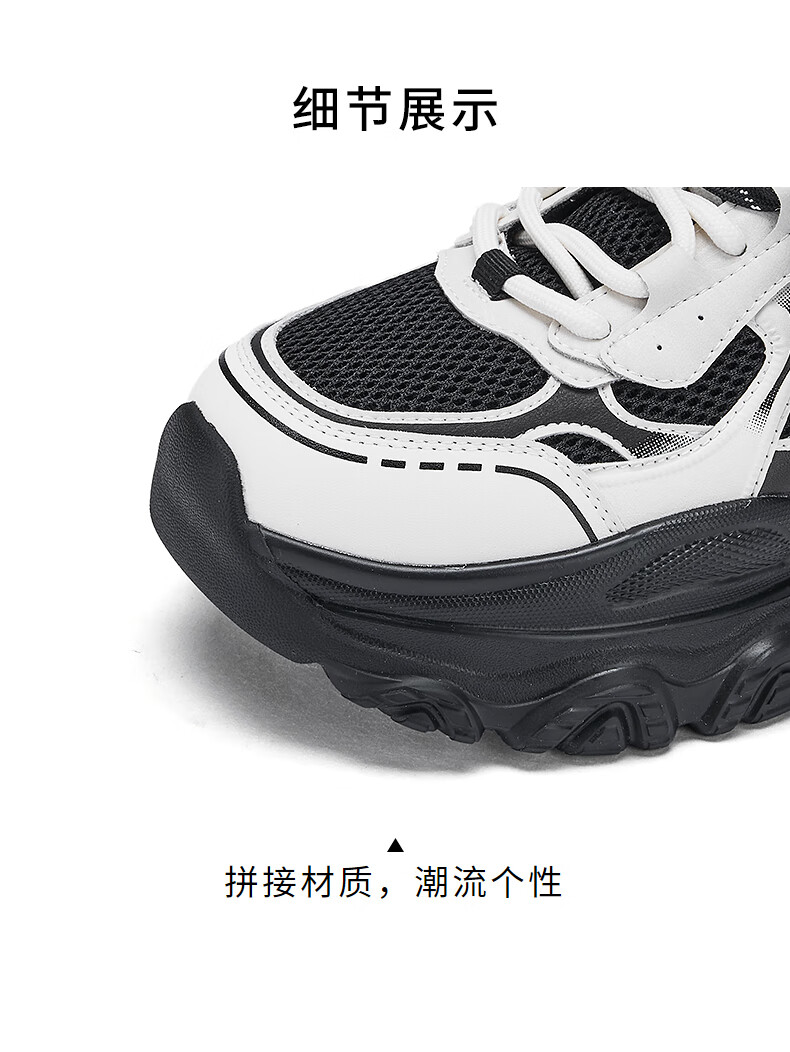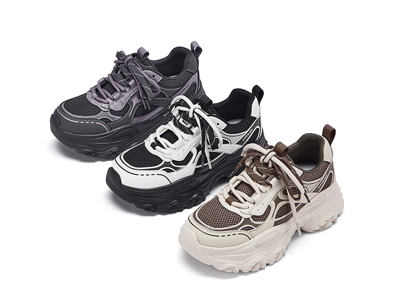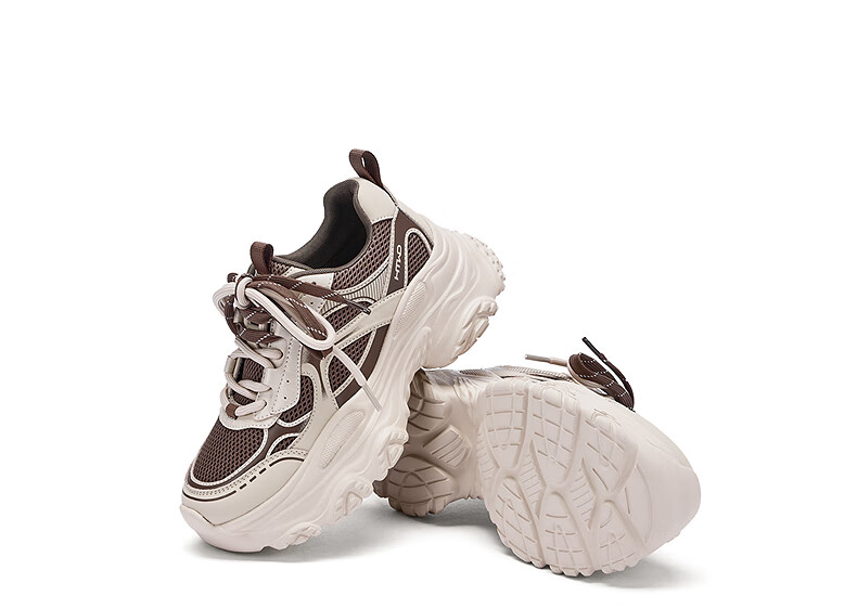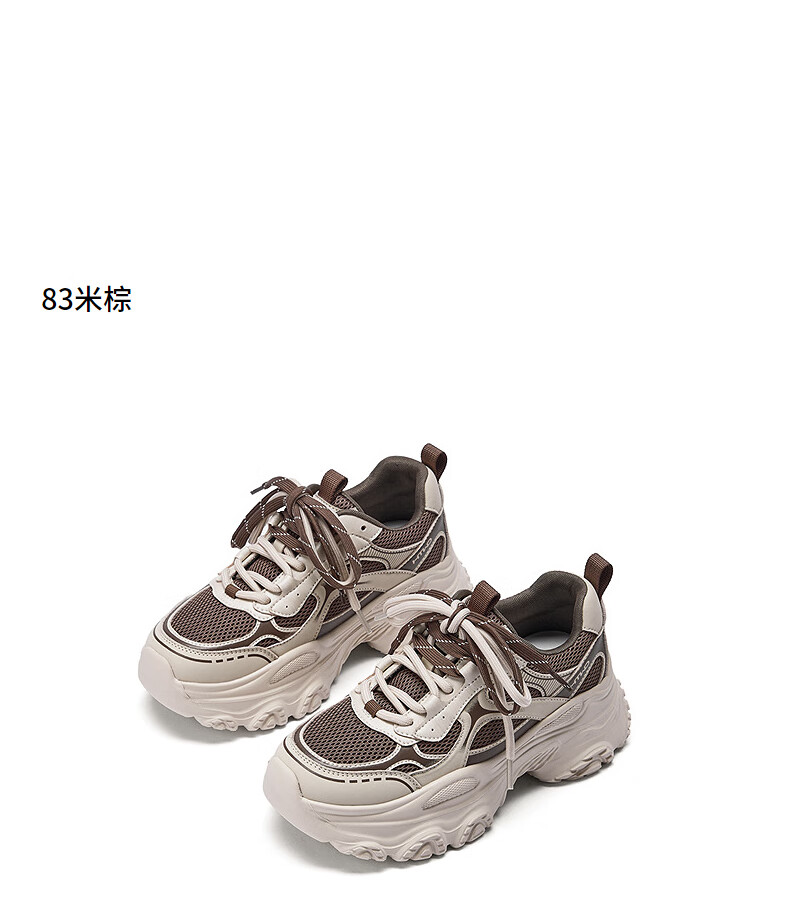 热风【商场同款】女鞋厚底老爹鞋2025年秋季新款女士复古增高网面鞋女 83米棕 37