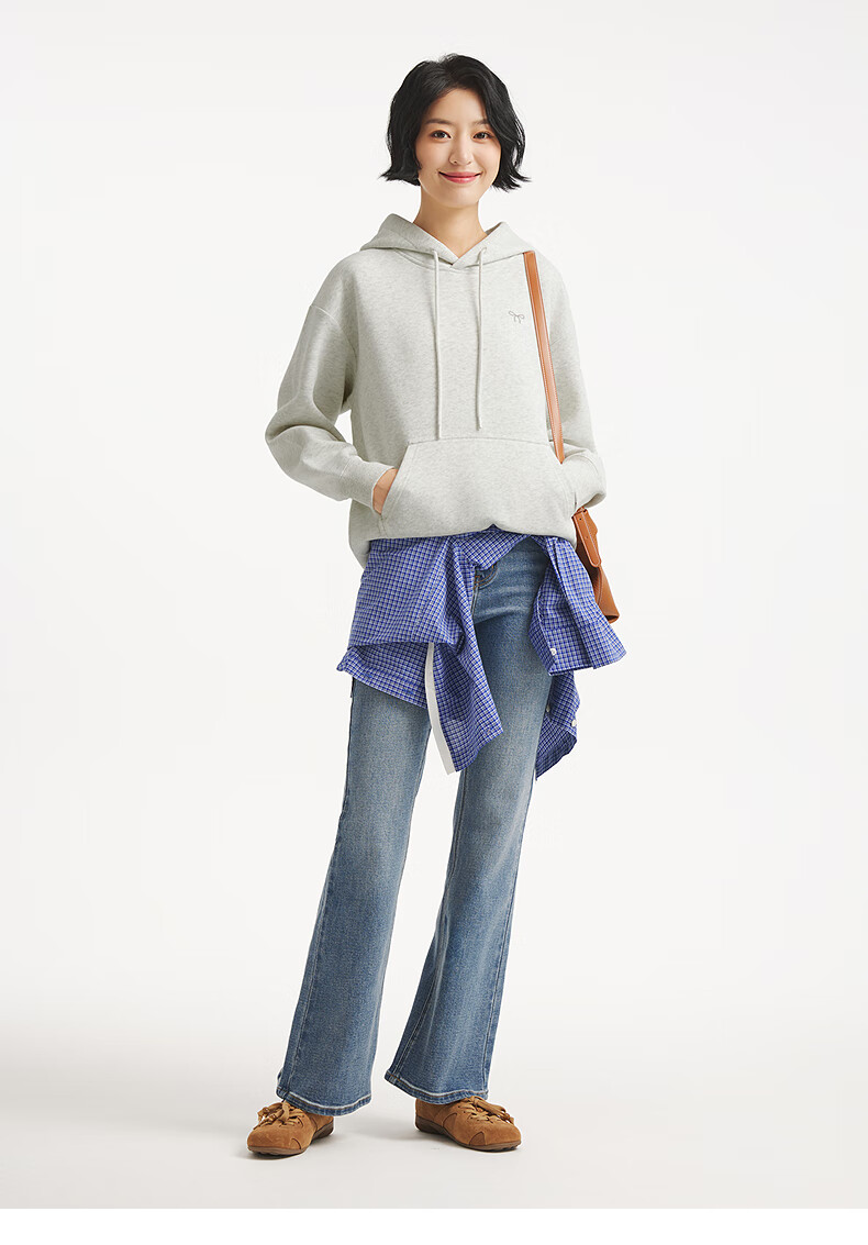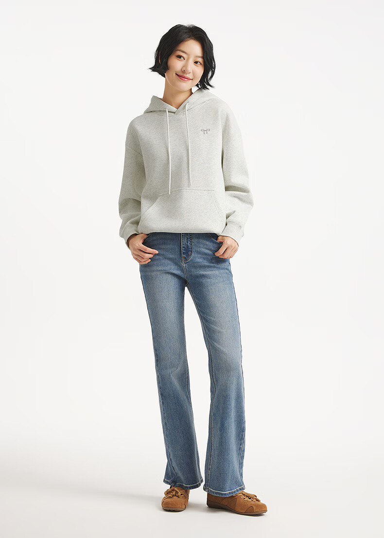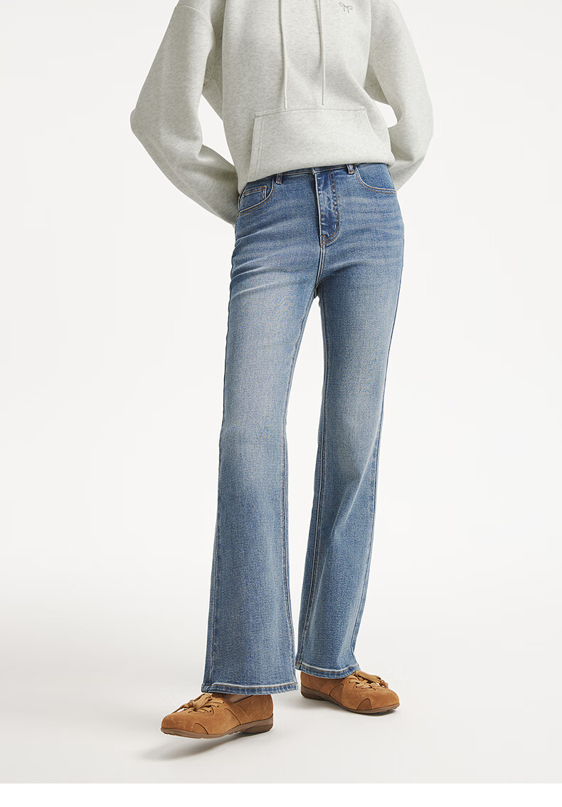 热风2025年秋季新款女士喇叭牛仔裤 01黑色 25