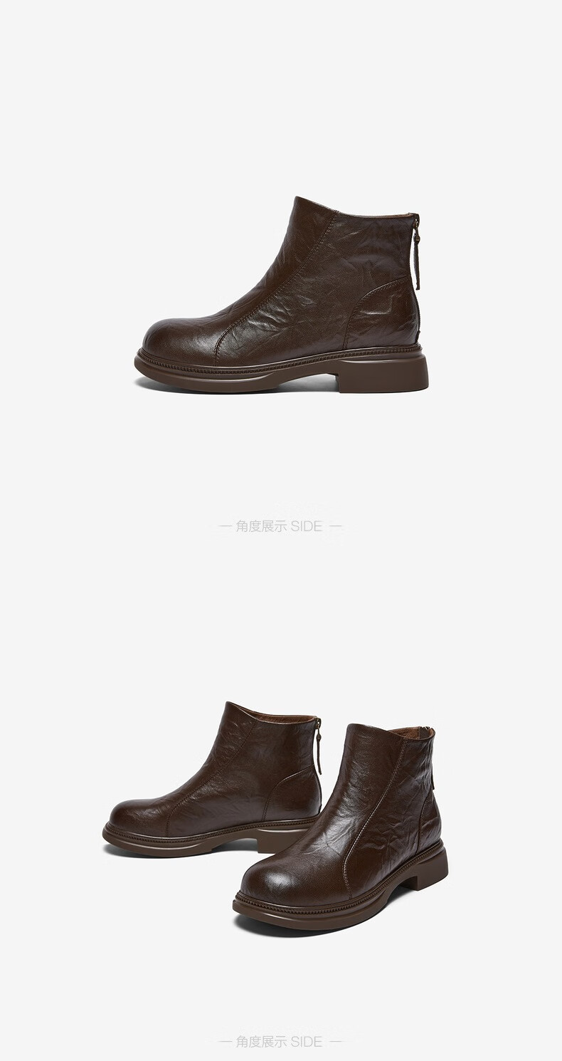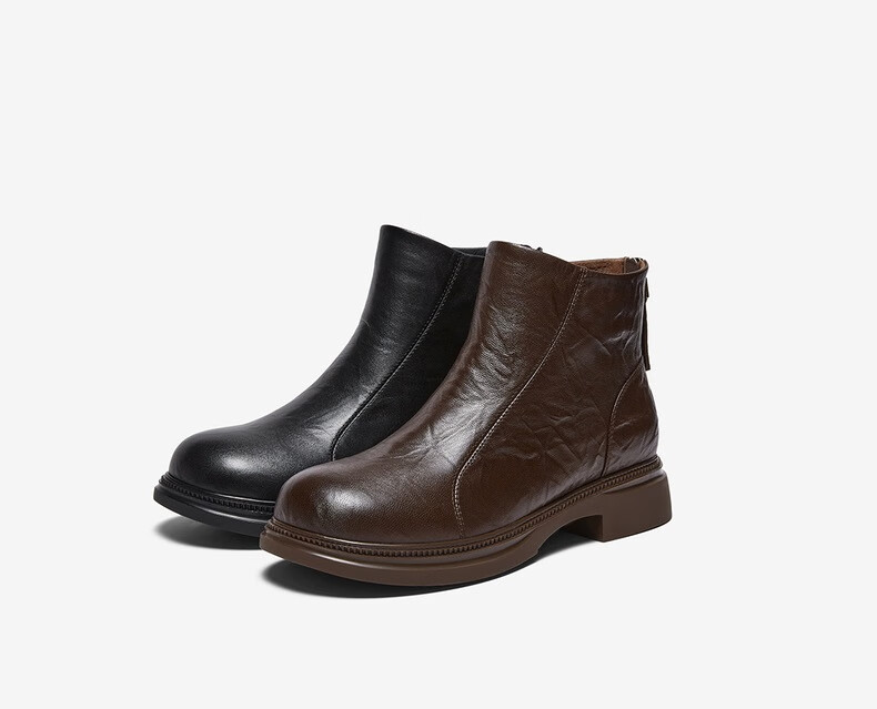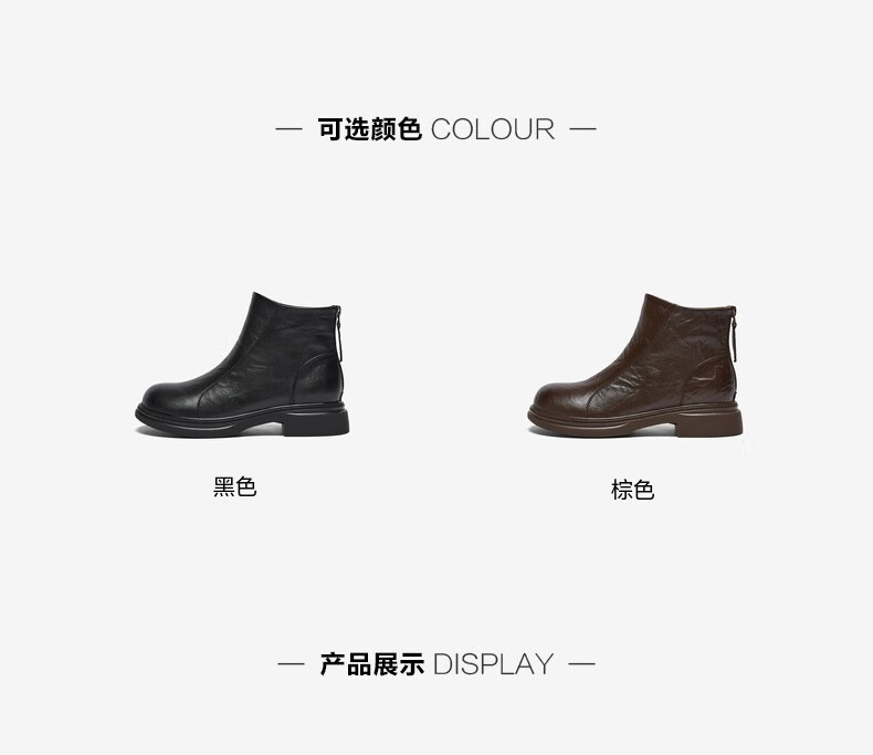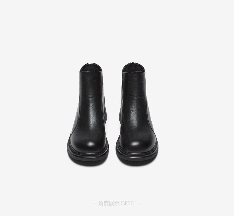百思图2025冬季商场新款圆头羊皮靴通勤粗跟女短靴马丁靴S3055DD5 黑色 34