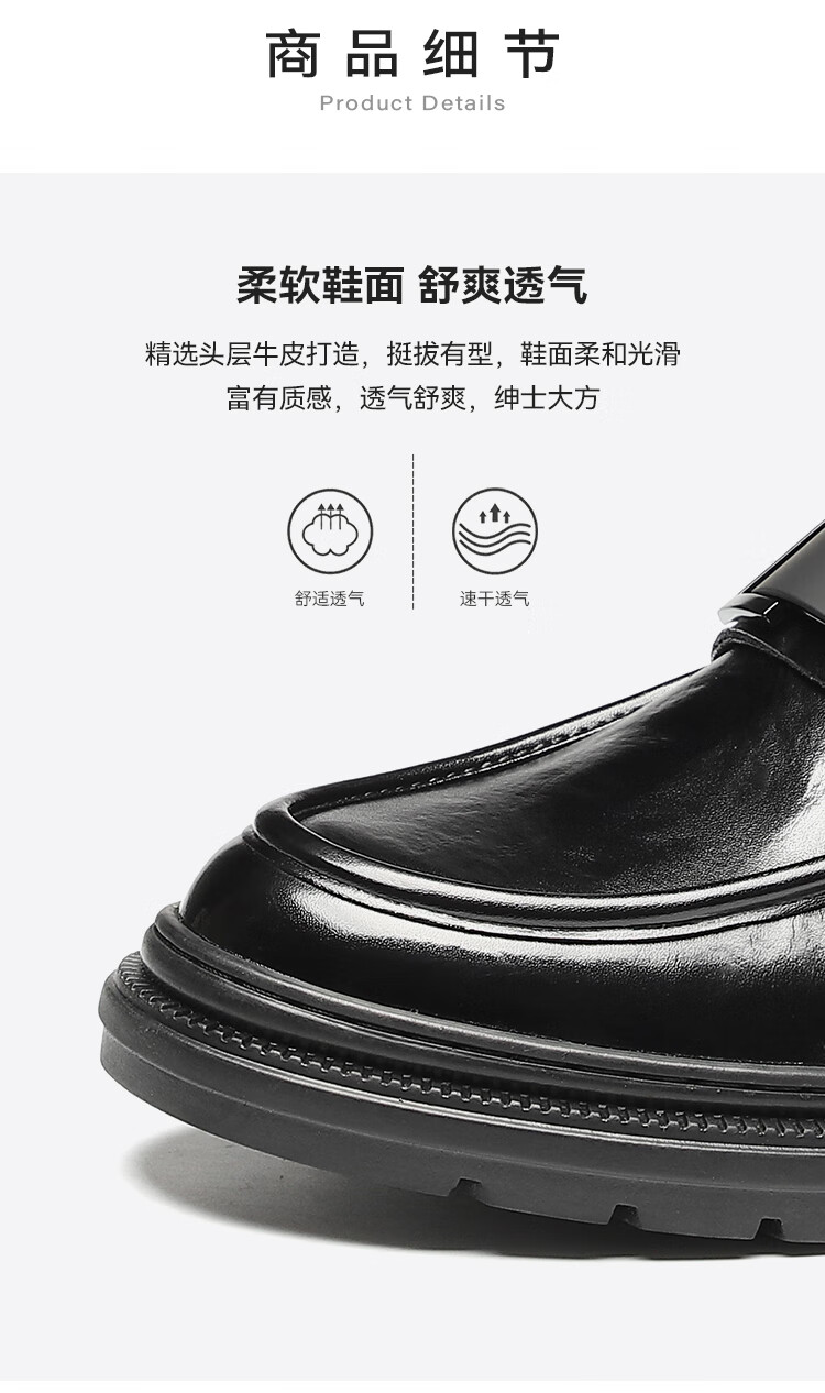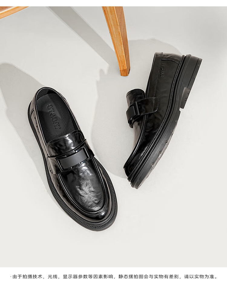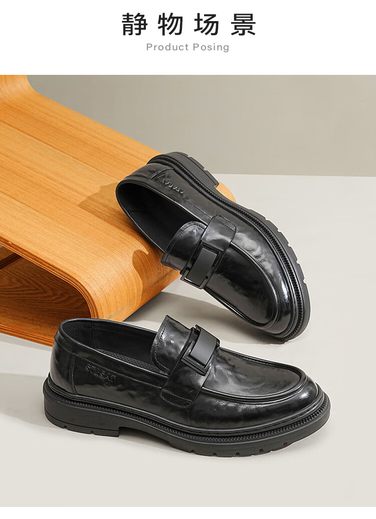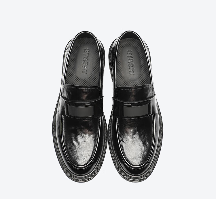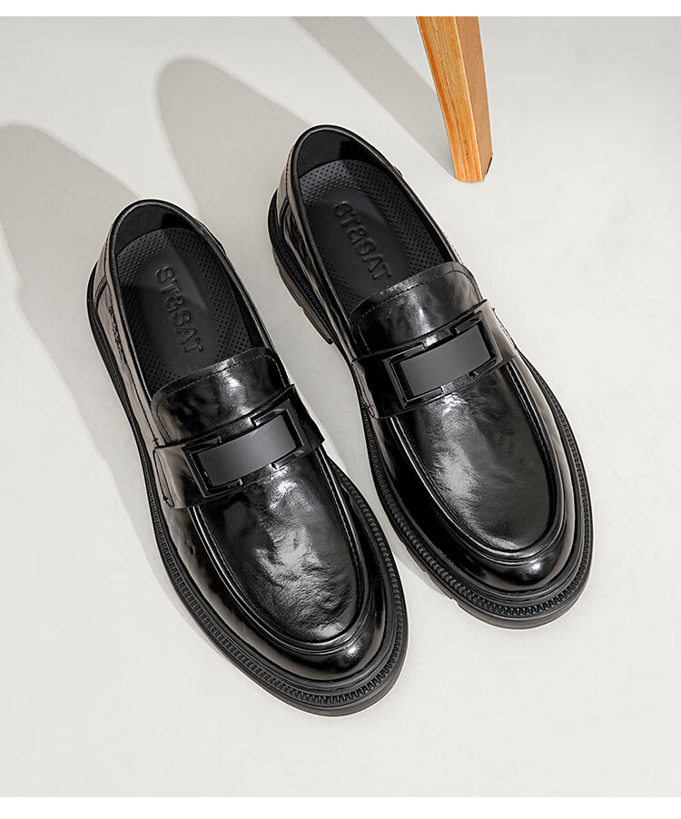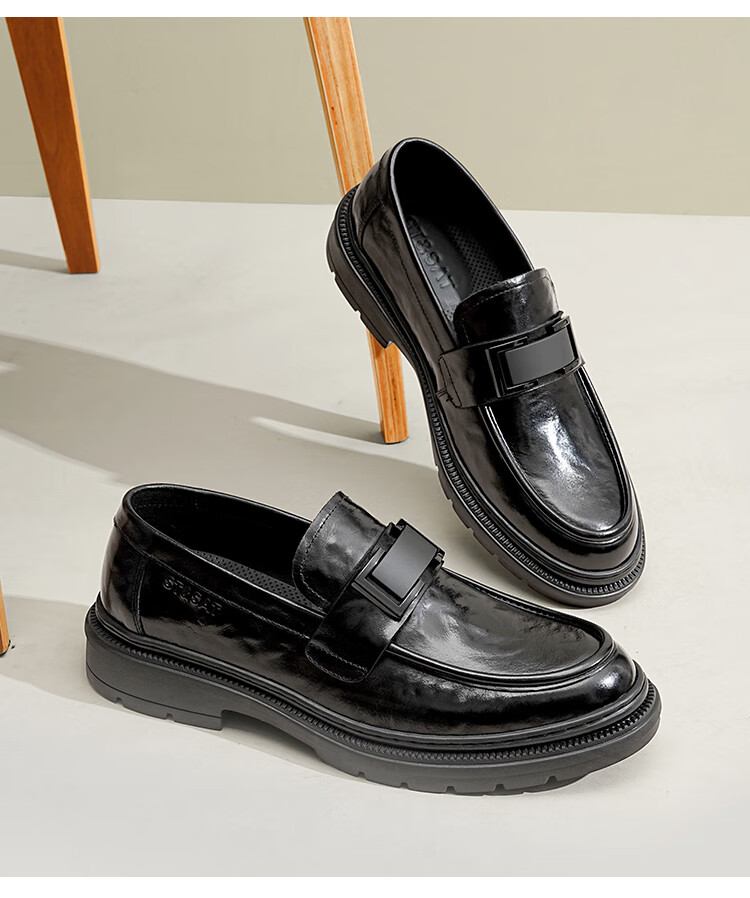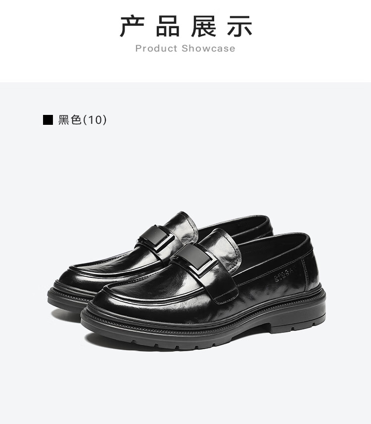 星期六男鞋头层牛皮男士商务正装皮鞋牛垫透气一脚蹬金属扣饰乐福鞋男