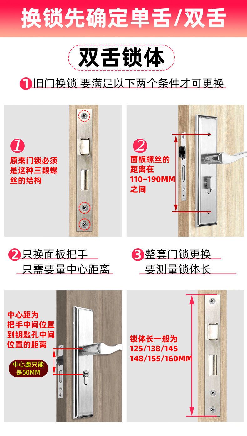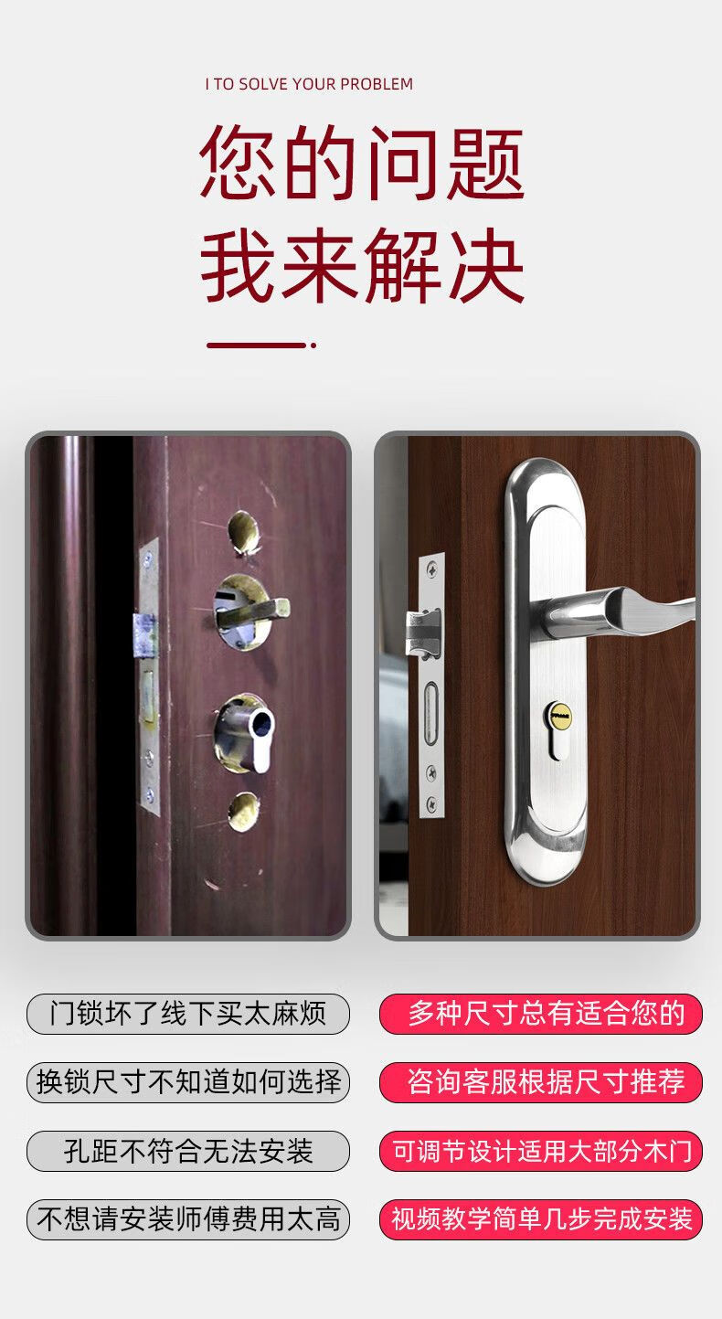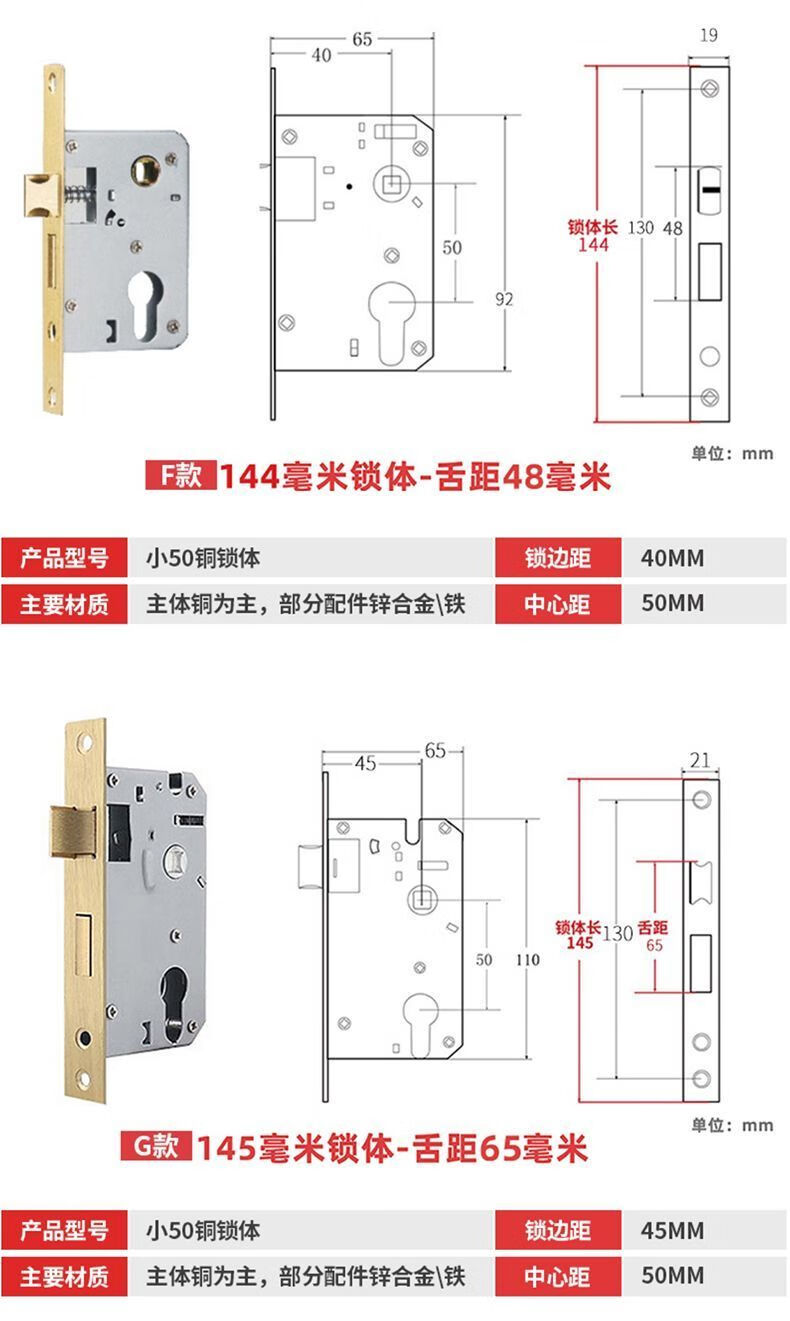 威龙原子房间门锁全套家用卧室门锁木门锁通用型全套换超厚静音锁入户内门 【双舌】G款145锁体/65锁舌【三年质保】