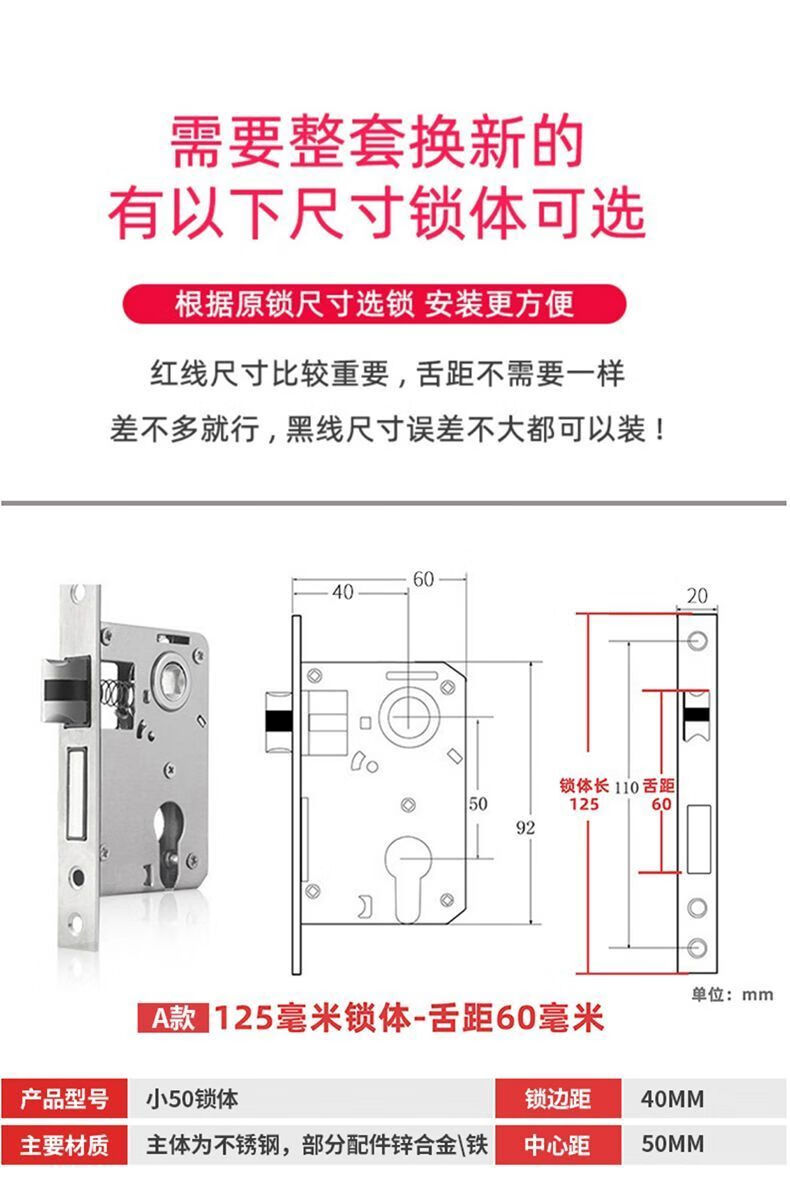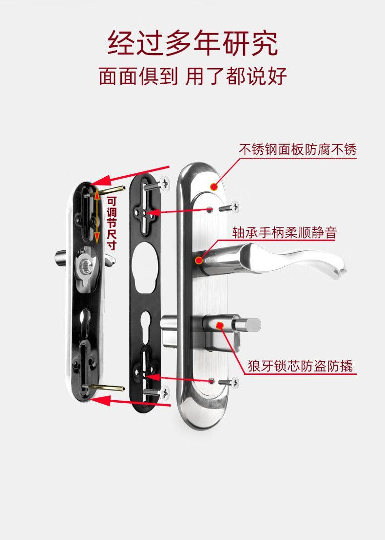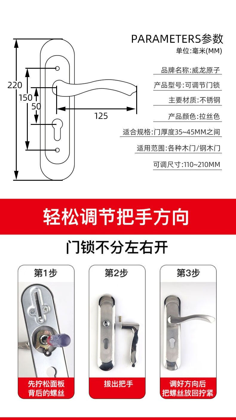 威龙原子房间门锁全套家用卧室门锁木门锁通用型全套换超厚静音锁入户内门 【双舌】G款145锁体/65锁舌【三年质保】