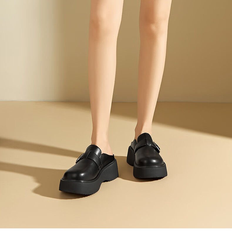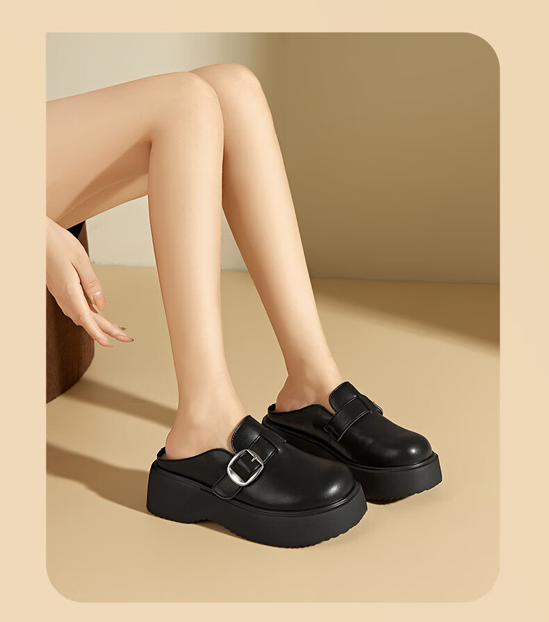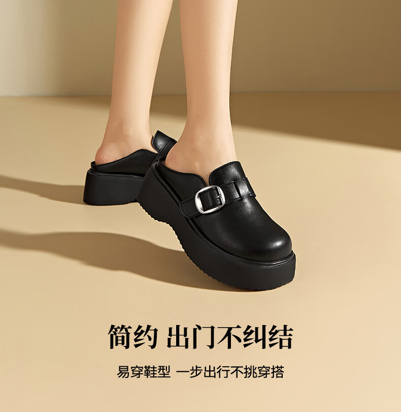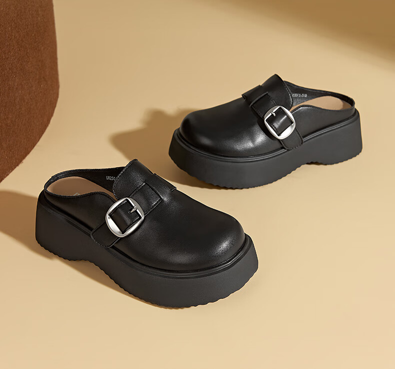 大东厚底包头拖鞋女鞋时尚舒适1157 黑色 35