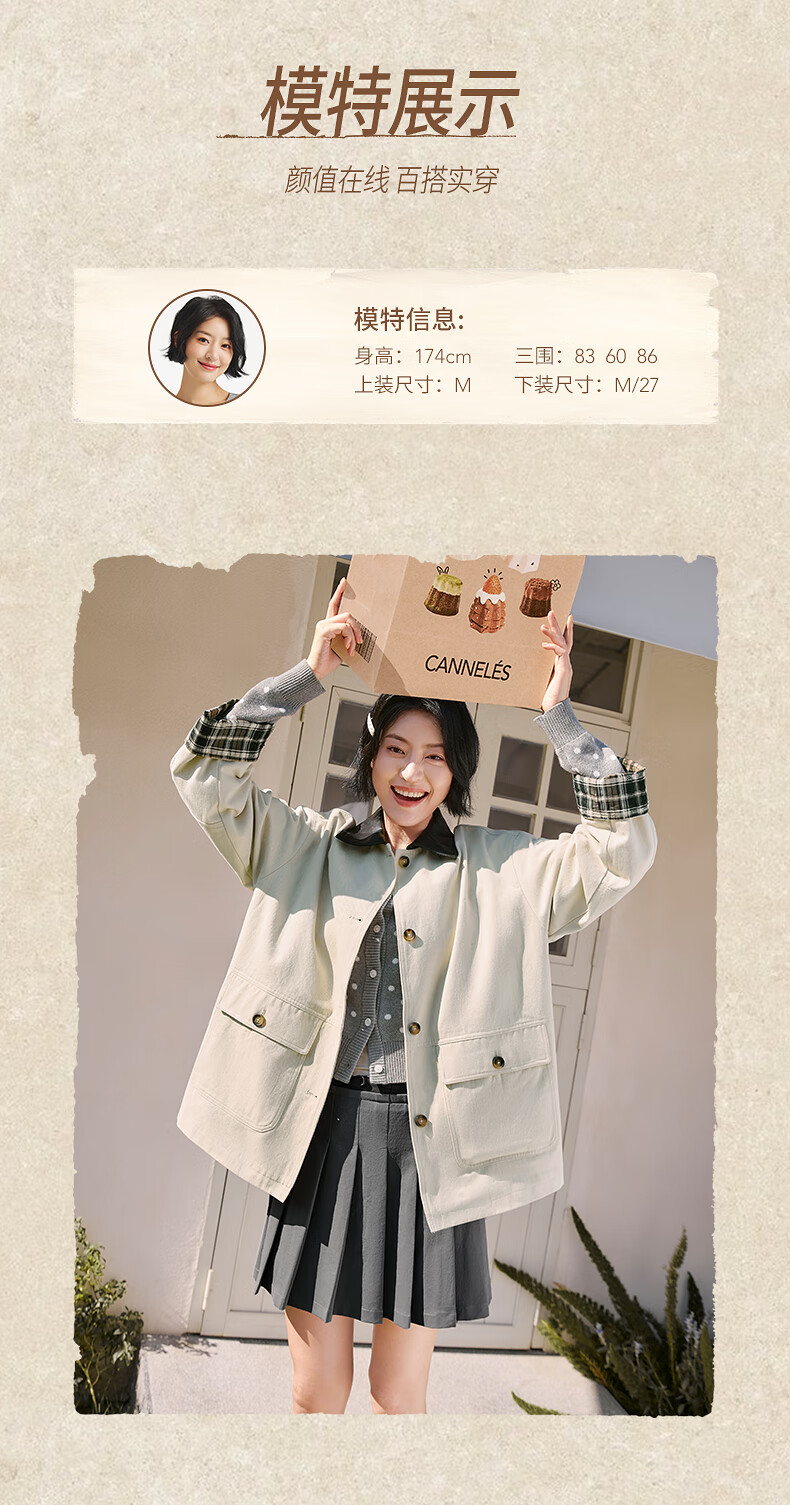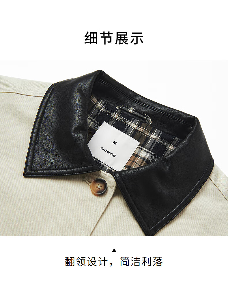 热风【商场同款】女士风衣25年秋新款巴恩风复古感翻领撞色廓形外套 08杏色 S