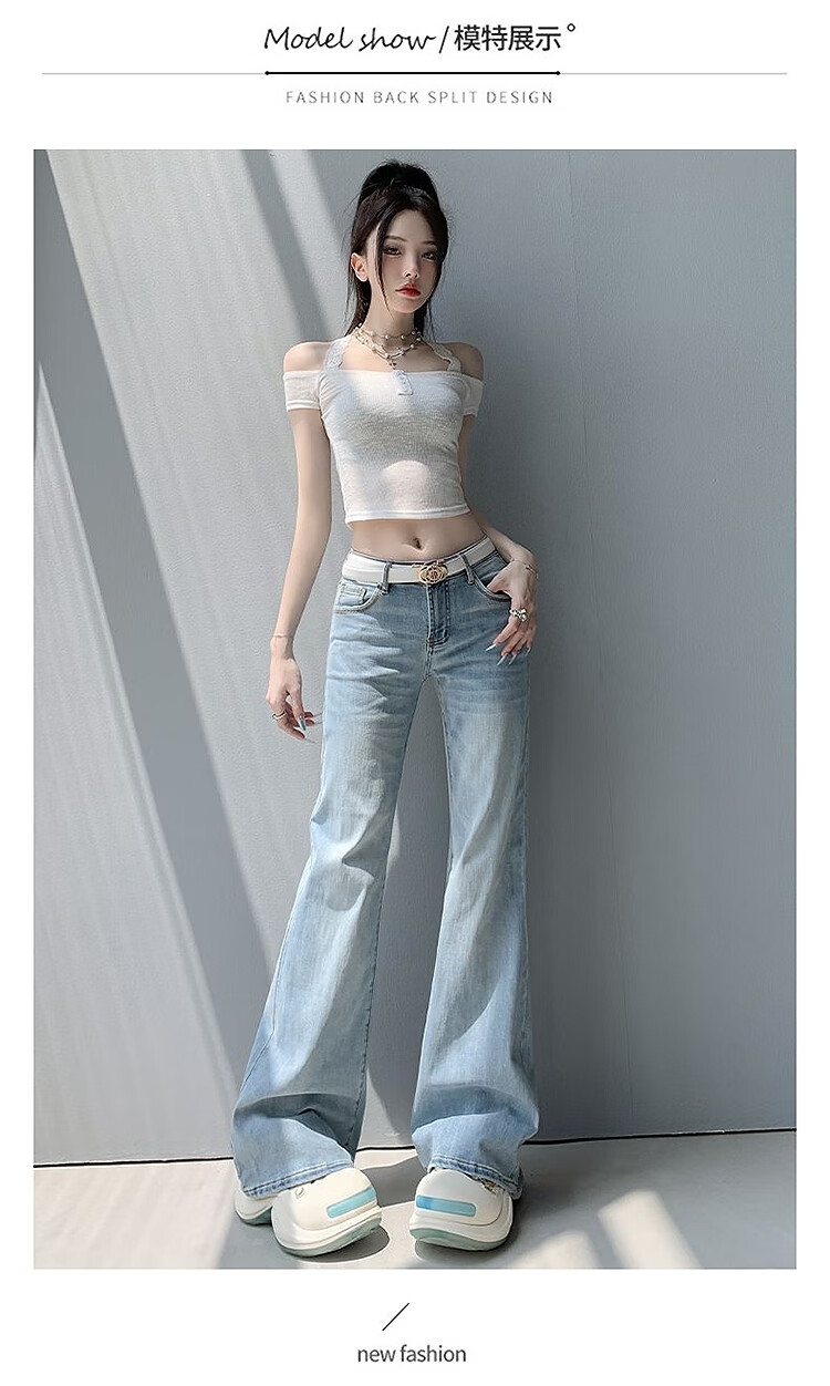 西遇低腰微喇牛仔裤女2025年秋季新款辣妹浅蓝色修身显瘦拖地裤 浅蓝色 (预售15天) S (26)