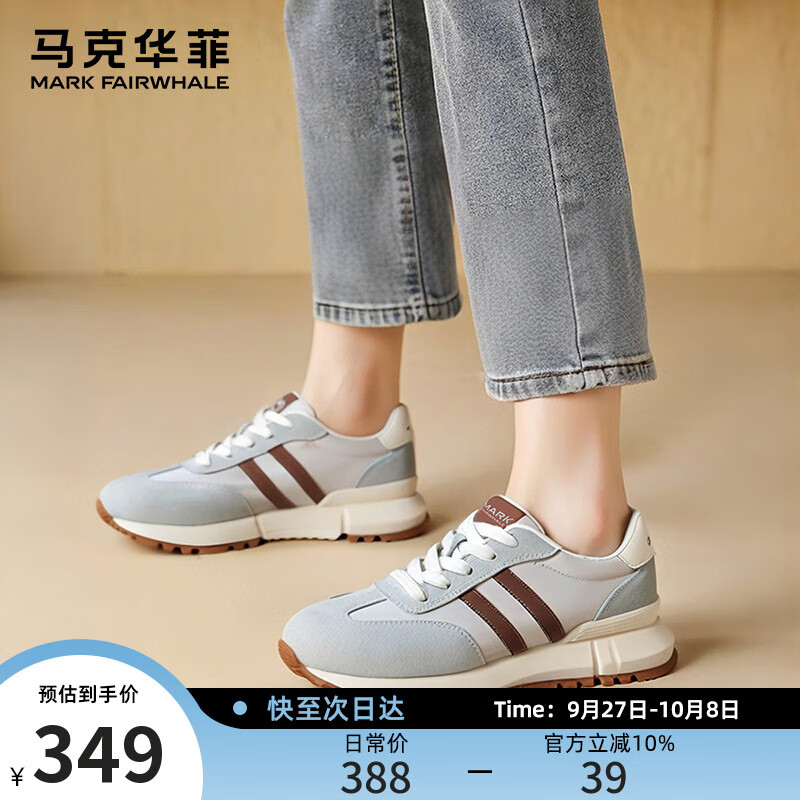 马克华菲女鞋德训风女板鞋耐磨透气舒适百搭运动休闲鞋女款 蓝色 38
