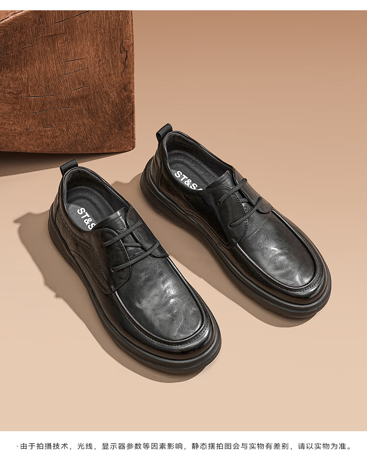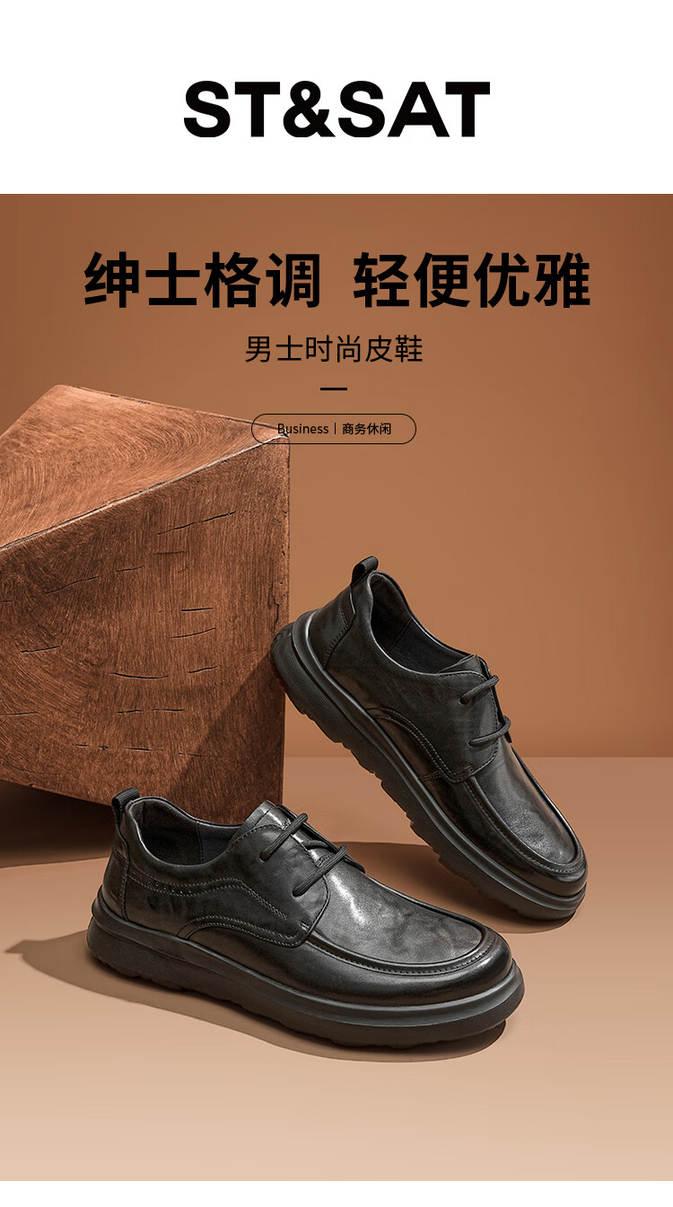 星期六男鞋时尚牛皮商务正装皮鞋百搭系带休闲皮鞋男职场通勤鞋子男