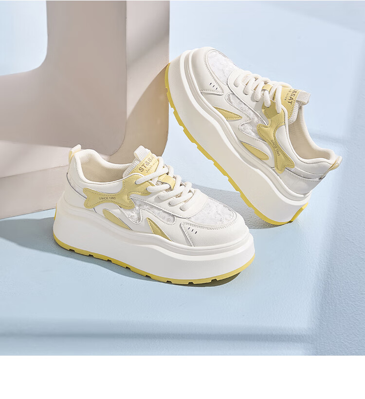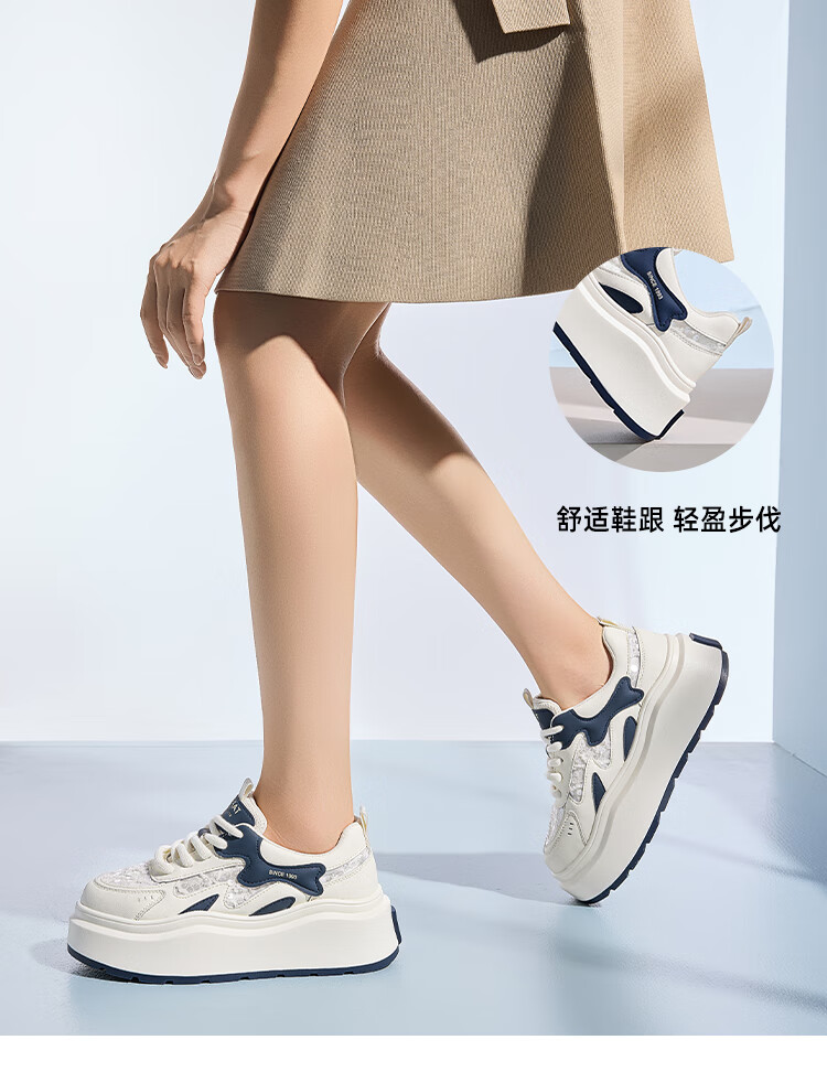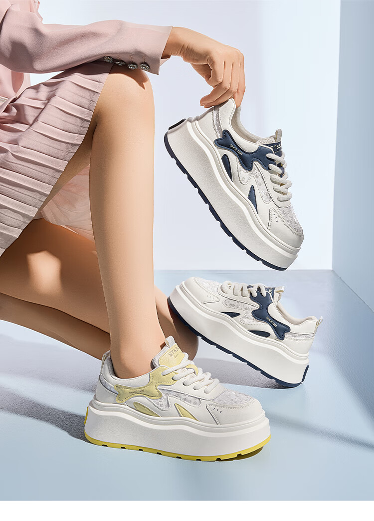 星期六厚底圆头百搭小白鞋2025春季新款舒适休闲板鞋MTSSD1112C11 米蓝色 35