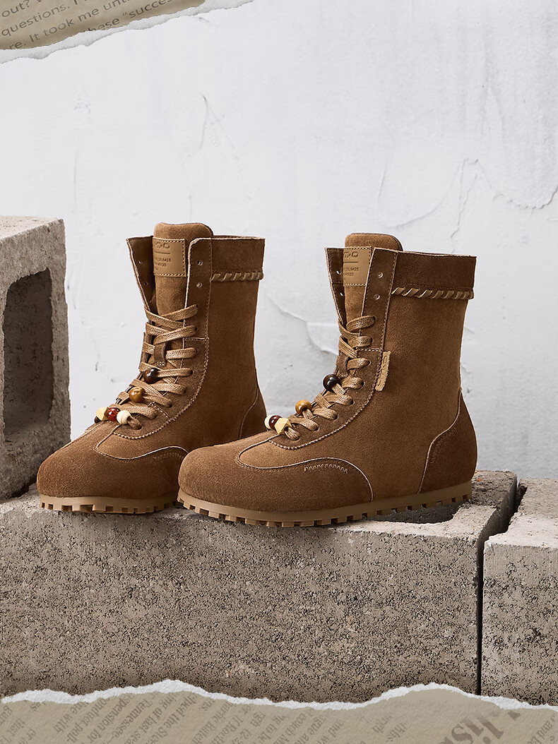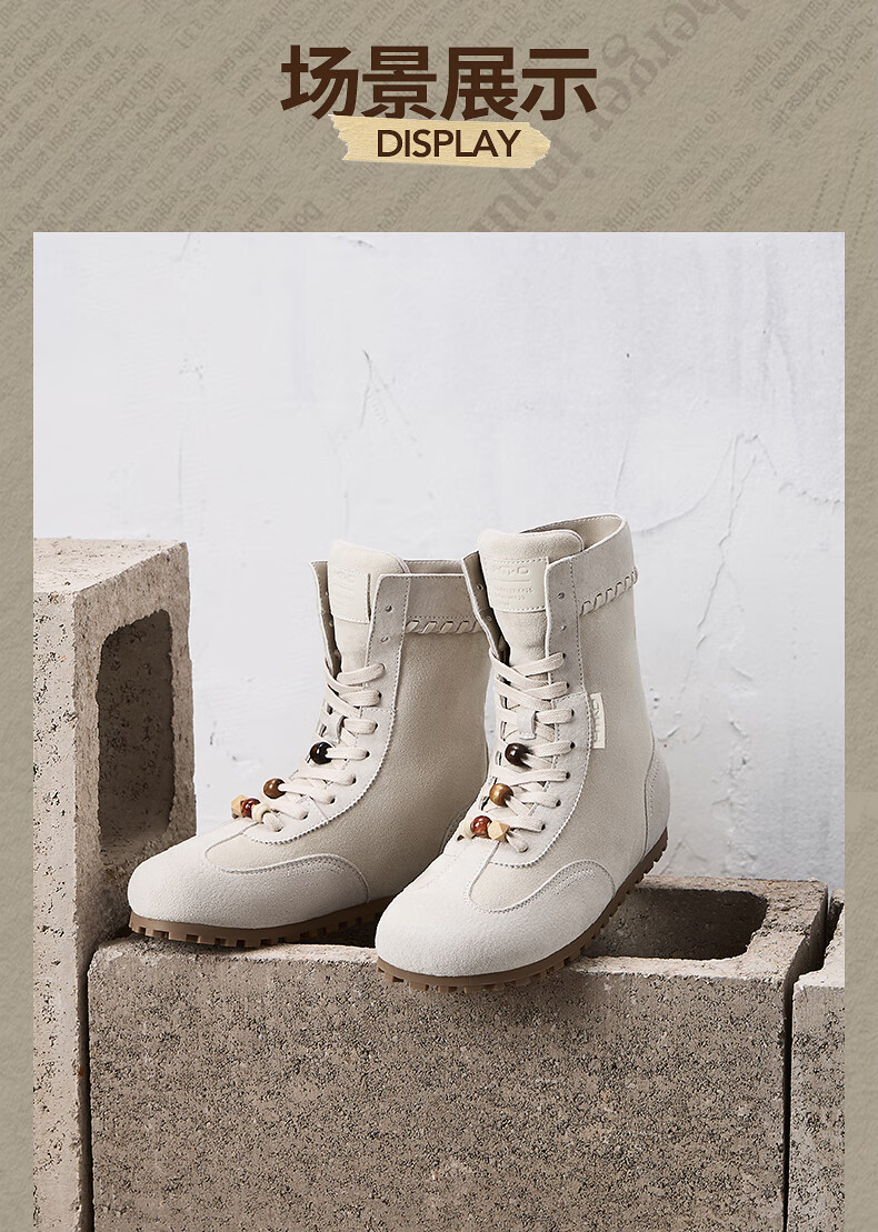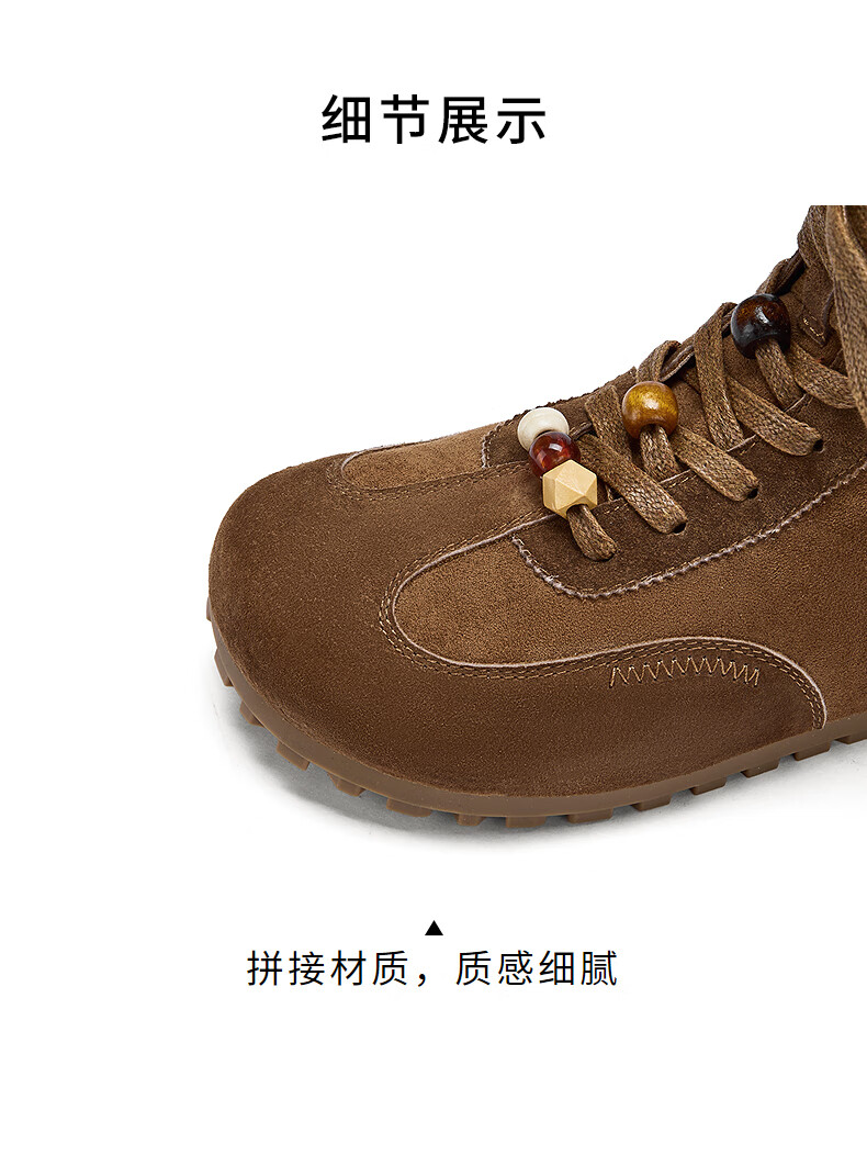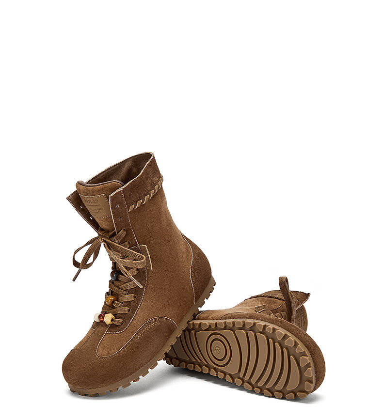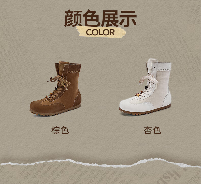 热风【迪士尼系列】复古西部靴女靴2025年冬季新款美拉德休闲时装靴子 08杏色 37