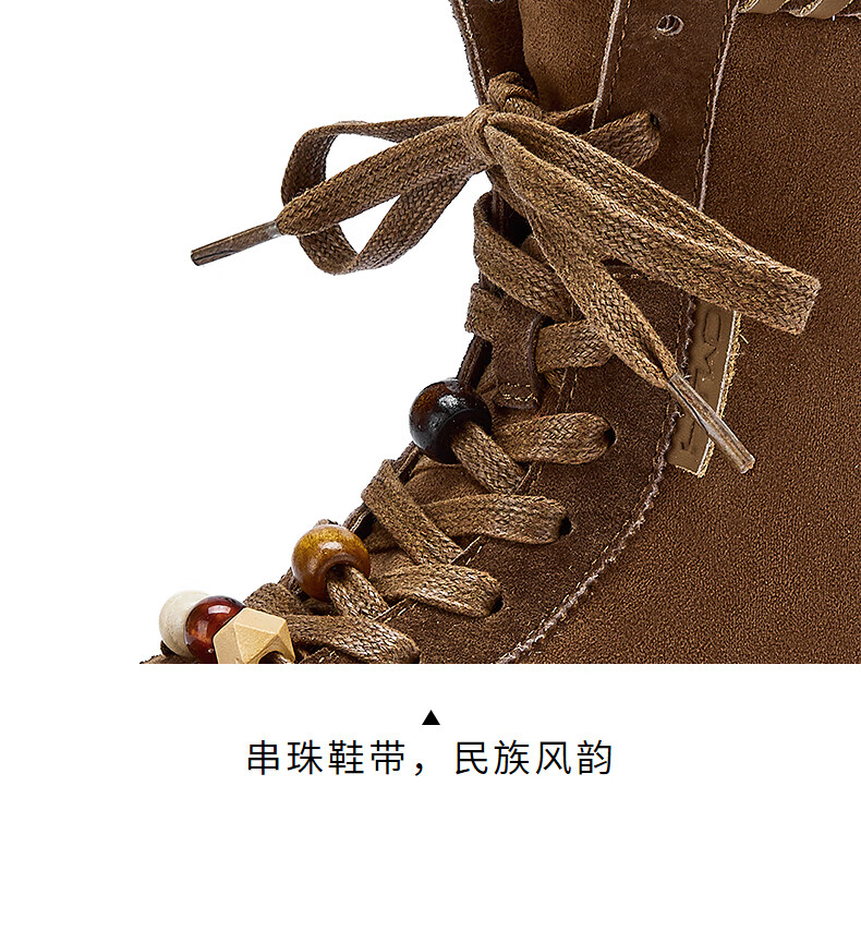 热风女靴复古时尚西部靴2025年冬季新款女士民族风外穿时装平底短靴子 02棕色 35