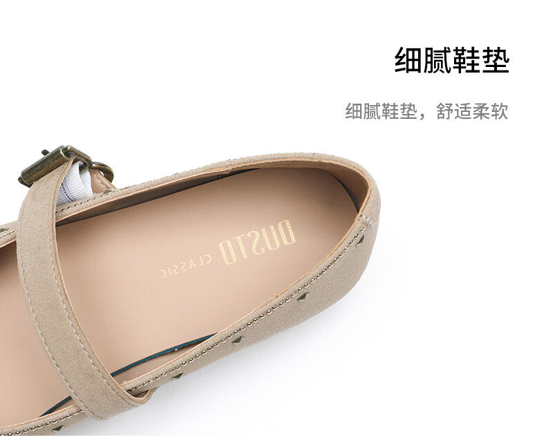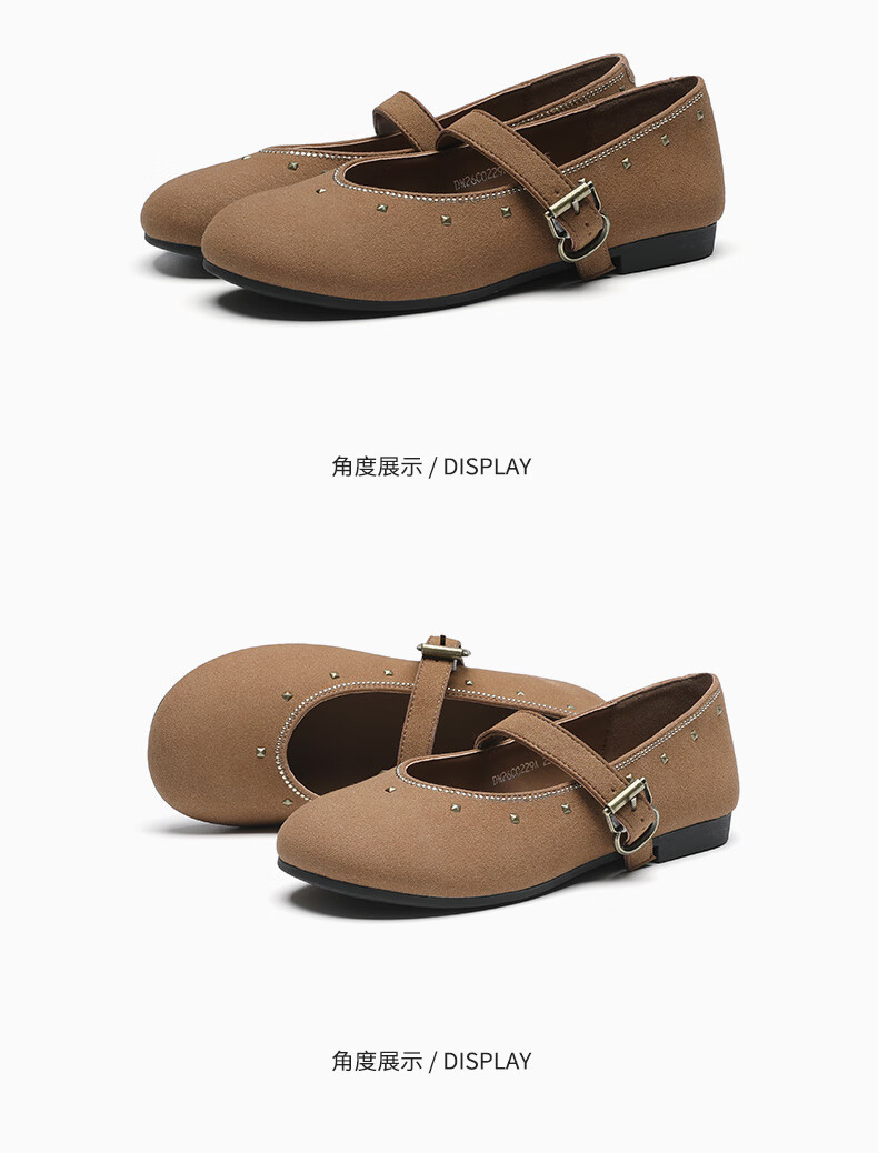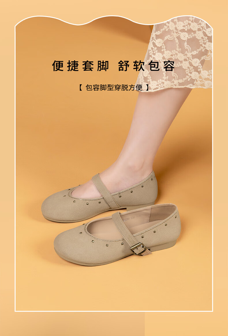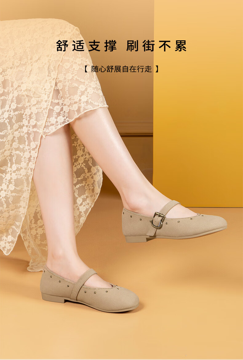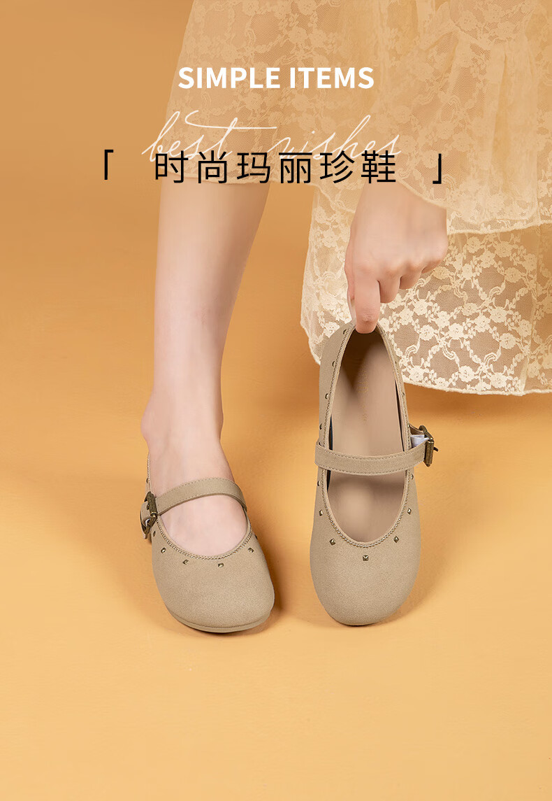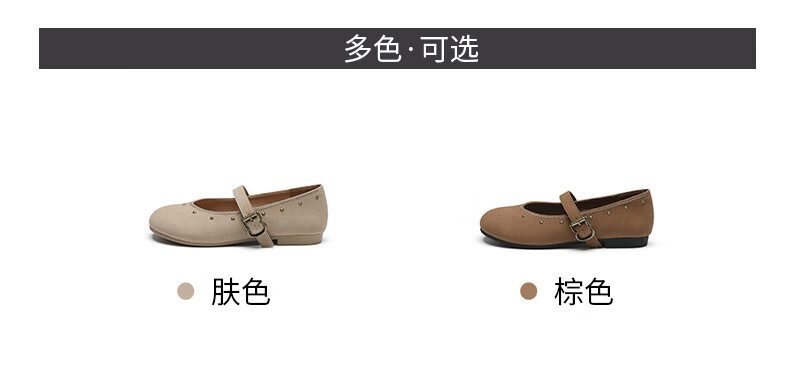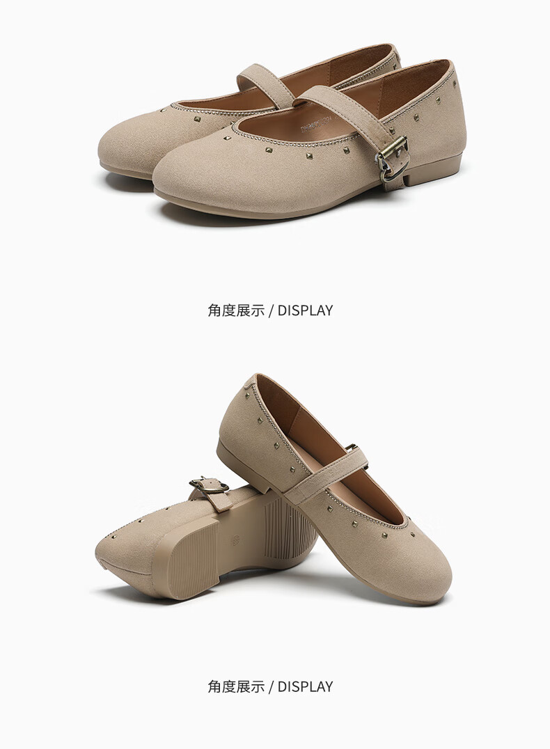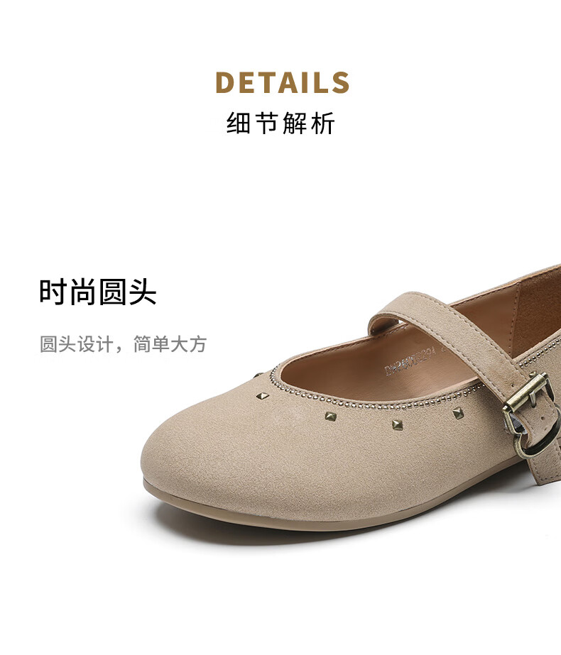 大东玛丽珍女鞋2026年春季新款时尚复古圆头铆钉0229 肤色 35