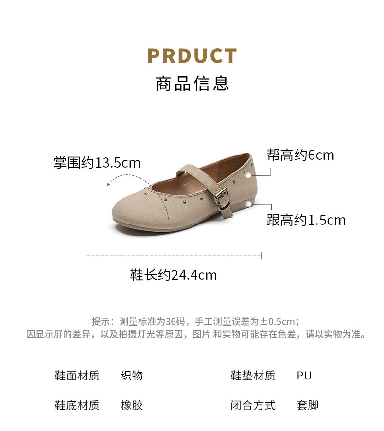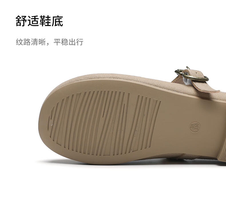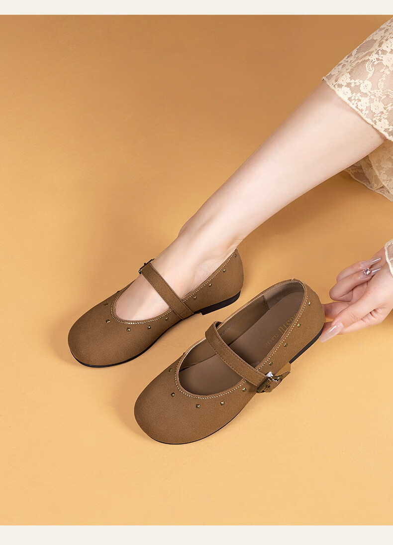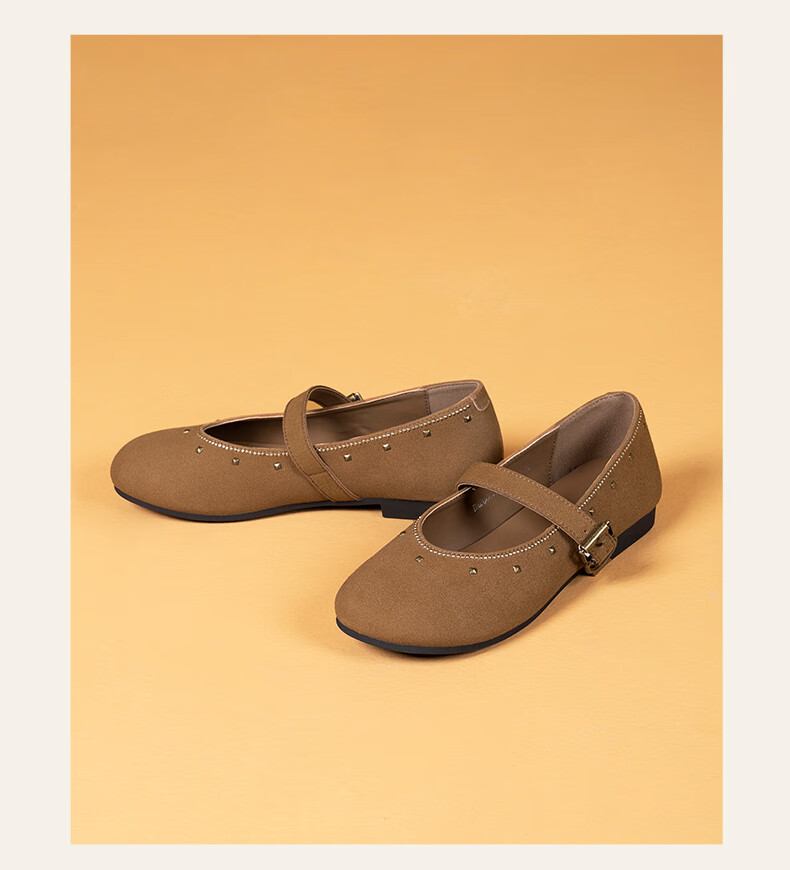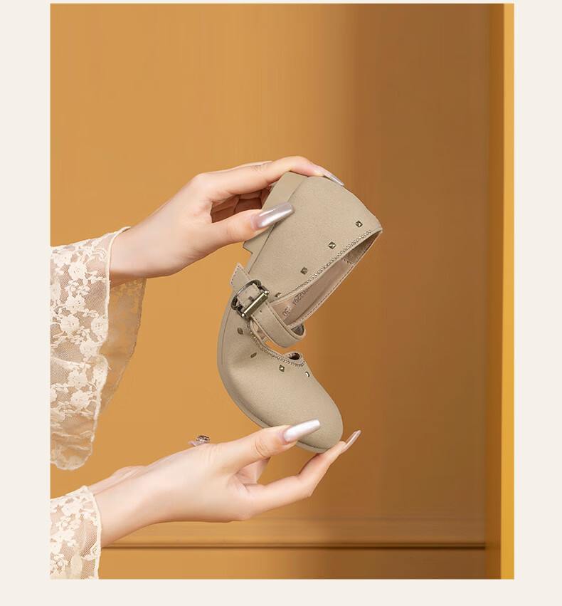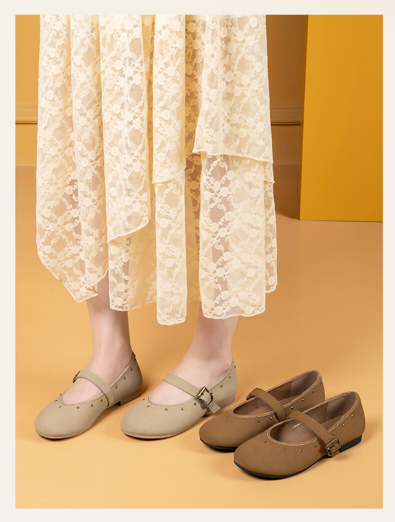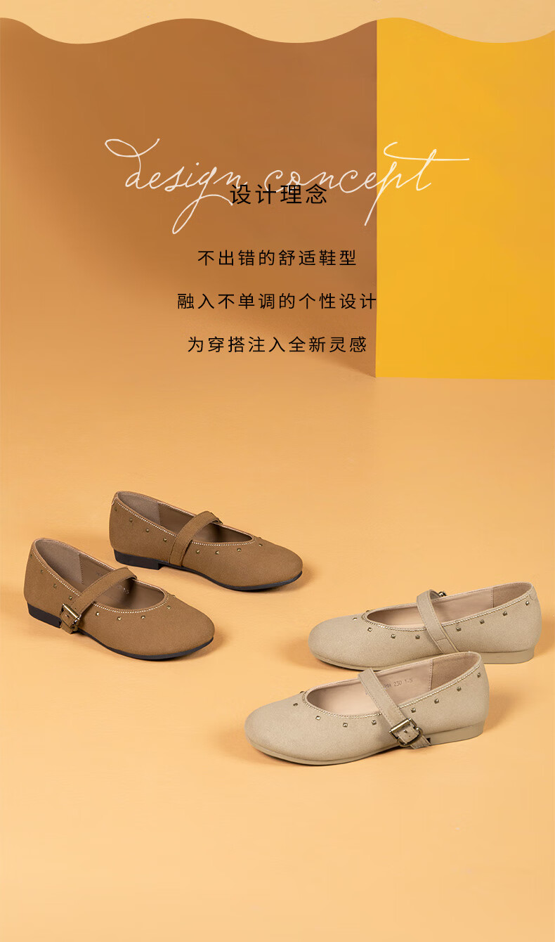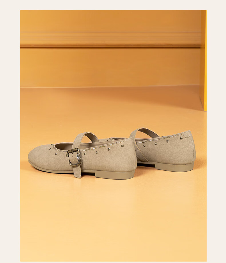 大东玛丽珍女鞋2026年春季新款时尚复古圆头铆钉0229 肤色 35
