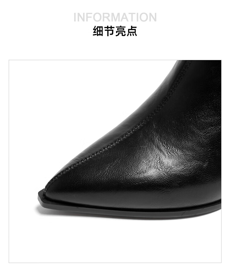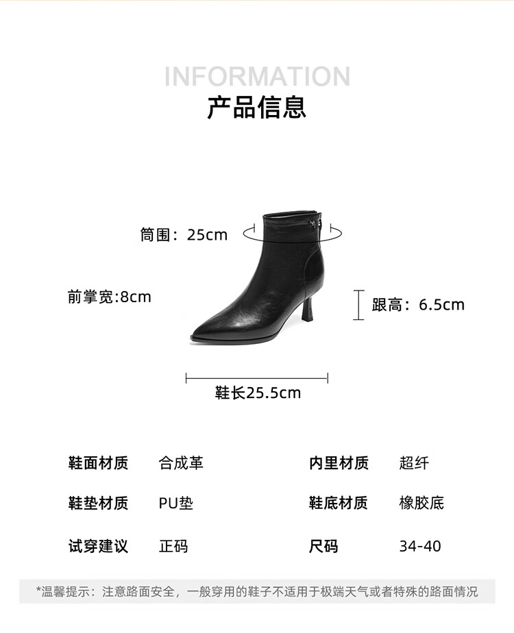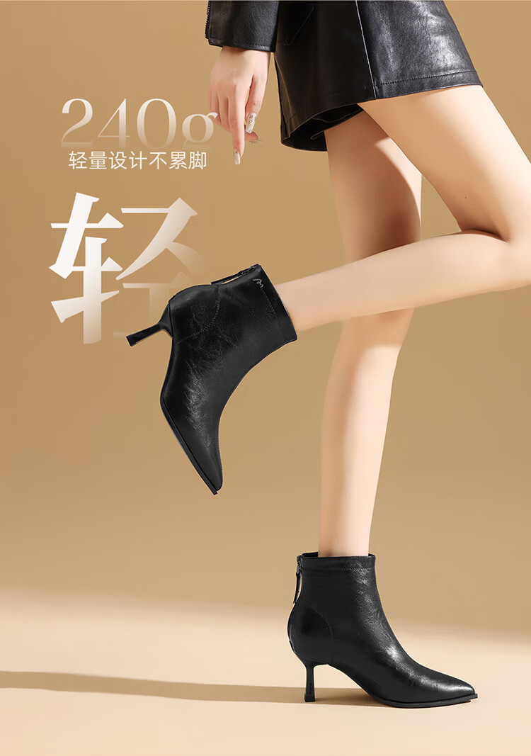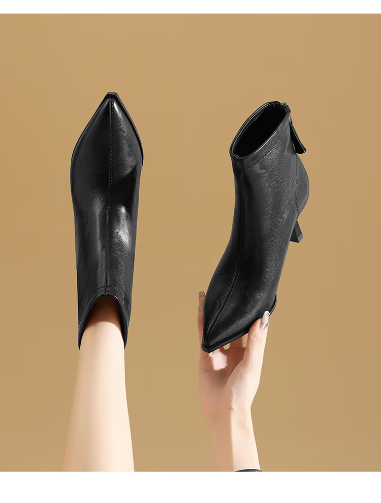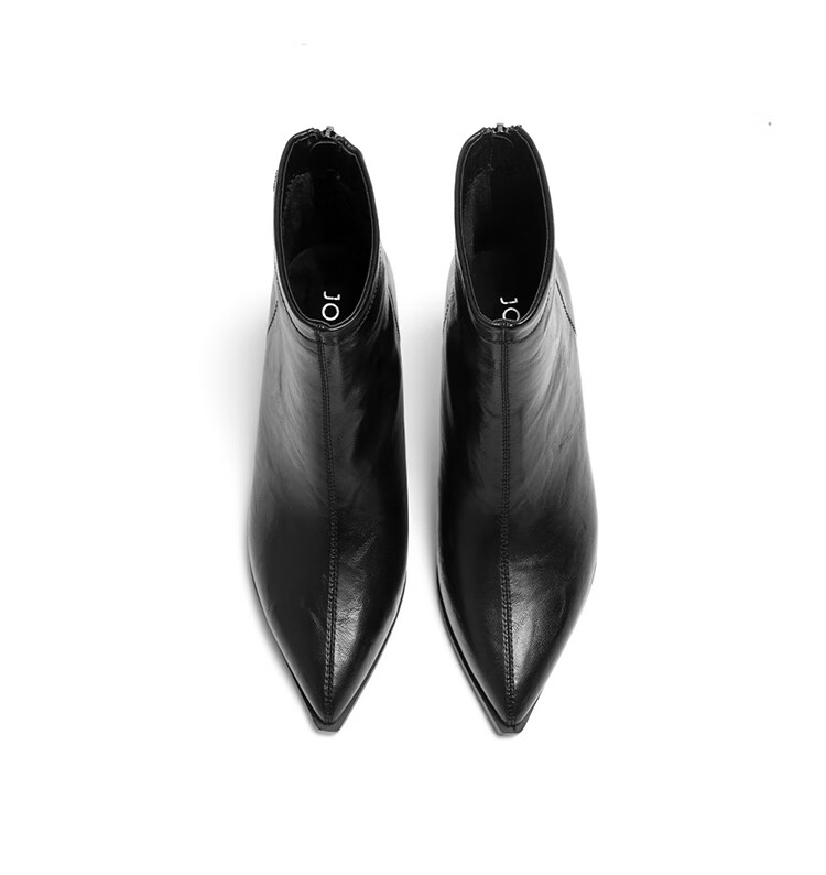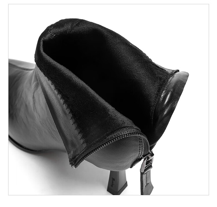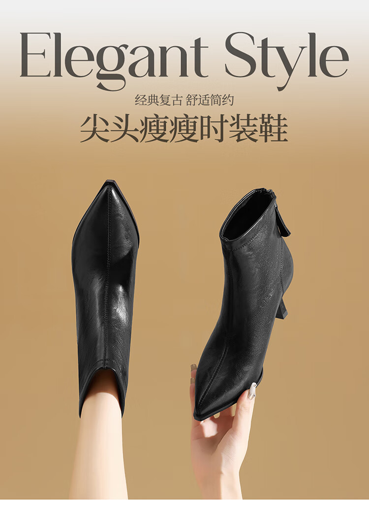 卓诗尼高跟短靴女2025新款时尚休闲细跟后拉链黑色尖头时装靴 黑色 37