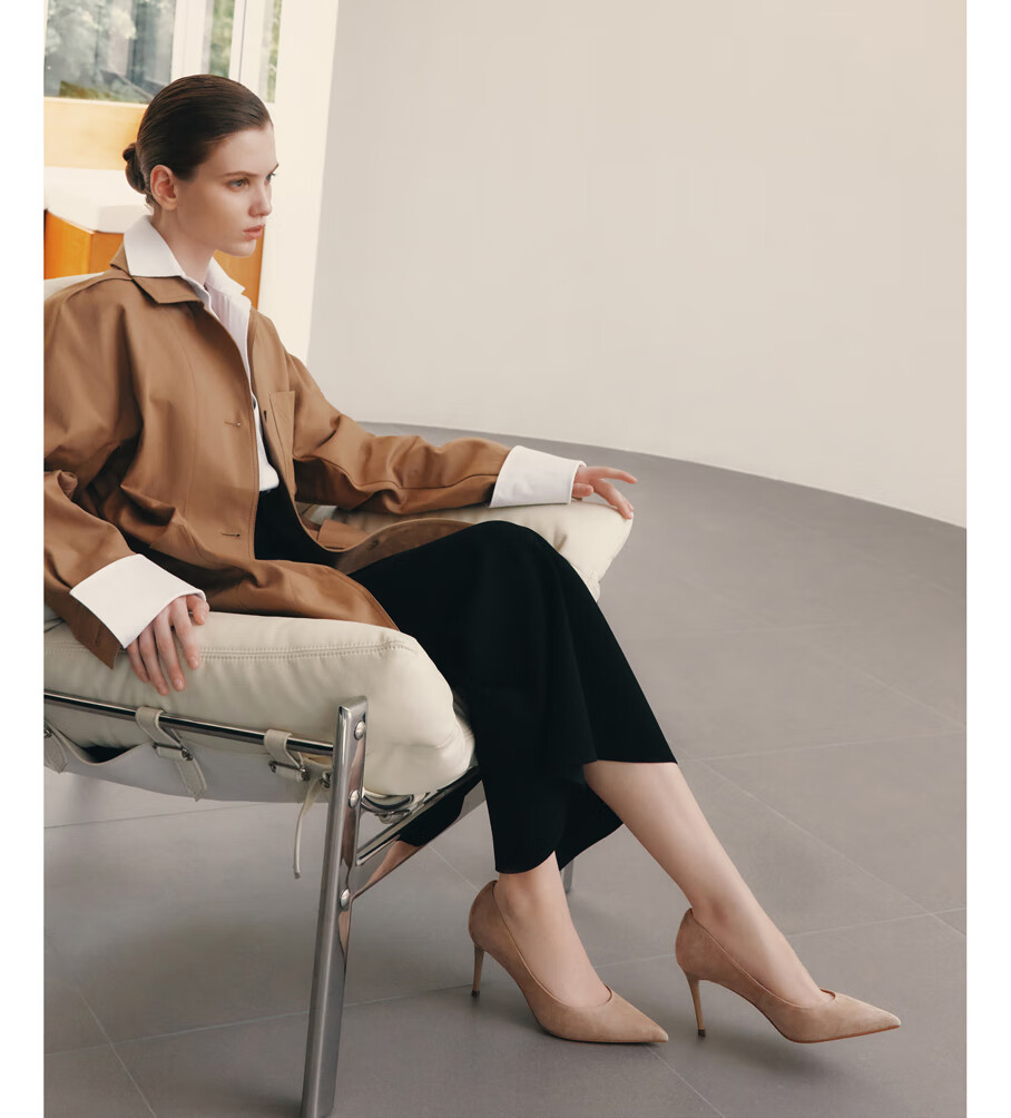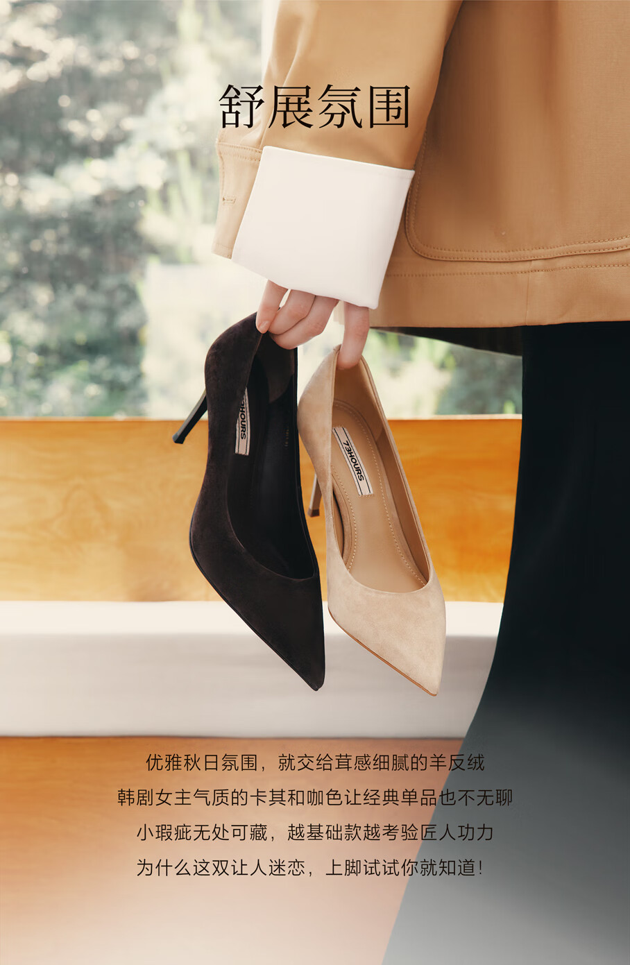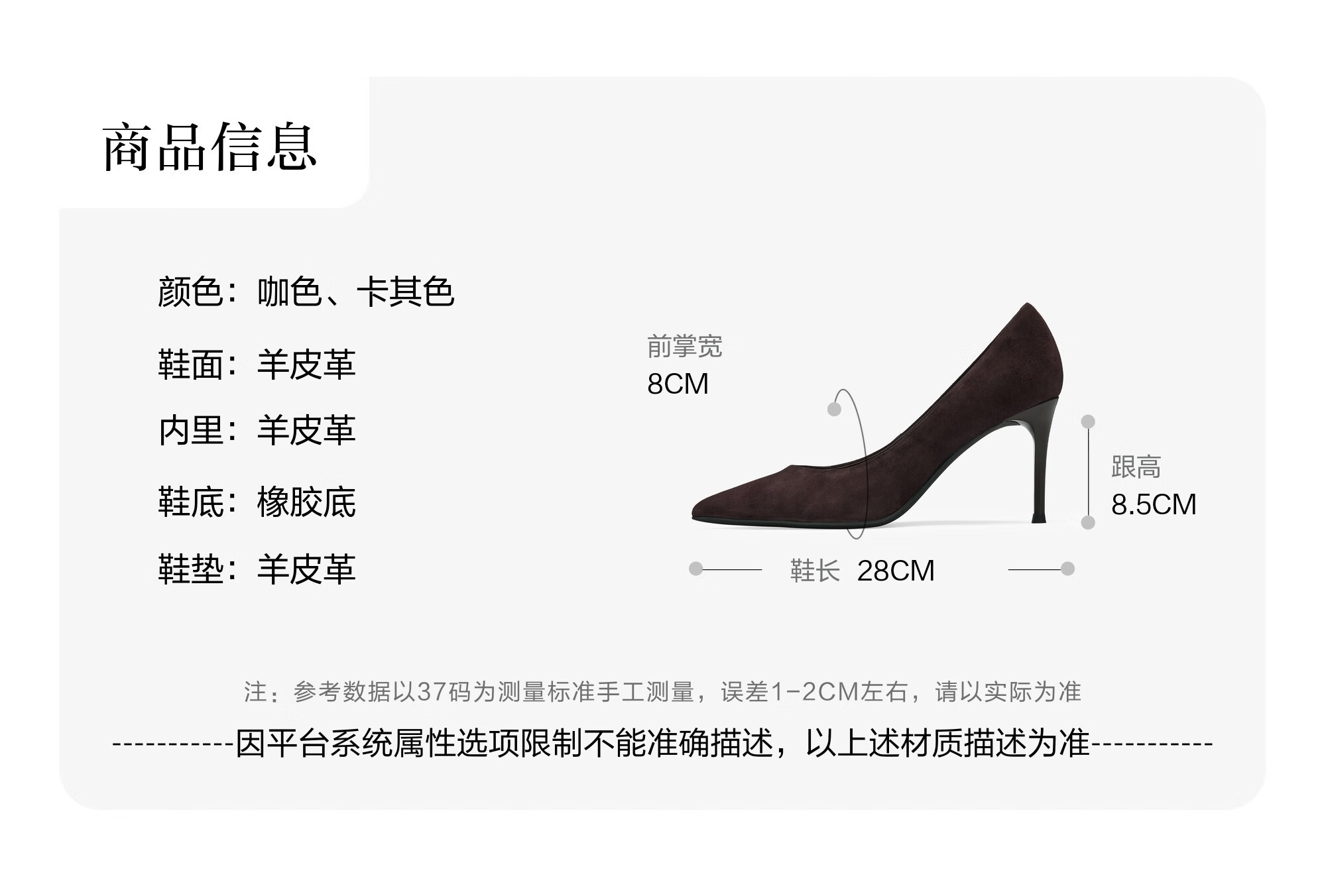 73Hours女鞋舒展氛围2025秋季新款高跟鞋女细跟通勤气质职场单鞋 卡其色 39