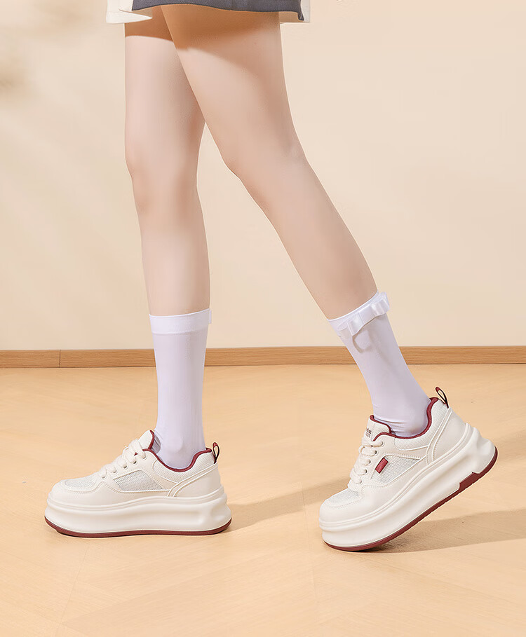 马克华菲德训鞋女2025夏季新款厚底增高透气运动鞋百搭休闲板鞋 白绿 37