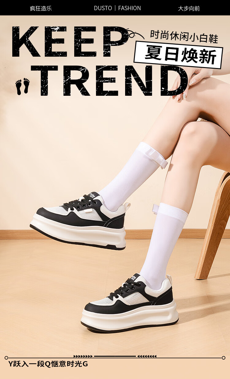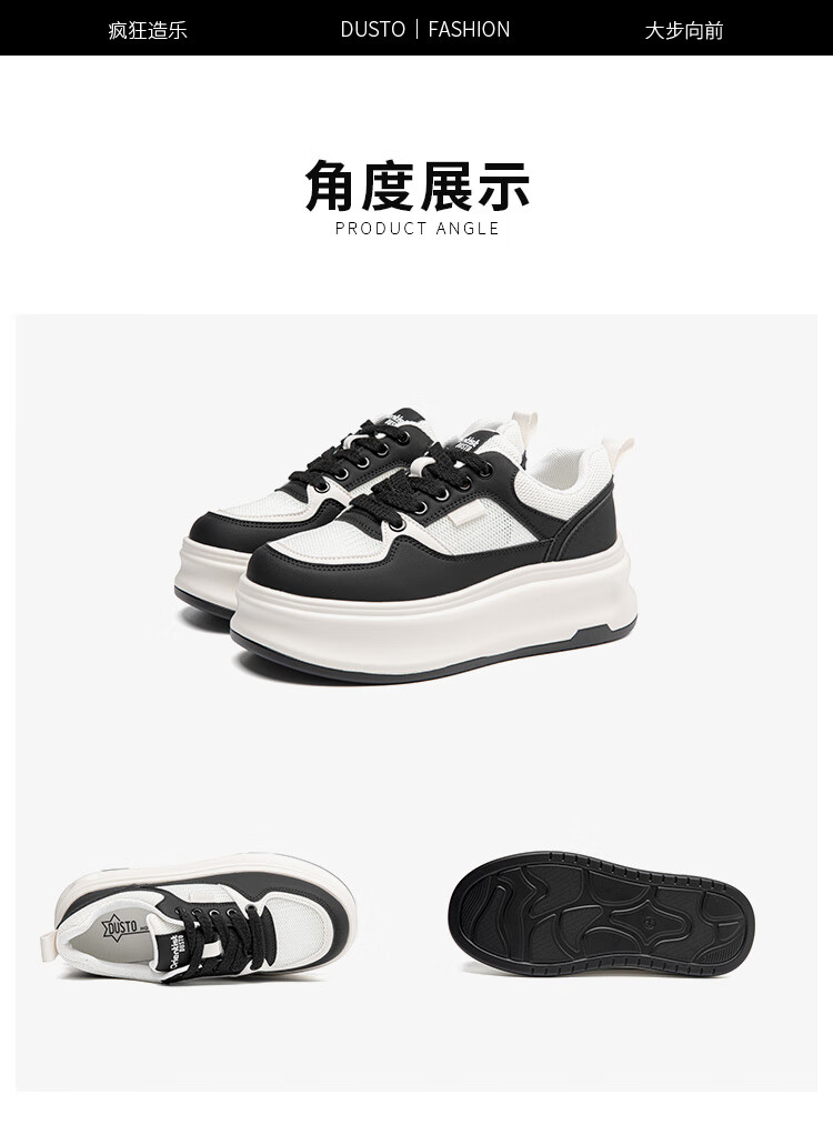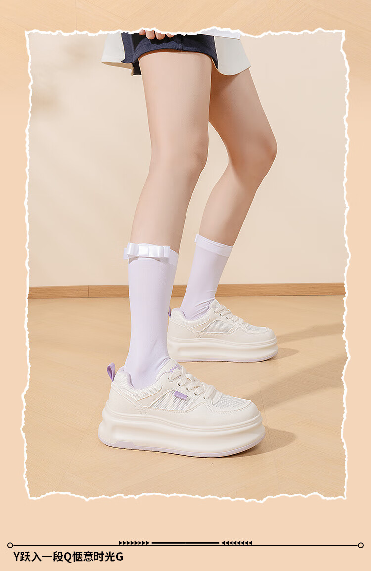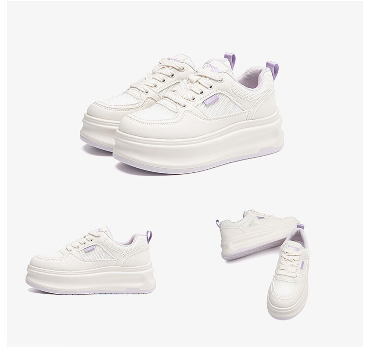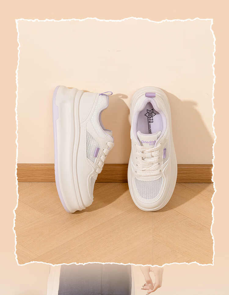 大东(dusto)厚底系带小白鞋2025夏学生简约百搭小白鞋户外休闲运动鞋0719 米紫色 38
