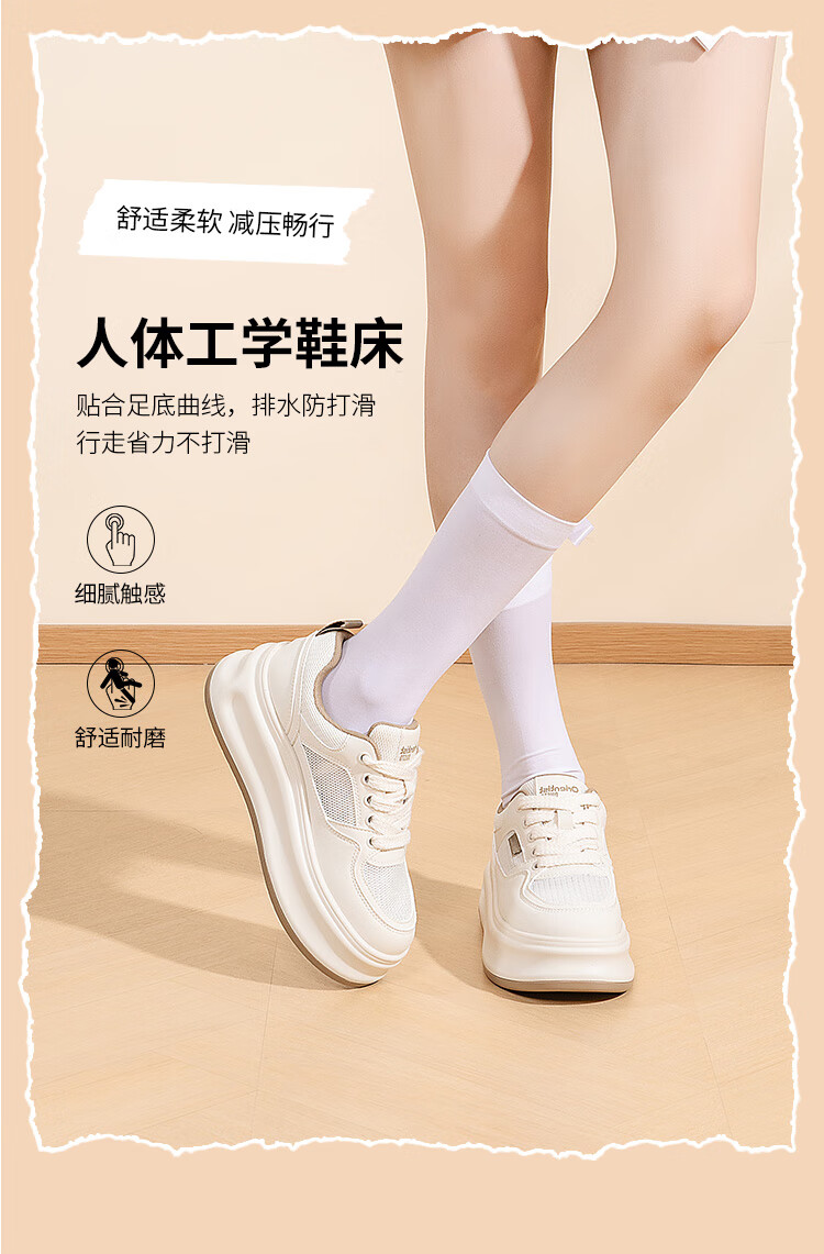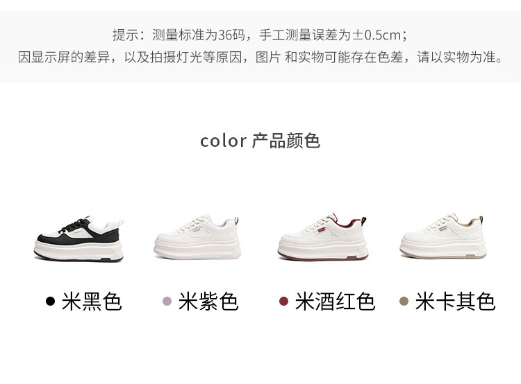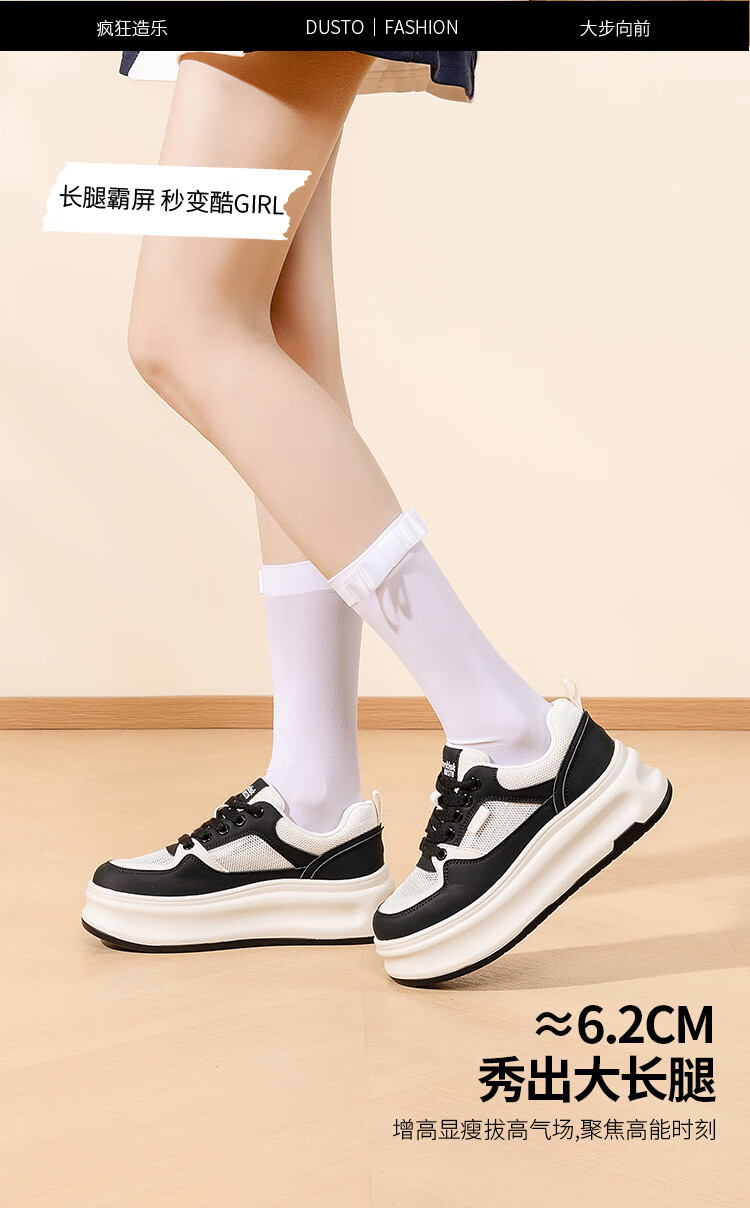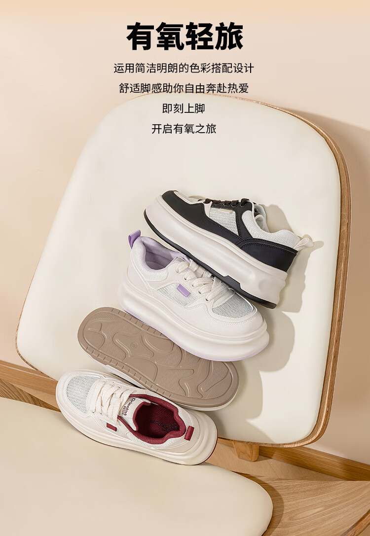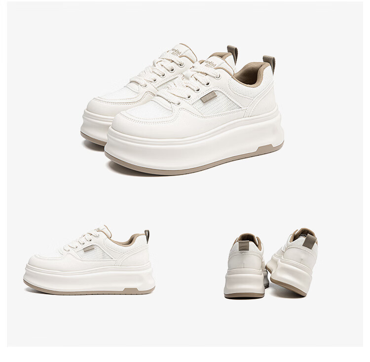 大东(dusto)厚底系带小白鞋2025夏学生简约百搭小白鞋户外休闲运动鞋0719 米紫色 38