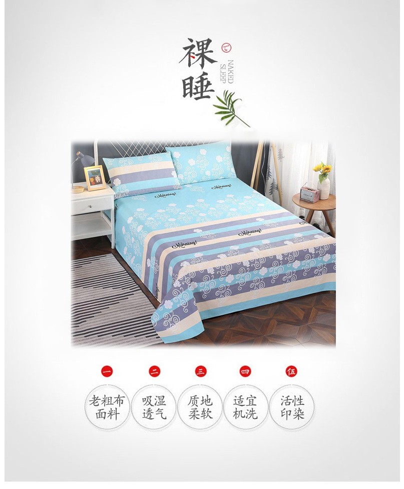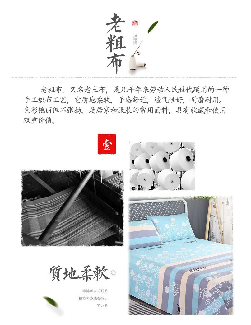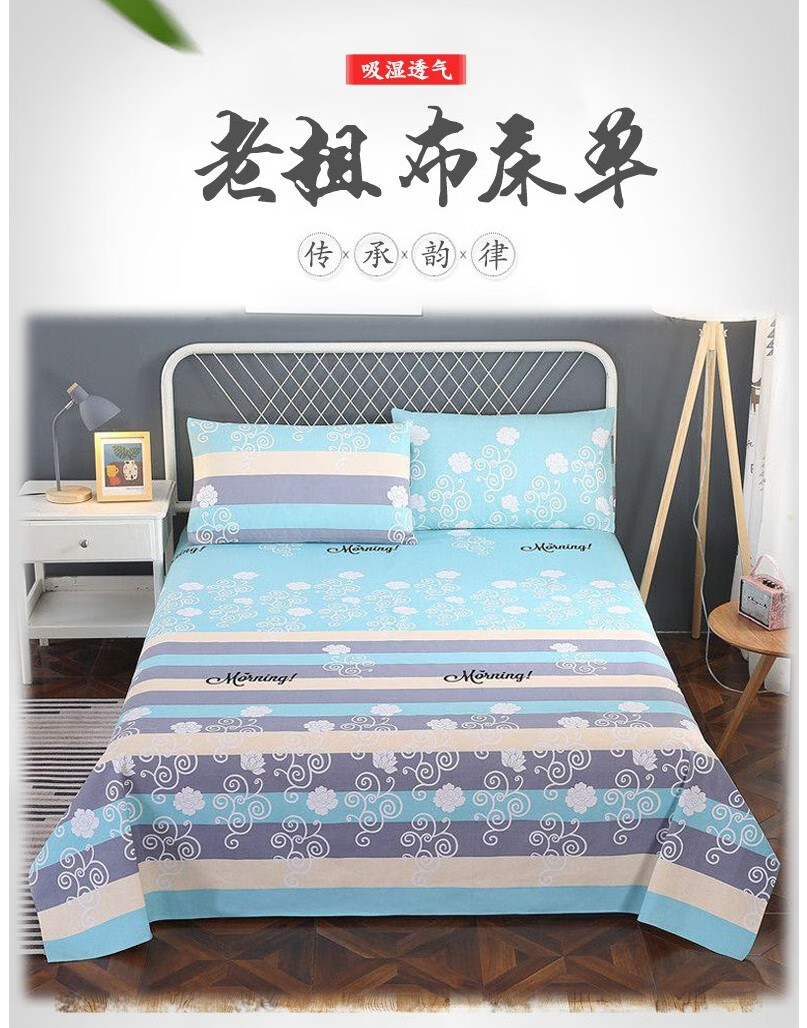 麦琪娜 床单加厚不起球不掉色老粗布床单老粗布凉席子老粗布布料床单 蓝格 学生床单120*230cm
