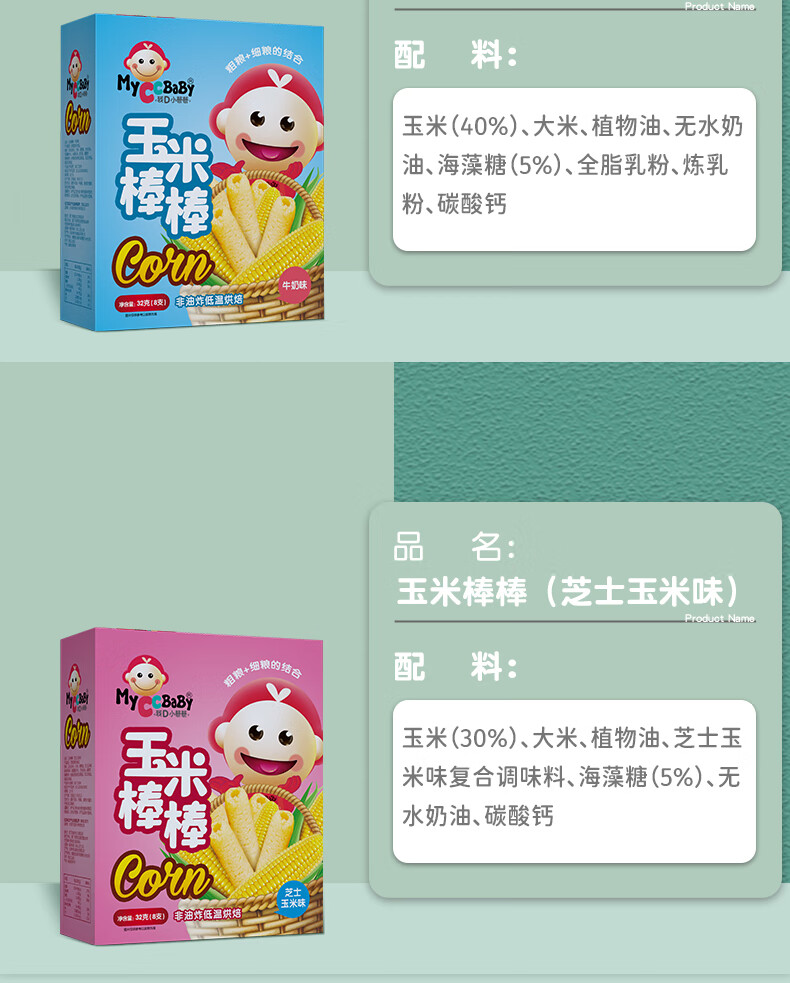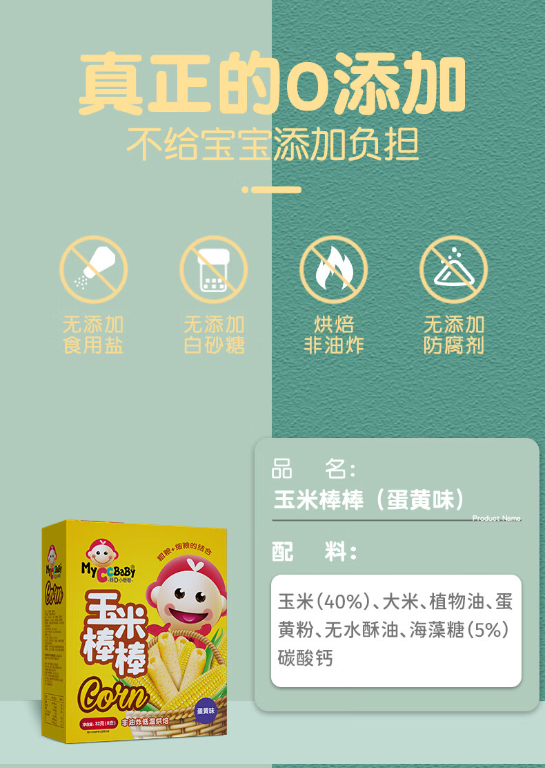我D小蔡蔡(MyCcBaBy)玉米棒棒玉米味32g手指泡芙磨牙宝宝谷物棒儿童零食无添加白砂糖