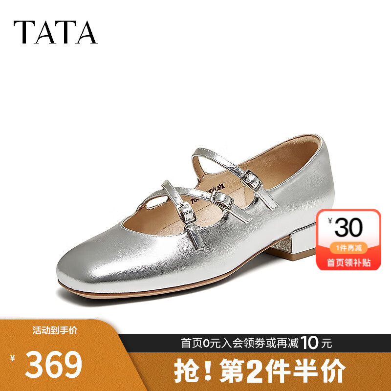 他她(TATA)2025春商场同款百搭气质玛丽珍鞋新款7G401AQ5 银色 37