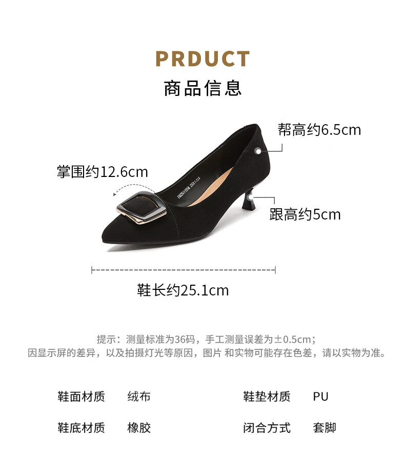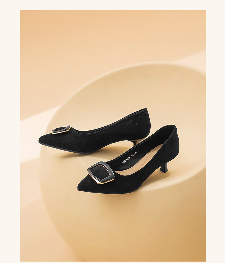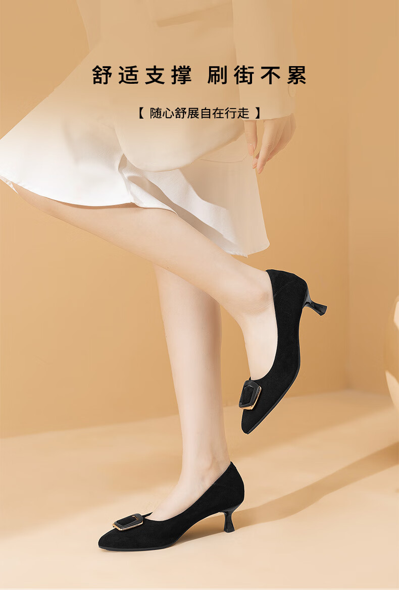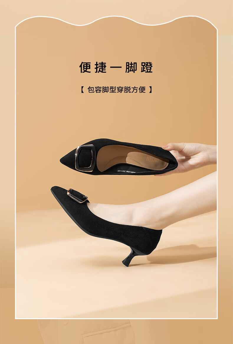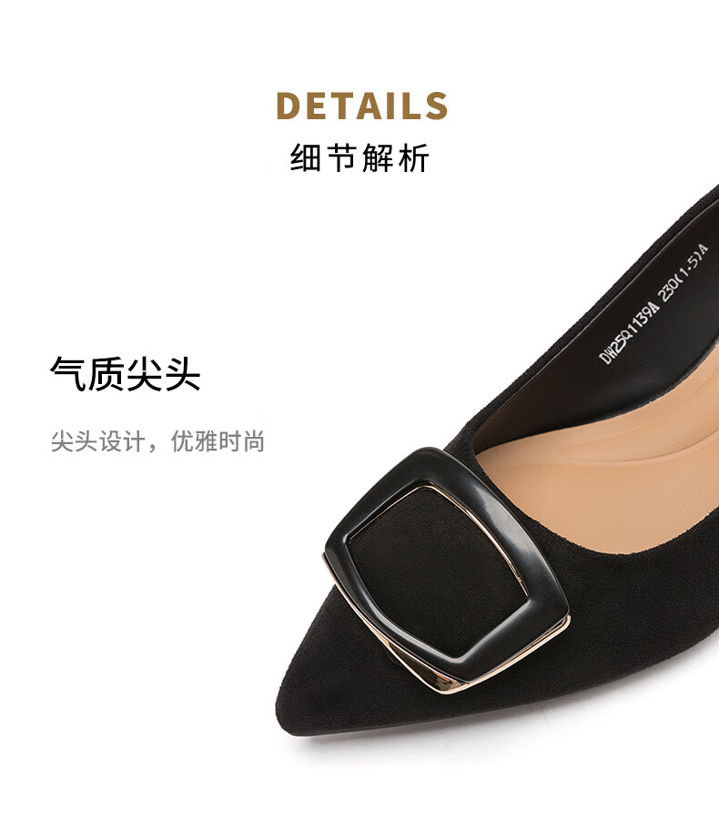大东浅口鞋2025年秋季新款休闲优雅知性浅口气质单鞋1139 黑色 34