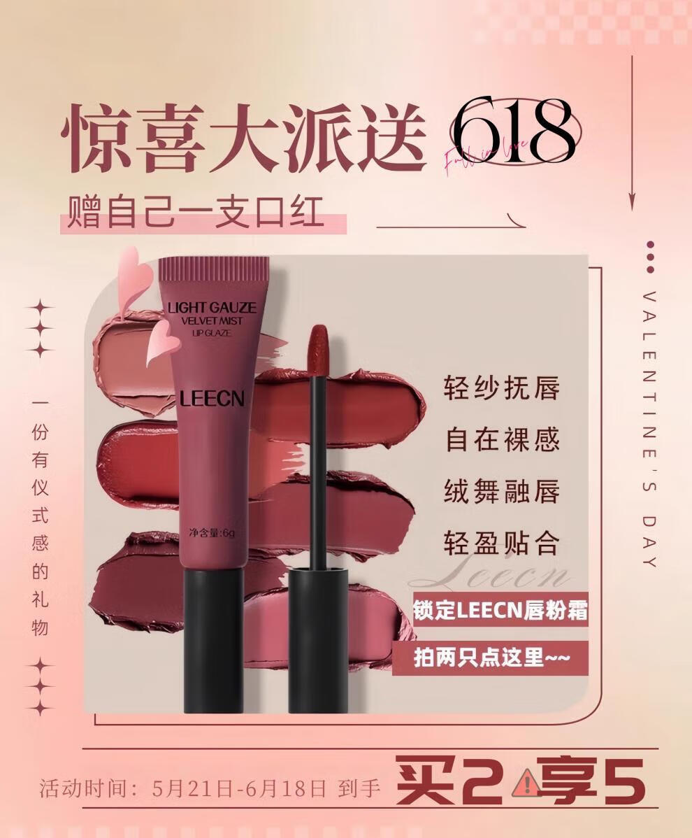 KCHY口红LEECN唇泥LEECN口红不易沾杯掉色柔雾唇粉霜哑光低饱和多用霜 01乌龙煎茶