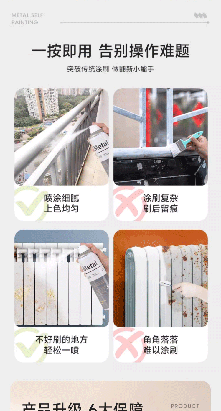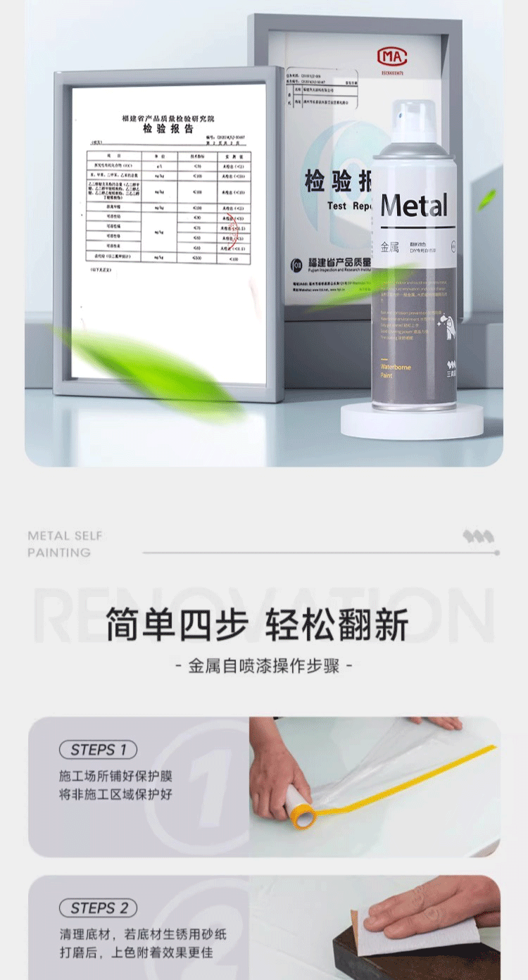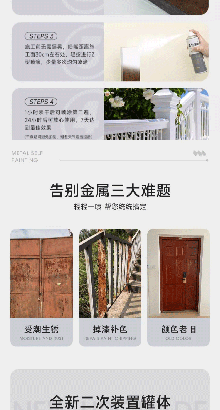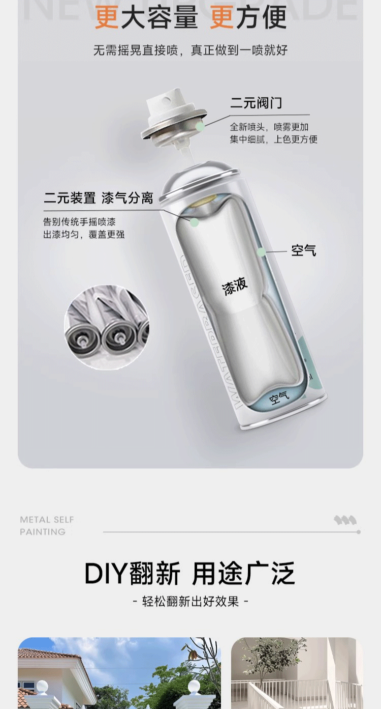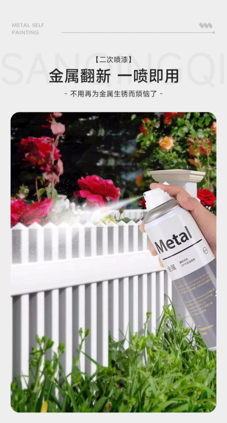 三青金属自喷漆阳台栏杆防锈防腐窗框铁门翻新铝合金改色专用水性油漆 白色 1瓶【约喷2㎡/1遍】