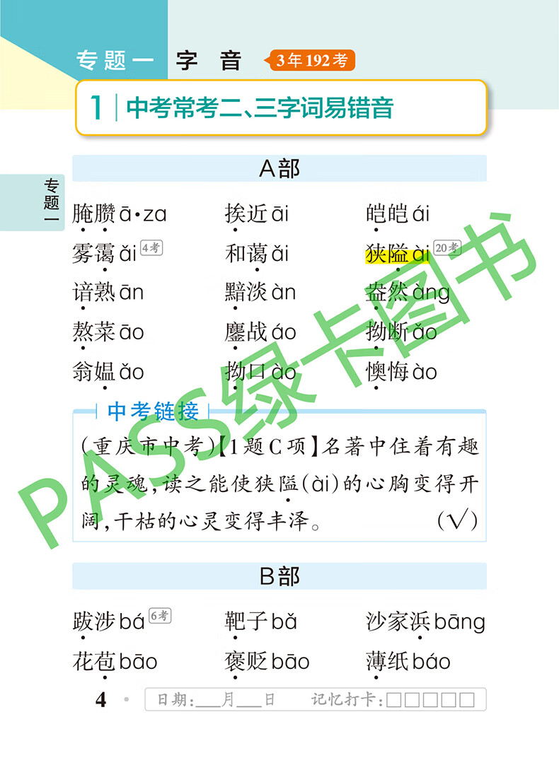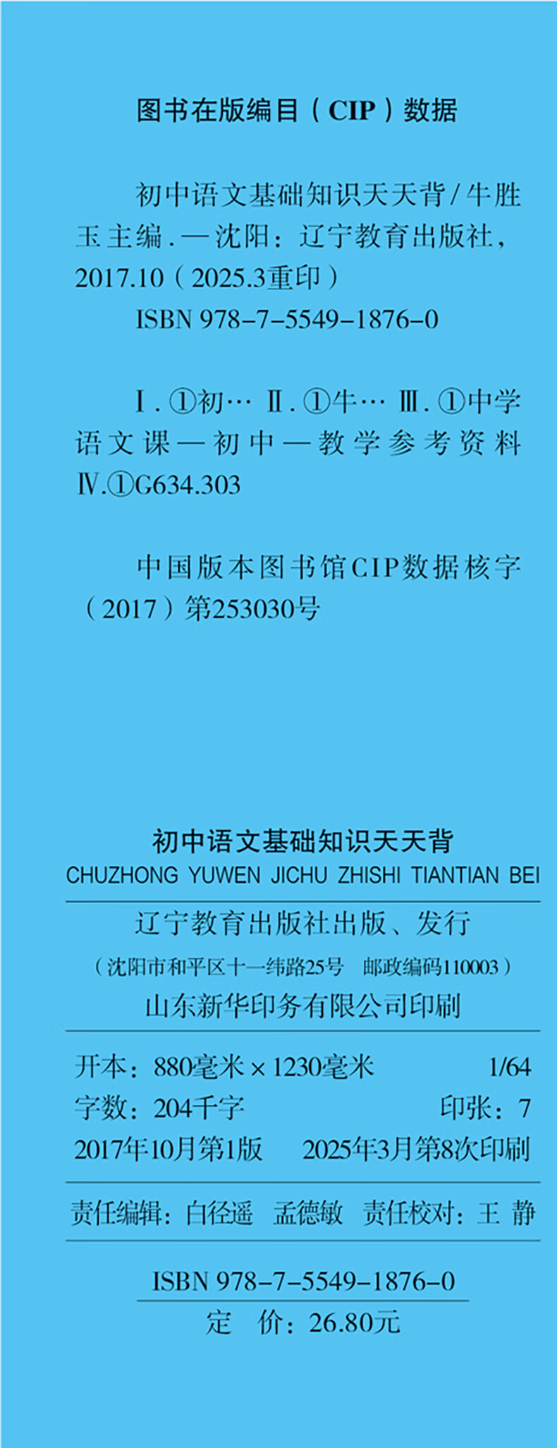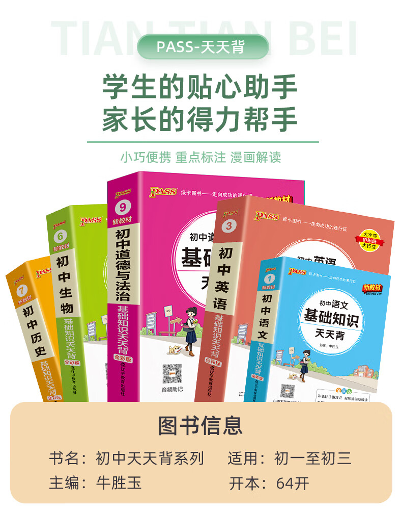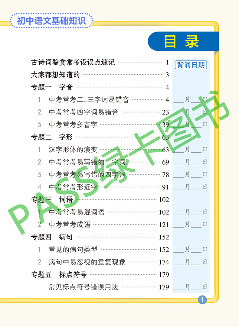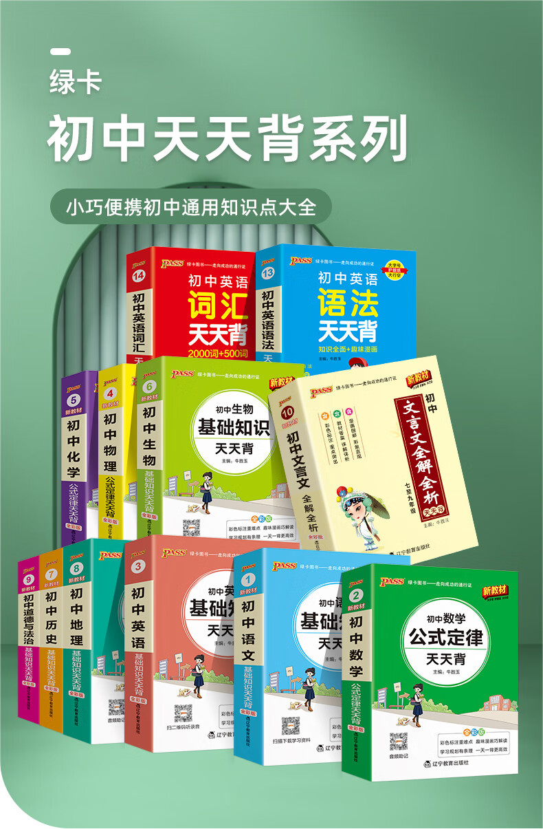 绿卡天天背初中语数英物化生史地政基础知识1-14(通用版)-新教材 语文基础知识1 初中通用-新教材