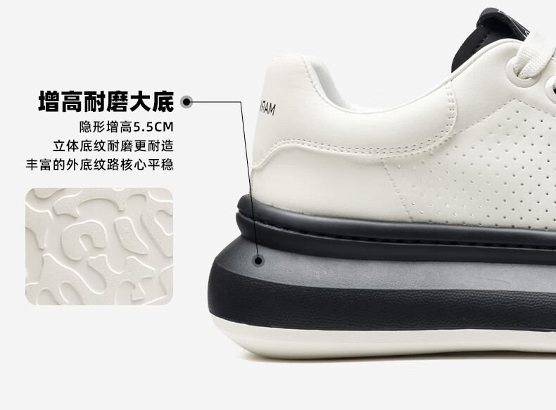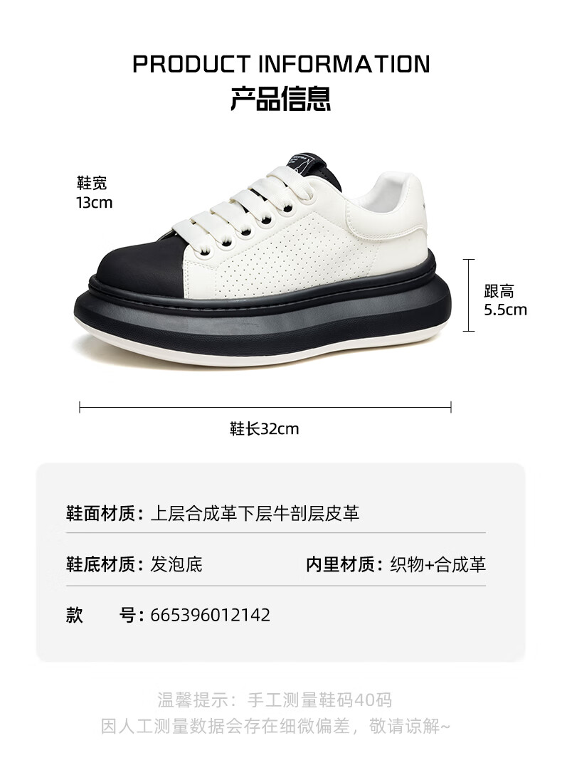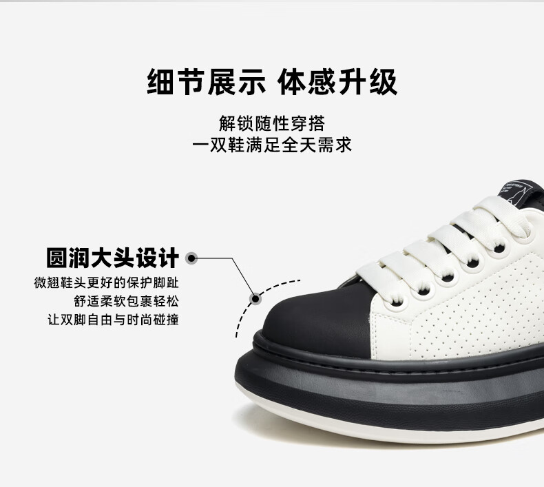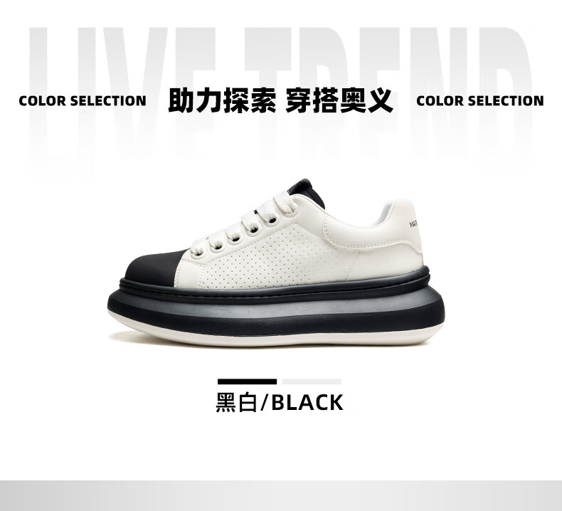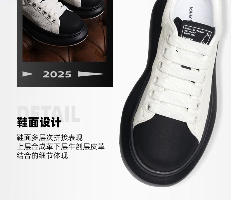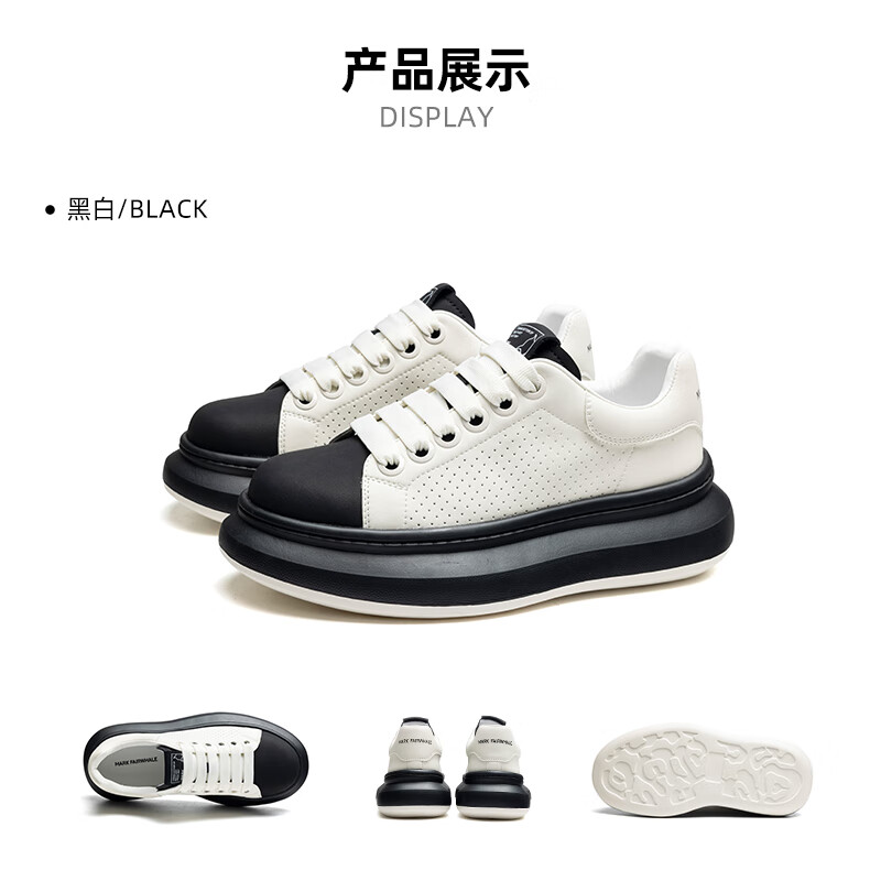 马克华菲板鞋男新款厚底黑白拼色男士潮流休闲鞋运动增高男鞋 黑白 41
