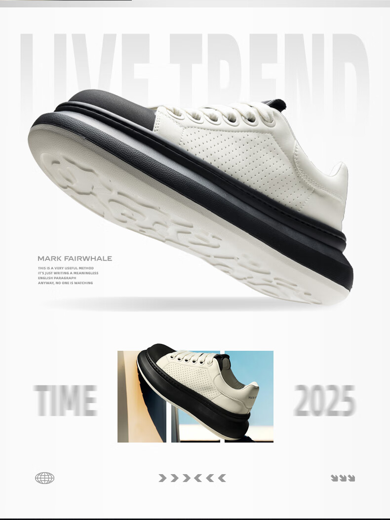 马克华菲男鞋厚底老爹鞋2025新款秋季增高鞋子男士运动休闲鞋 白棕 45