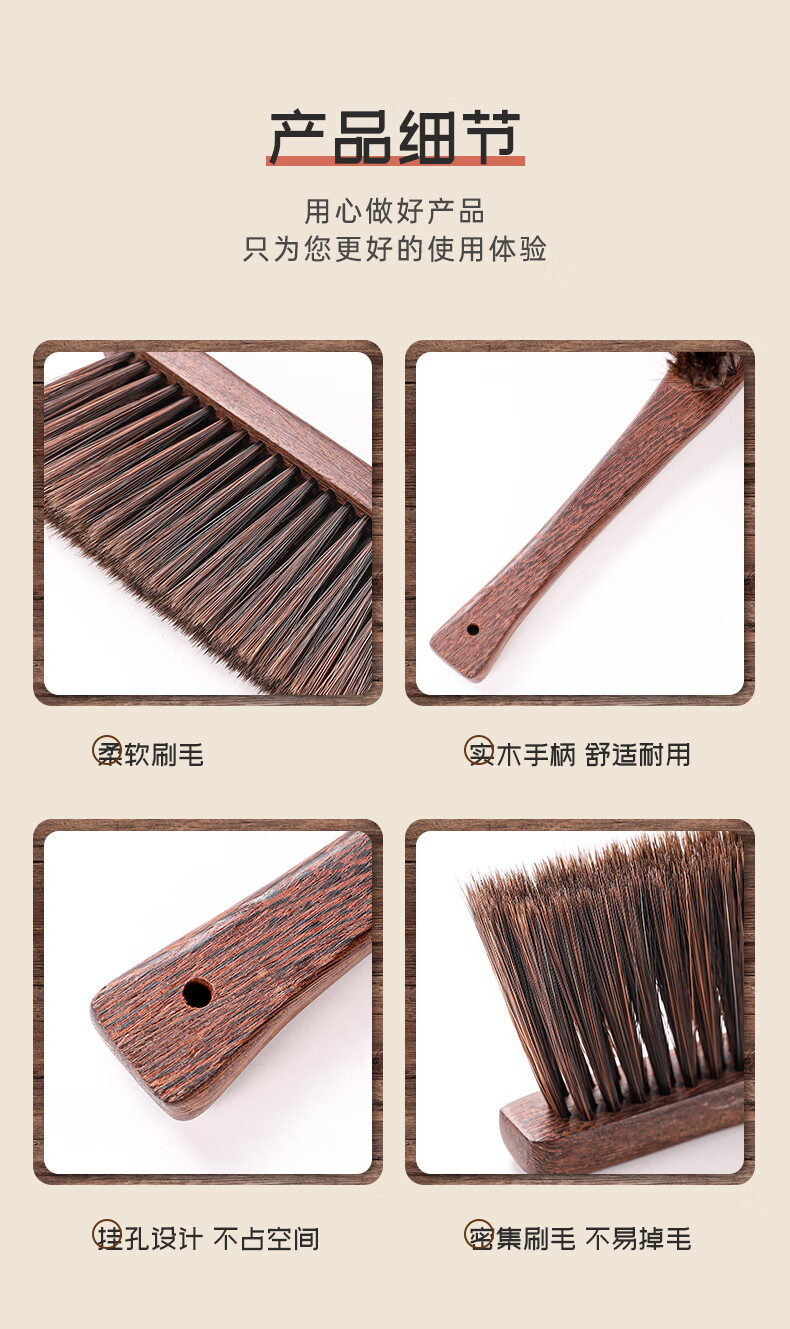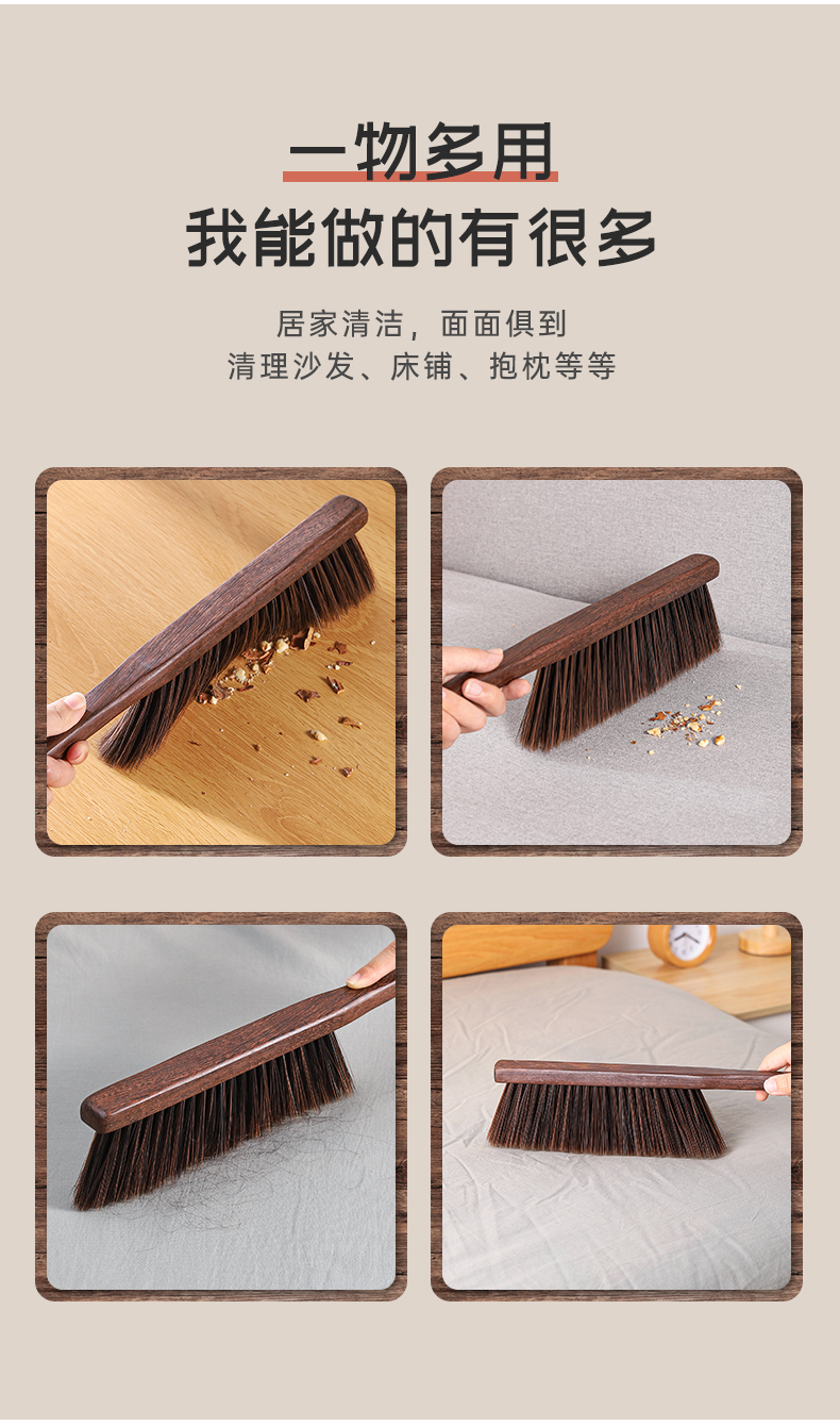 洁比世鸡翅木大号软毛除尘刷扫床刷子桌面软毛扫把衣物清洁刷床刷