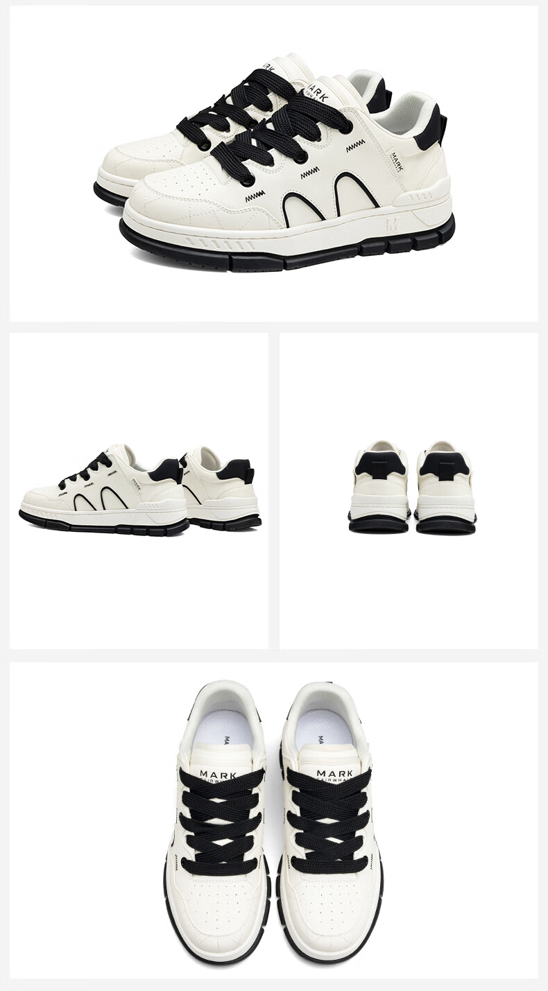 马克华菲板鞋男面包鞋透气低帮滑板鞋耐磨防滑休闲运动鞋 白黑 44