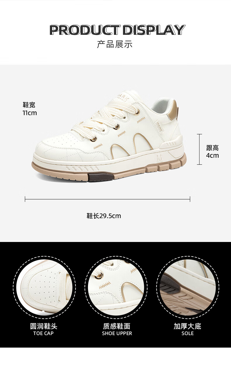 马克华菲男鞋厚底老爹鞋2025新款秋季增高鞋子男士运动休闲鞋 白棕 45