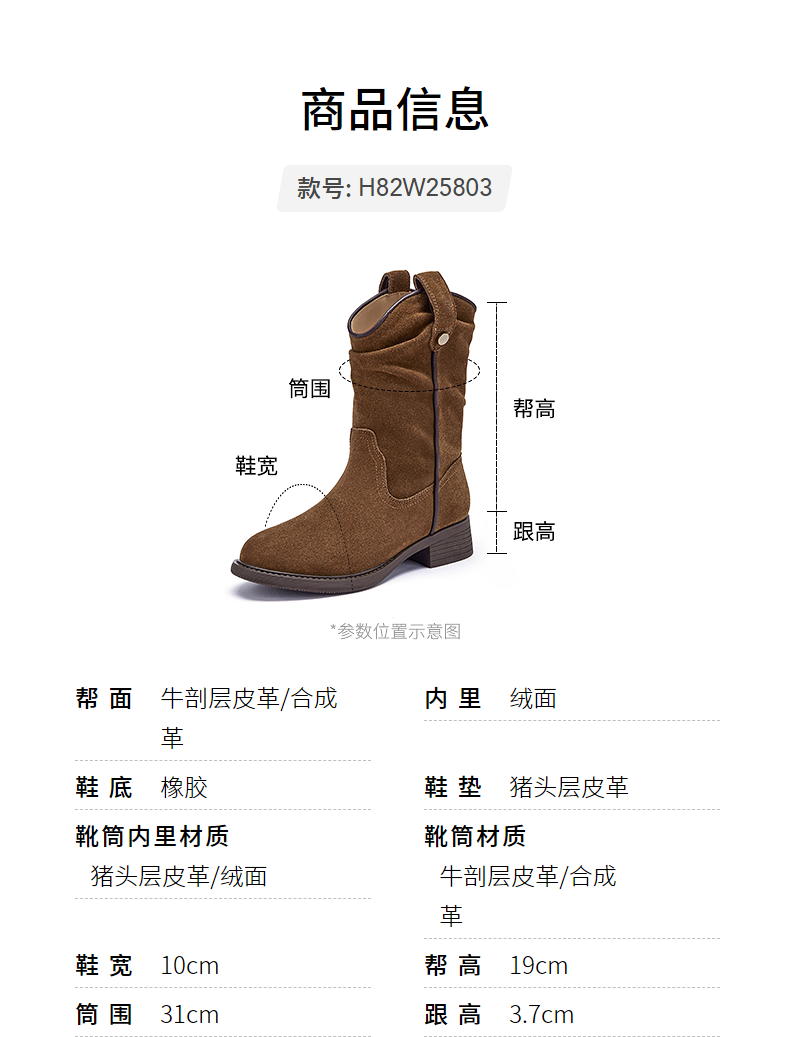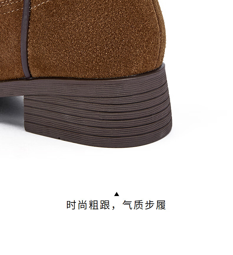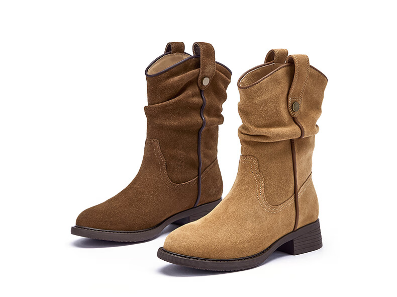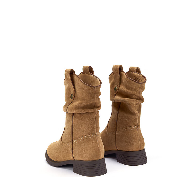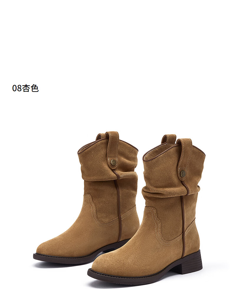 热风【迪士尼系列】复古西部靴女靴2025年冬季新款美拉德休闲时装靴子 08杏色 37