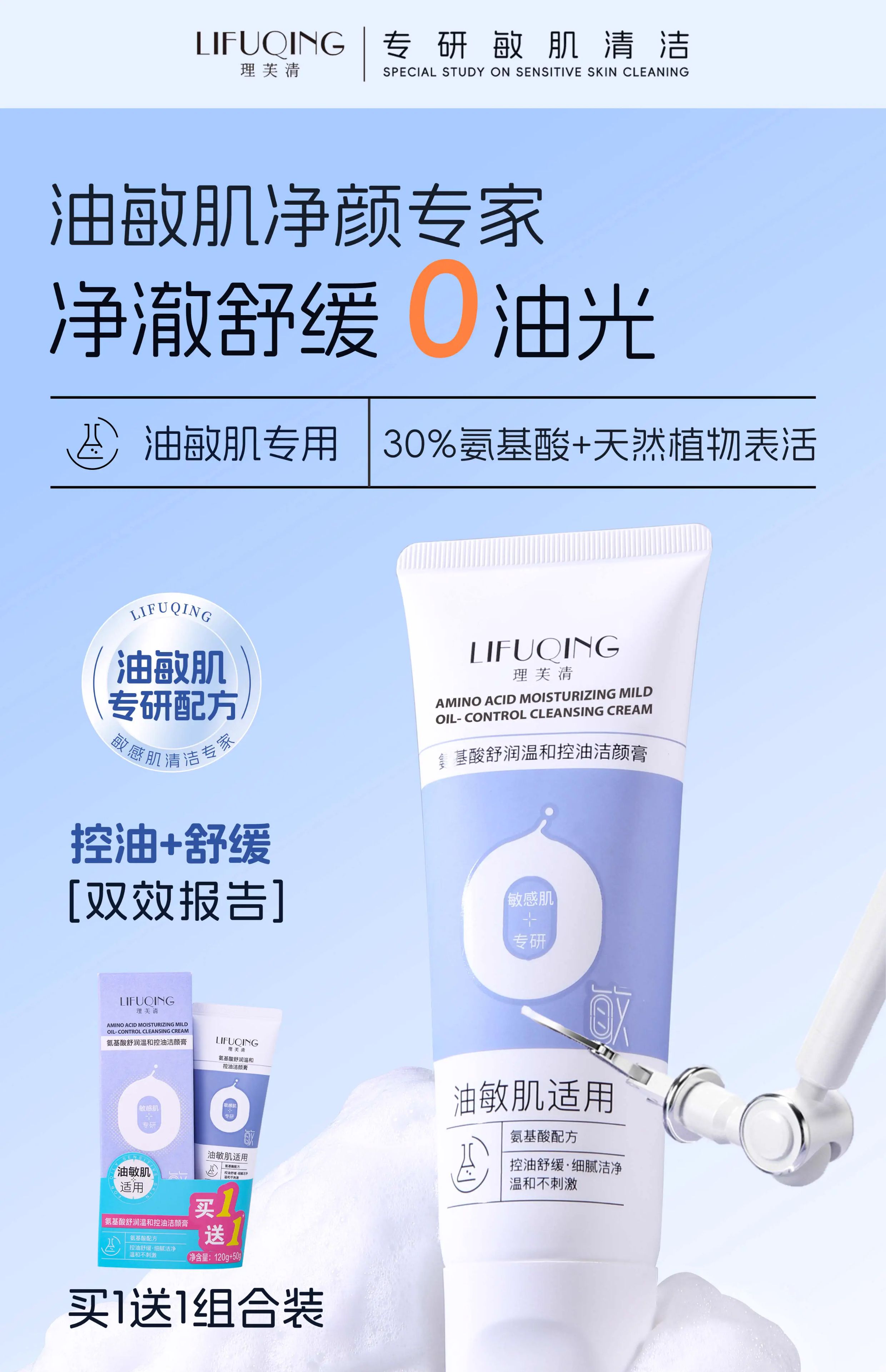 优选理芙清洗面奶氨基酸温和油控油舒润不紧绷洁颜膏油敏感肌男女 340g