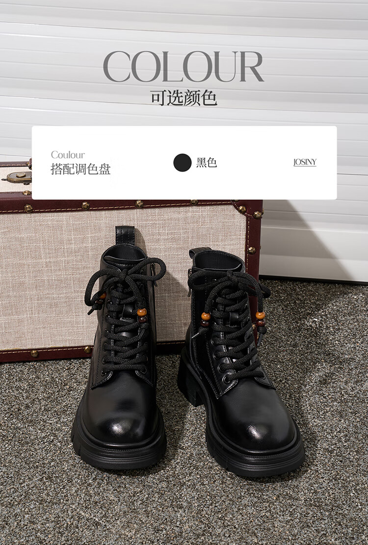 卓诗尼厚底马丁靴2025新款冬英伦风短靴小个子女靴 黑色 39