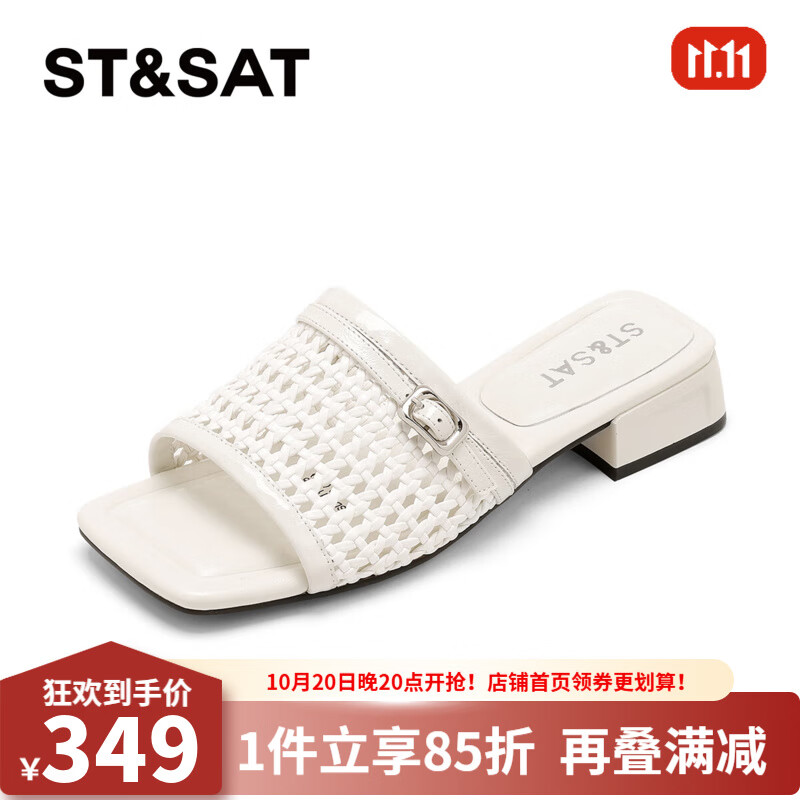 星期六时尚百搭可外穿粗跟一字拖2025夏季新款清凉拖鞋MTSSD2111WF6 米白色 34