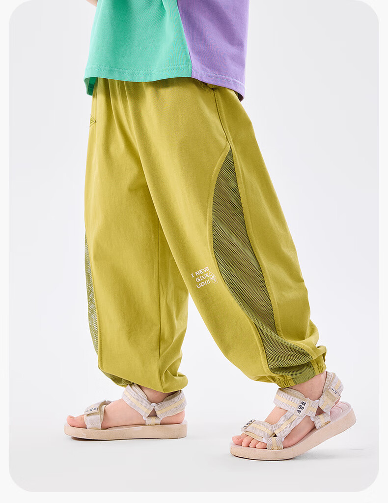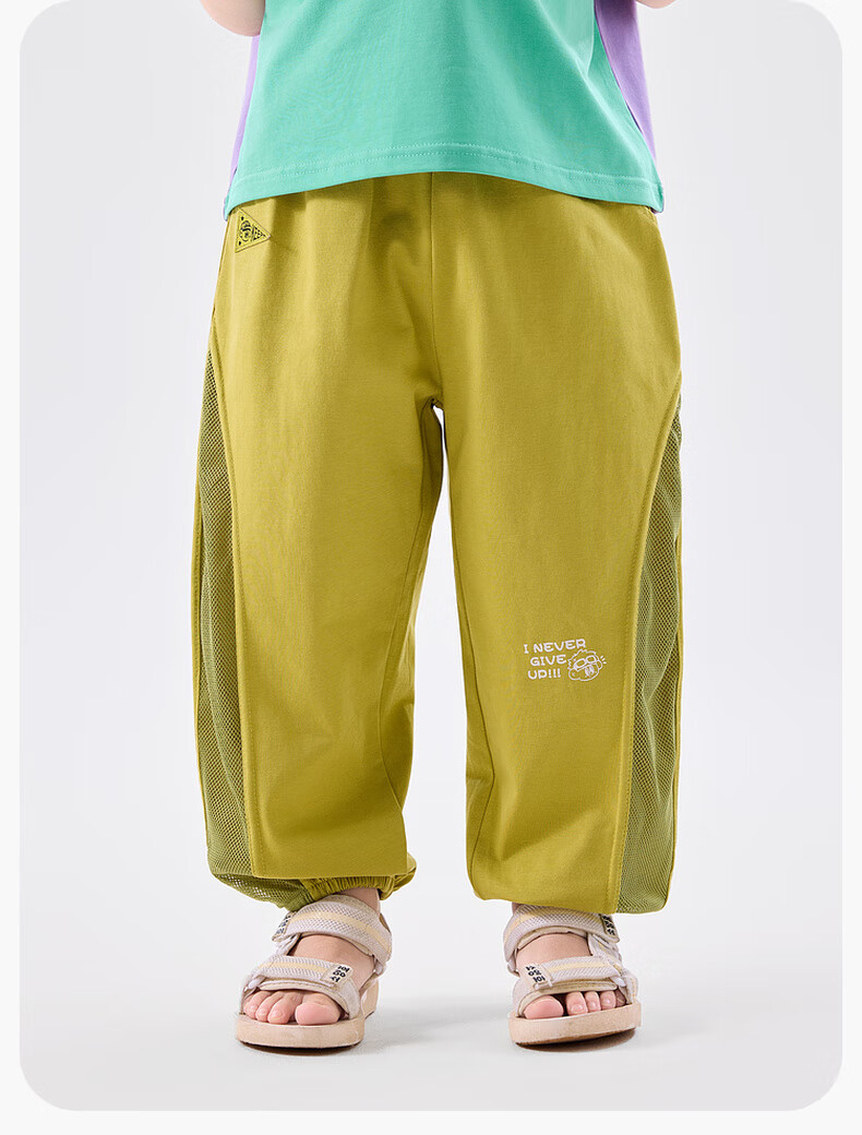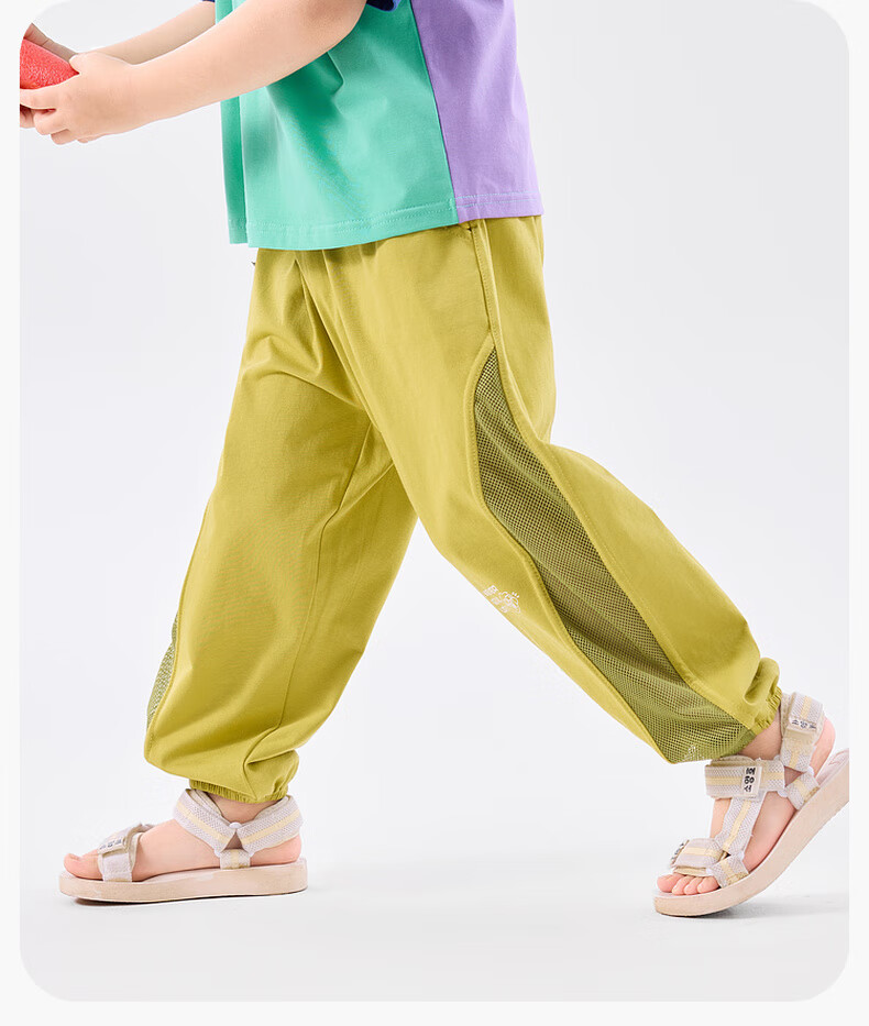 嘟嘟家儿童长裤夏季网眼拼接宝宝防蚊裤薄款男童凉感长裤女童装 黄色 90