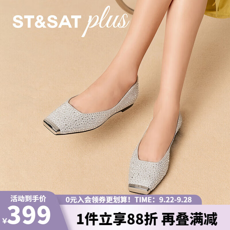 星期六优雅方头2025新款休闲时尚满钻镶边芭蕾舞平底鞋SSD3111540 银色 34