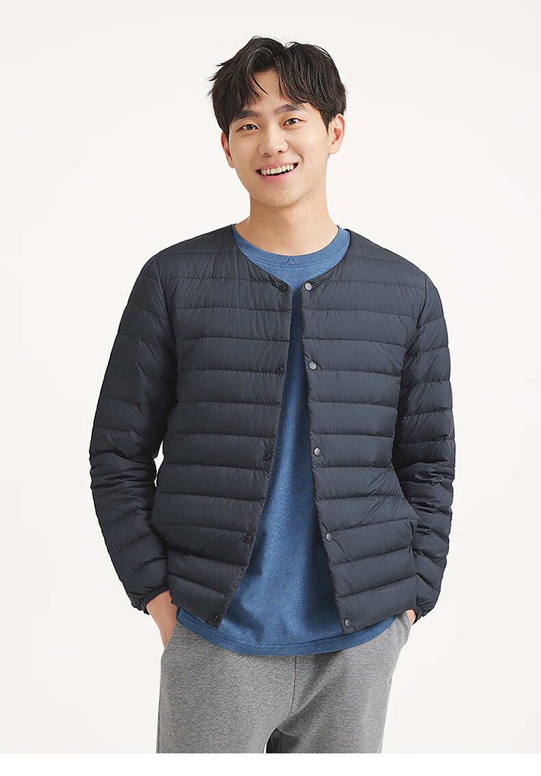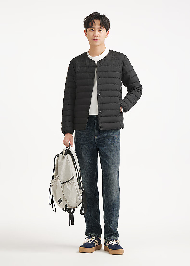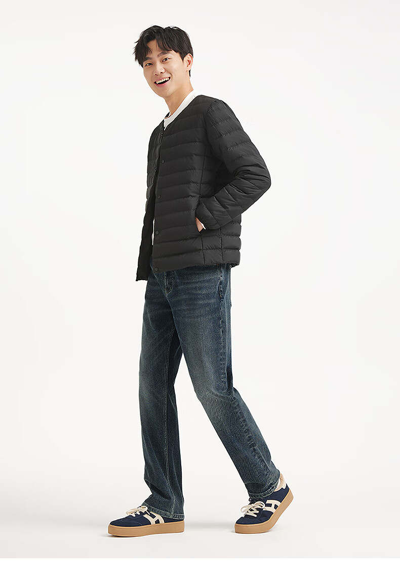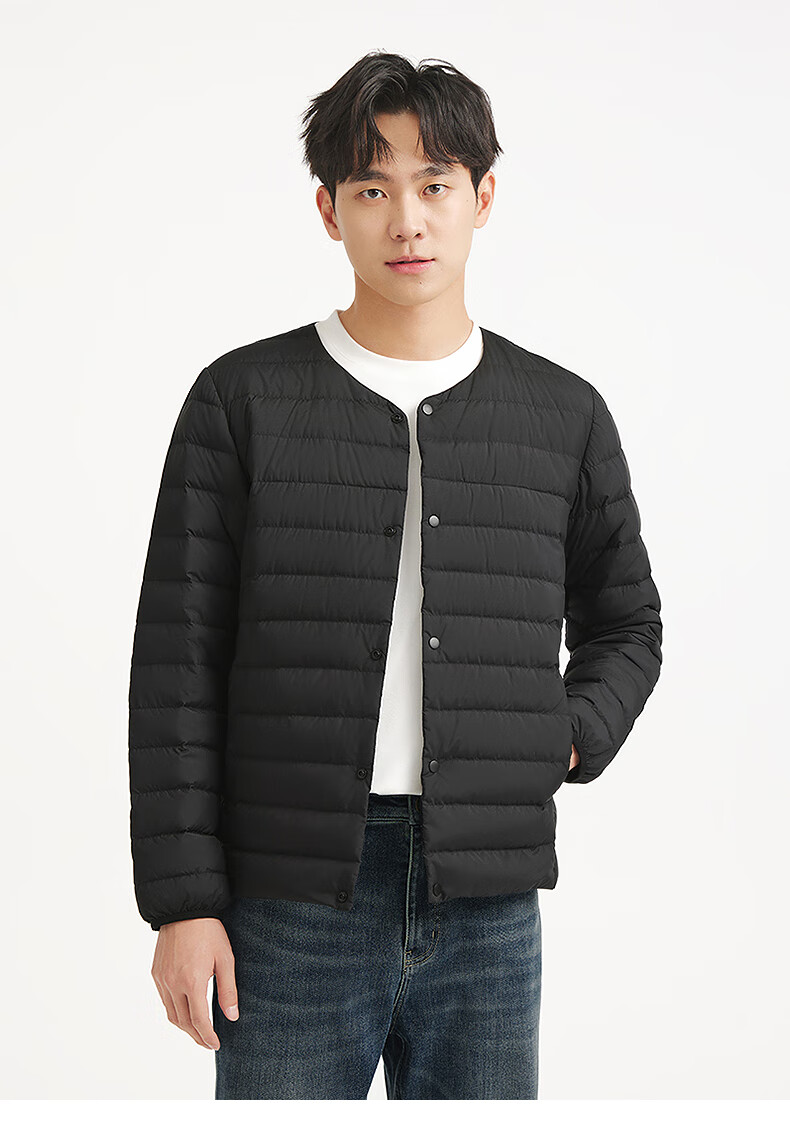 热风2025年冬季新款男士圆领轻薄羽绒服 01黑色 S