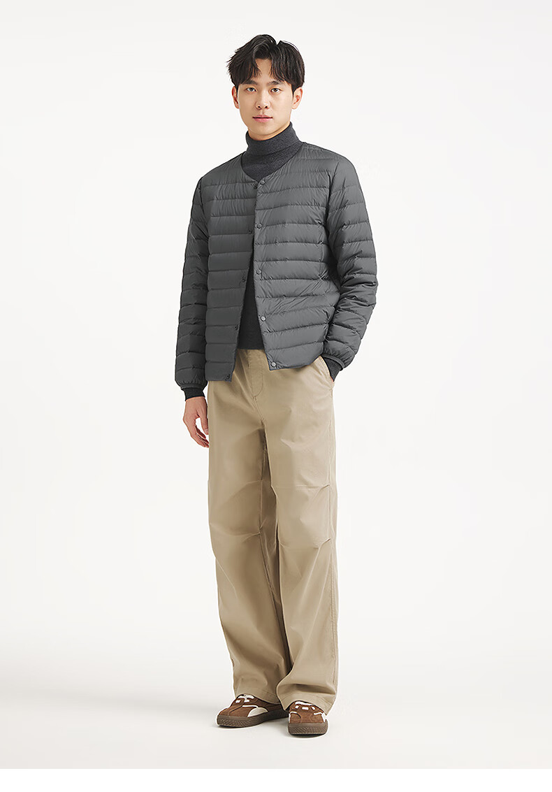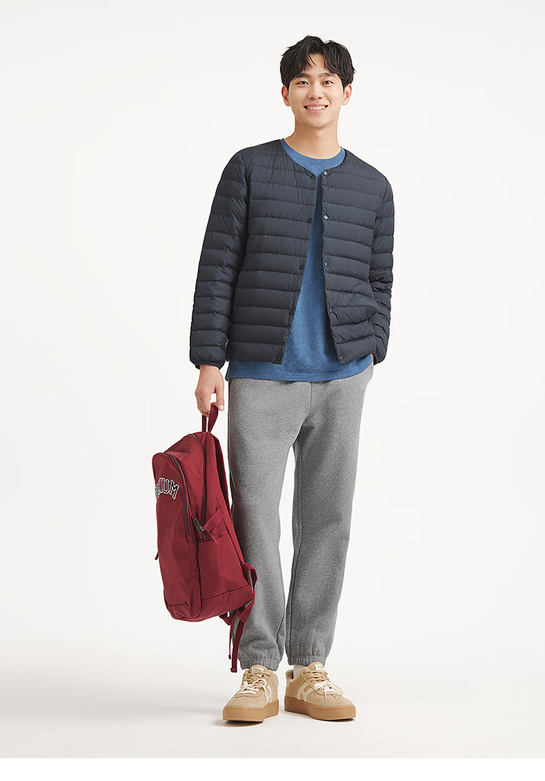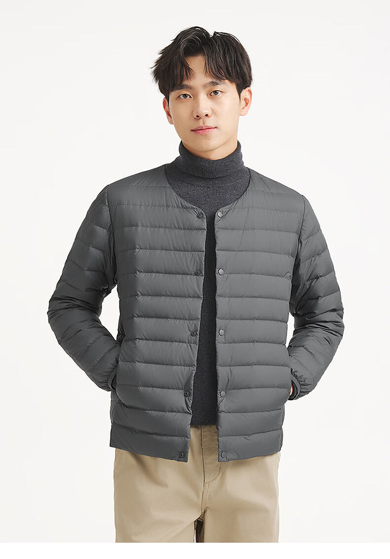 热风2025年冬季新款男士圆领轻薄羽绒服 01黑色 S