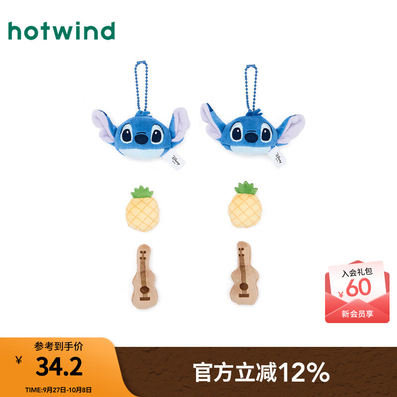 热风2025年秋季新款迪士尼史迪奇毛绒系列配件套装挂件 27深兰 1套装
