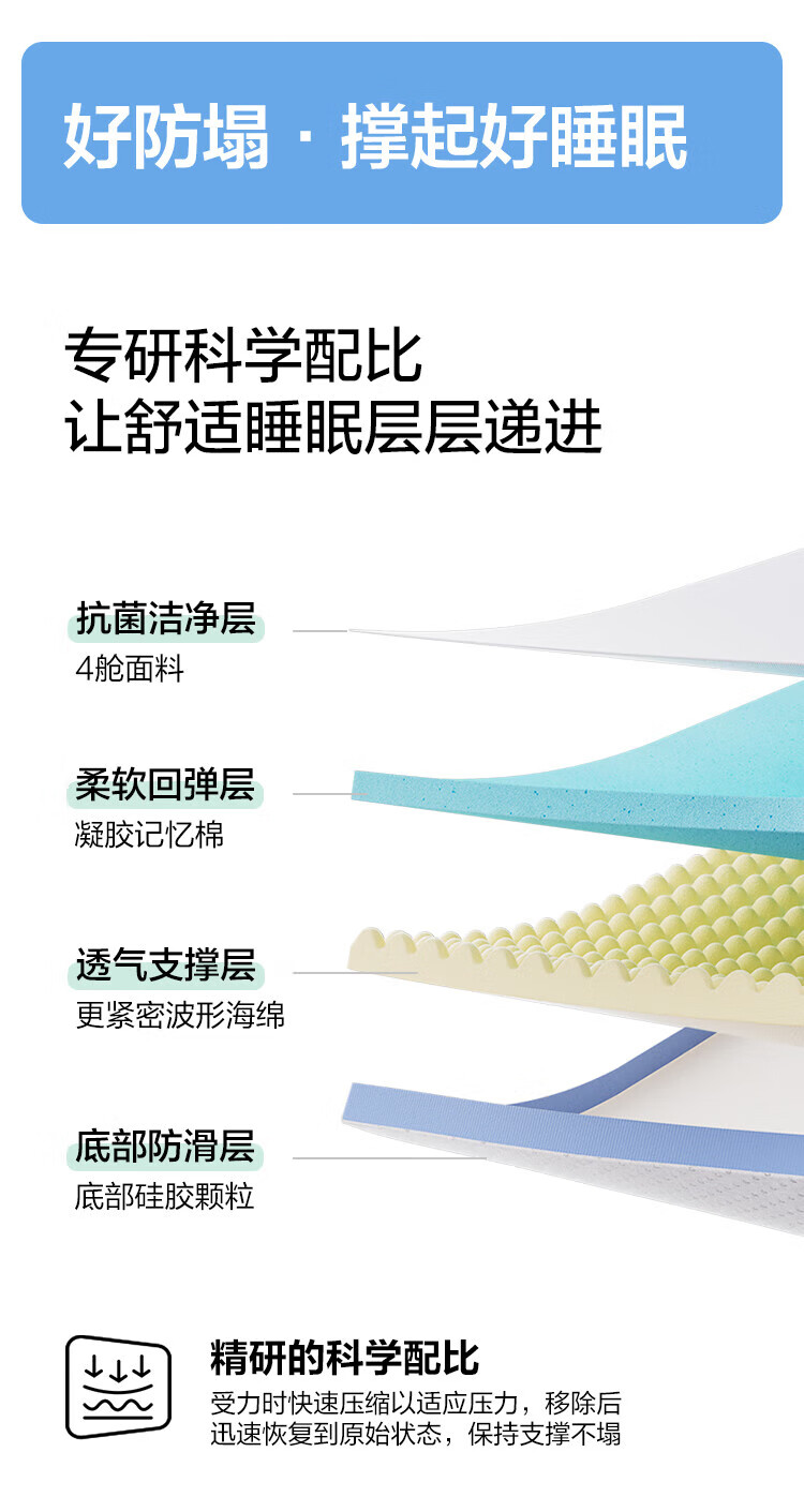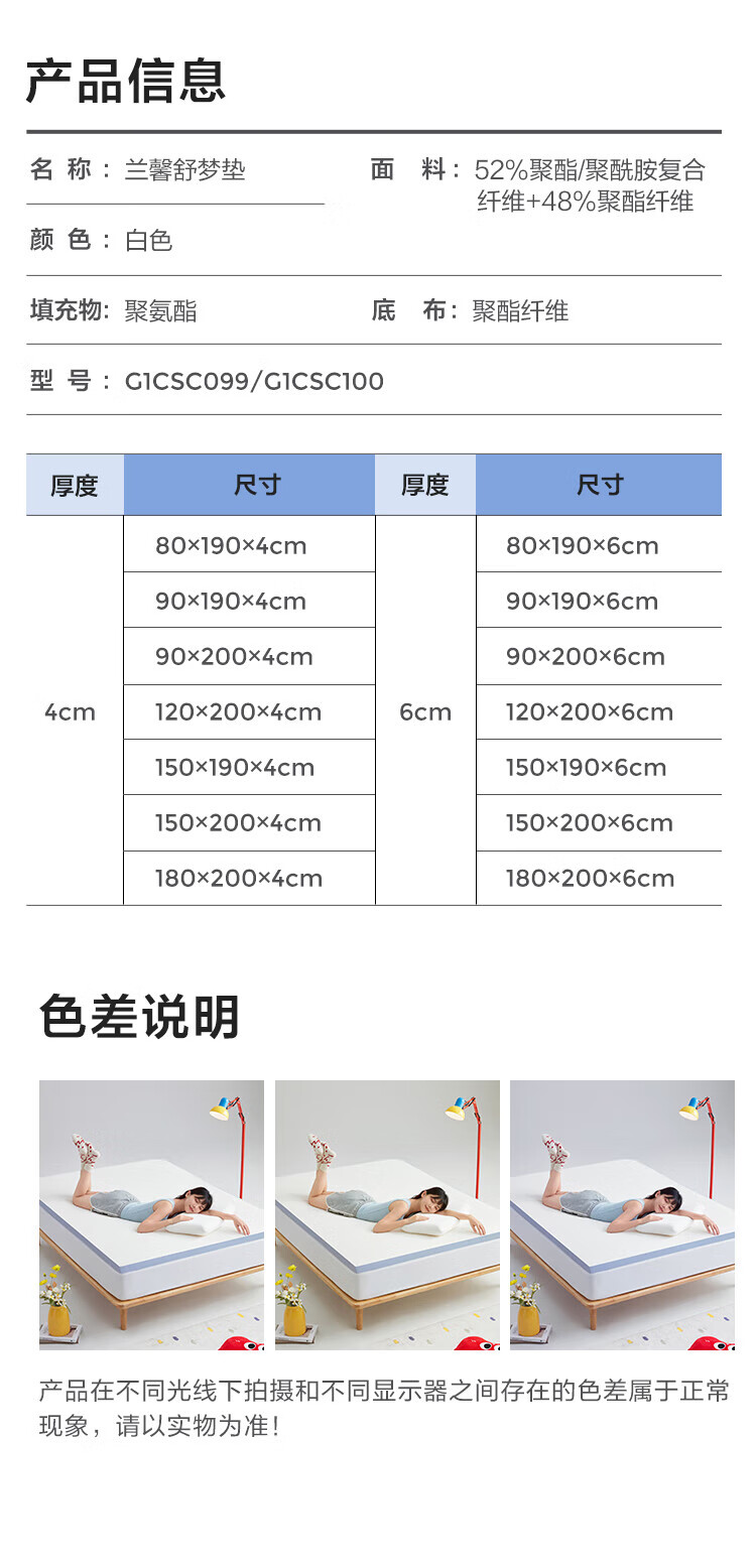 LINSY KIDS记忆棉床垫软垫寝室海绵垫子学生宿舍单人上下铺林氏木业G1CSC 【抗菌消臭 深度睡眠】蓝白色-4c 0.9×2.0m