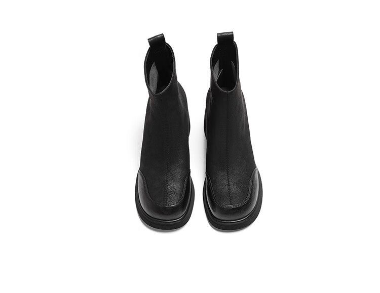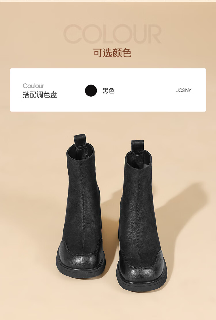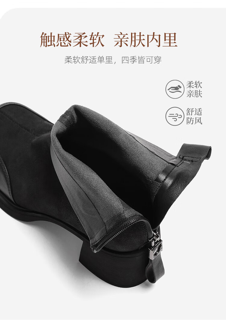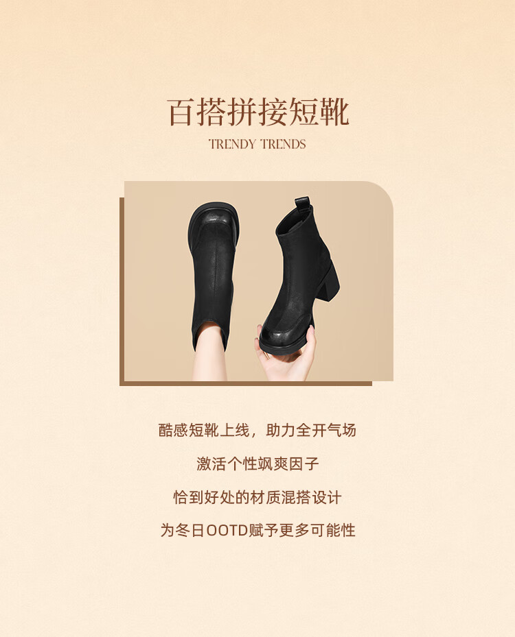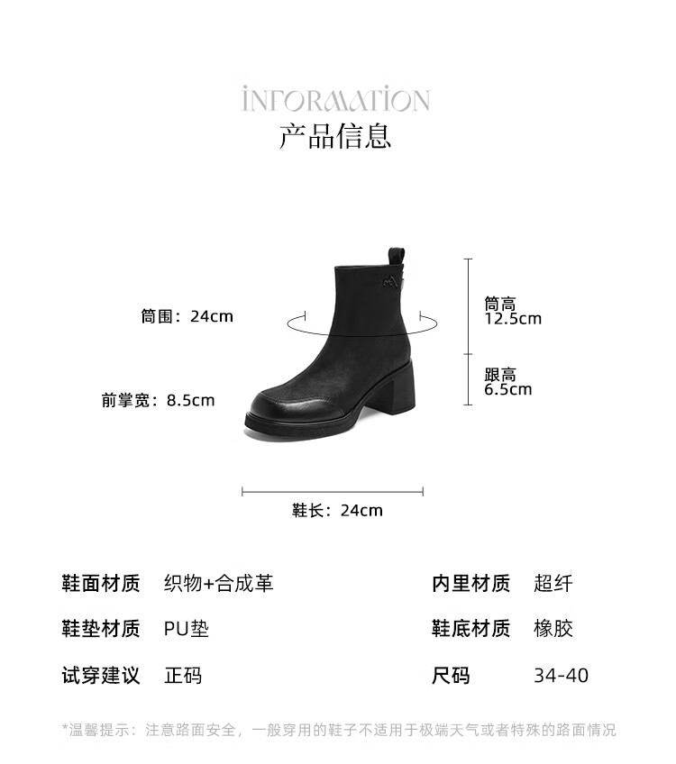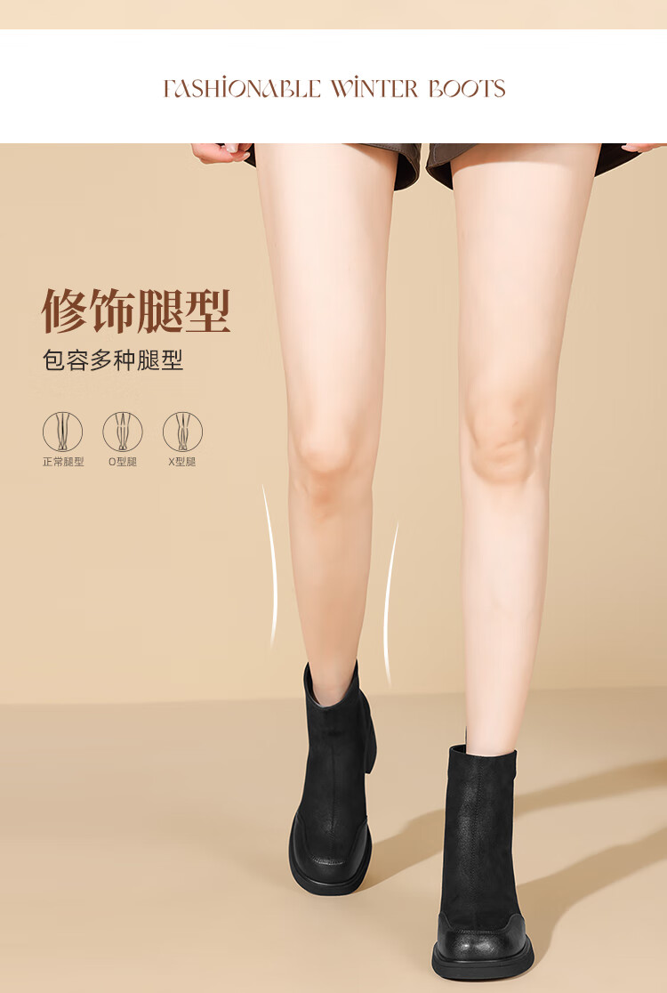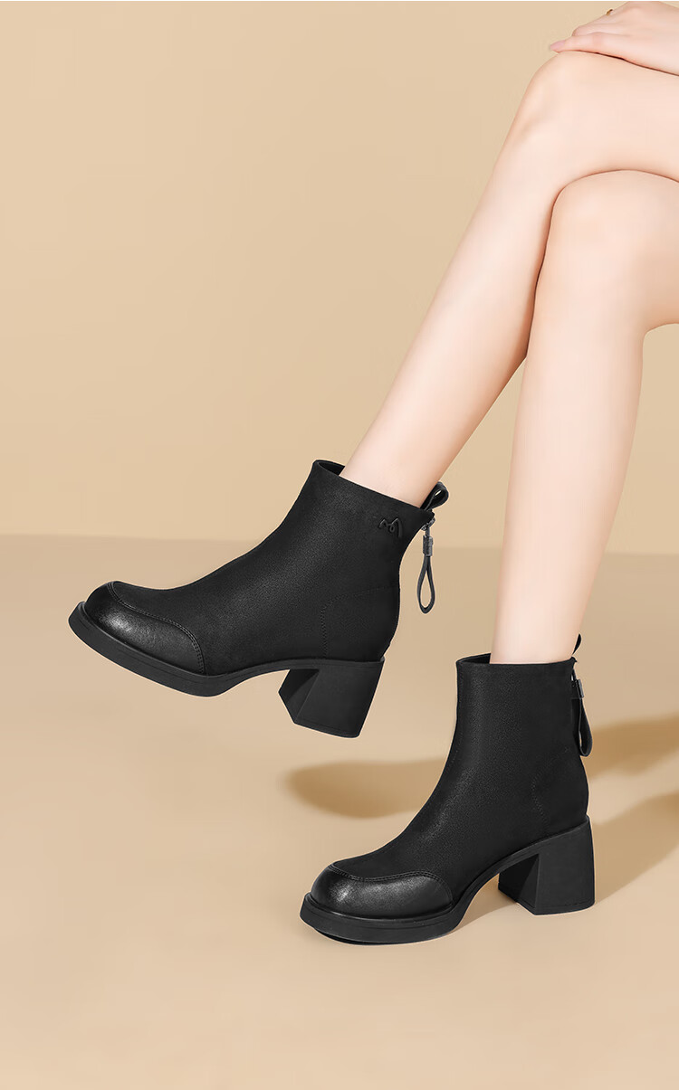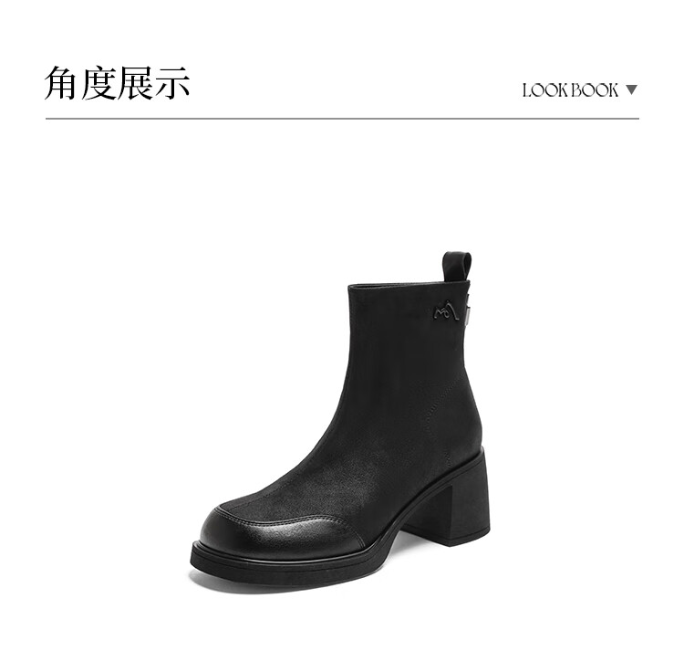 卓诗尼短靴女靴2025新款冬季粗高跟单靴法式英伦风瘦瘦靴 黑色 37