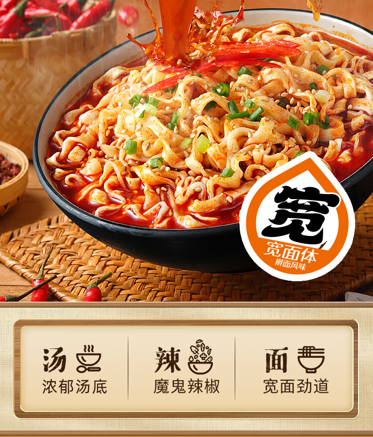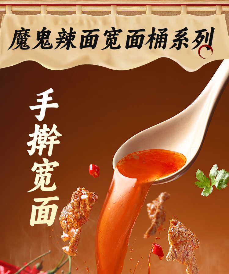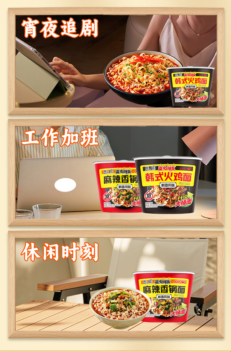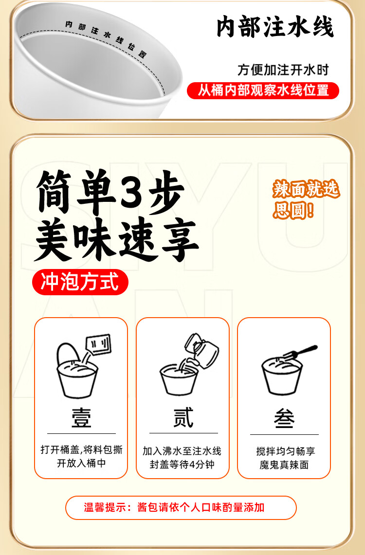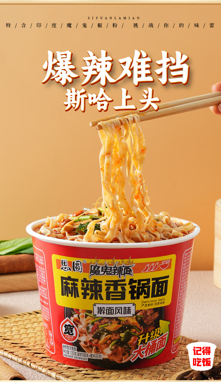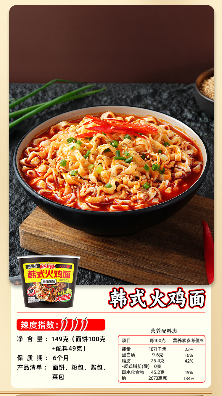 思圆魔鬼辣面宽面 韩式火鸡味149g*6桶 方便面煮面泡面桶装 方便速食