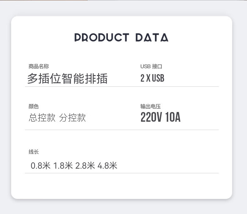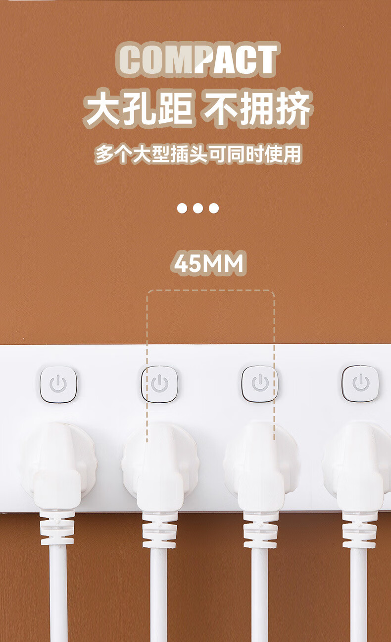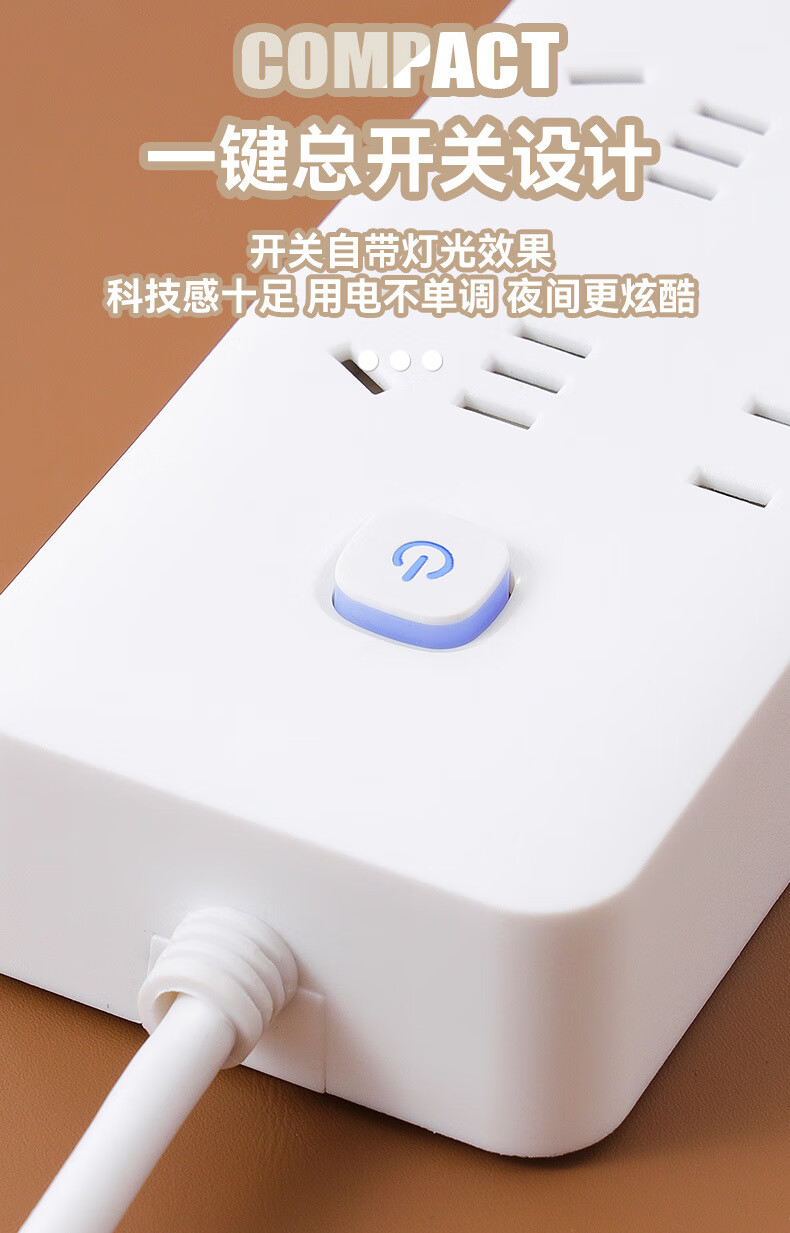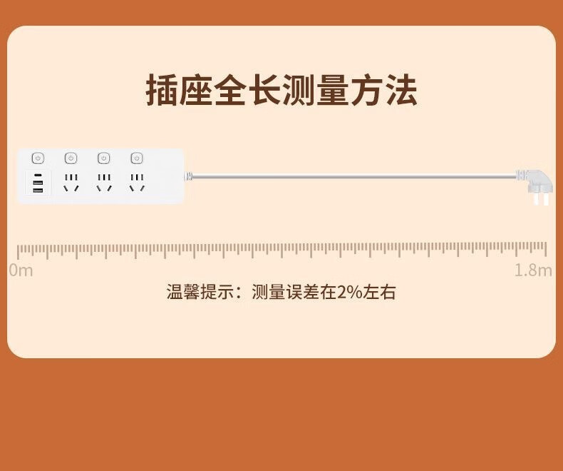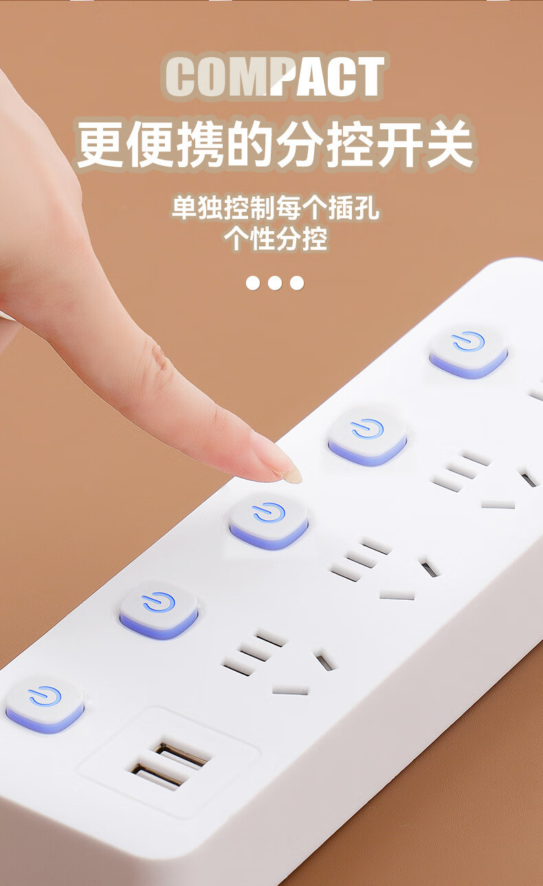 【优选】多功能usb插座面板多孔带线家用插排插板接线板插线板转 小白7孔【0.8米】 7孔