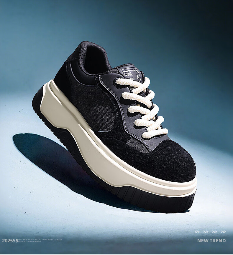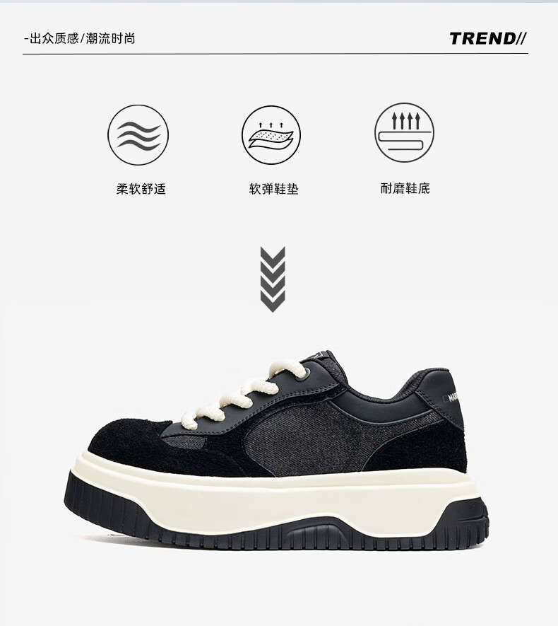 马克华菲男鞋厚底老爹鞋2025新款秋季增高鞋子男士运动休闲鞋 白棕 45