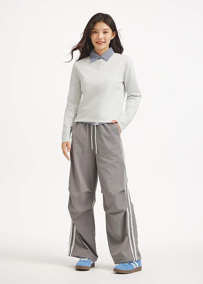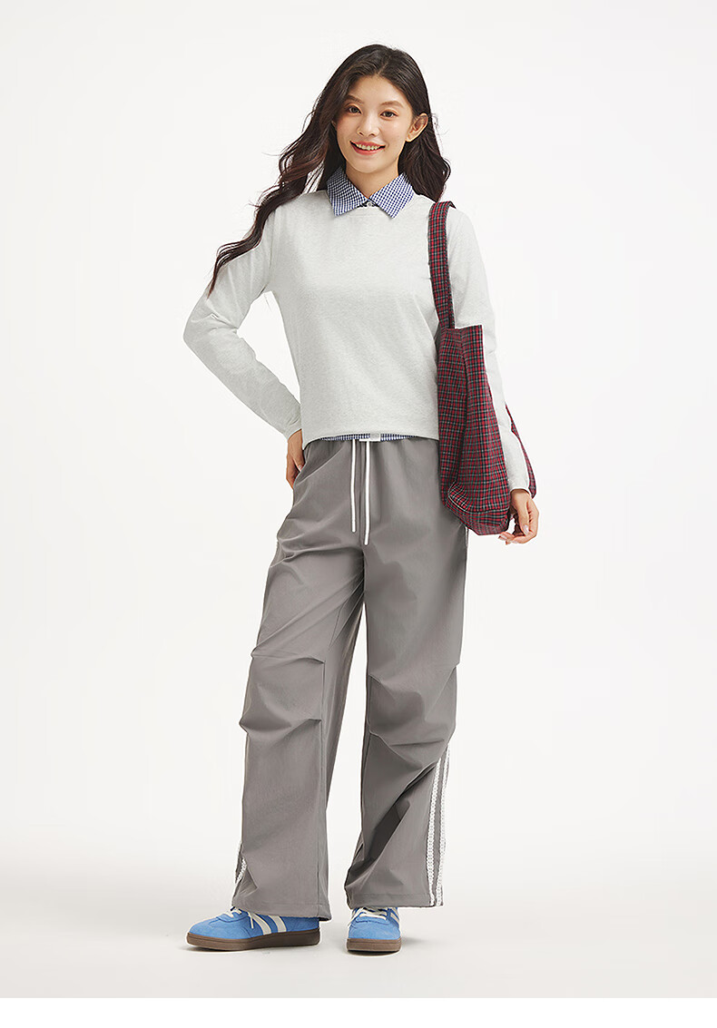 热风女士工装裤伞兵裤2025年夏季新款肌理宽松阔腿裤户外休闲直筒长裤 60浅灰 S